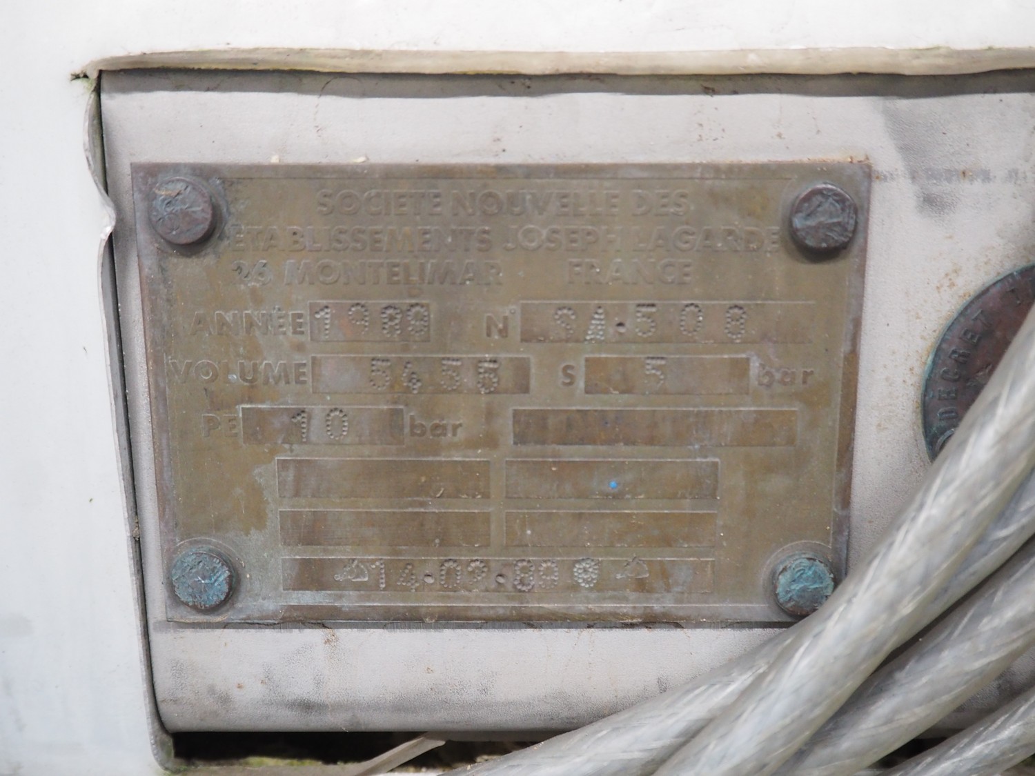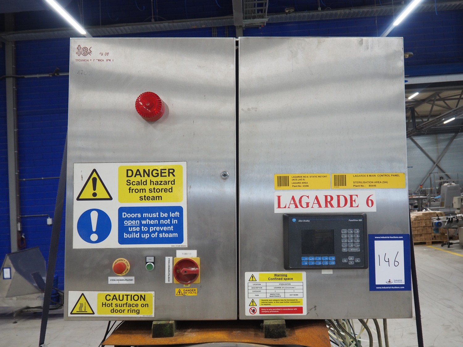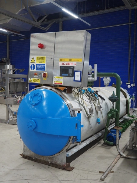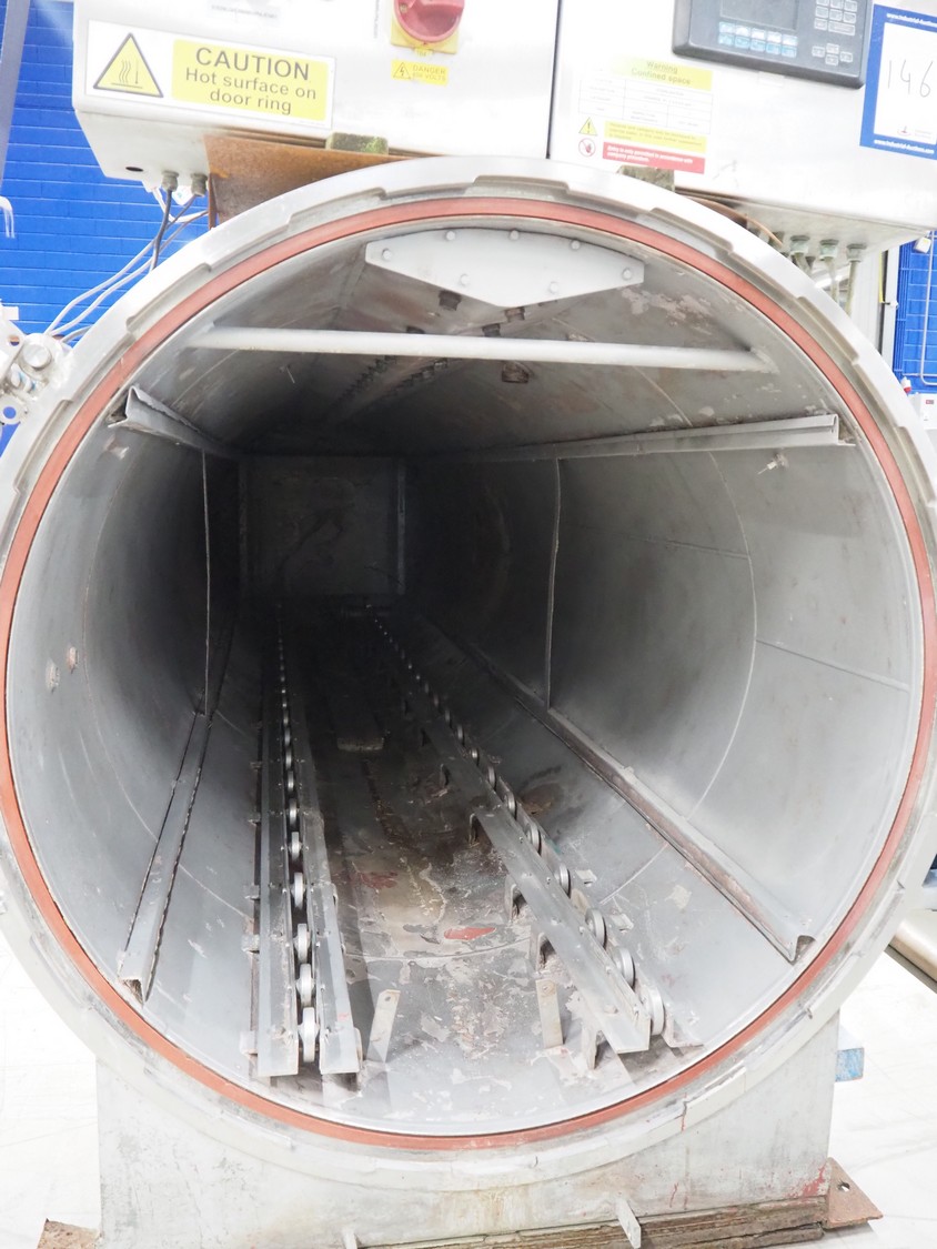 Lagarde autoclave, number: SA.508, year of construction: 1989, volume: 5455 liters, dimensions: 5750 mm x 1600 mm x 2530 mm.