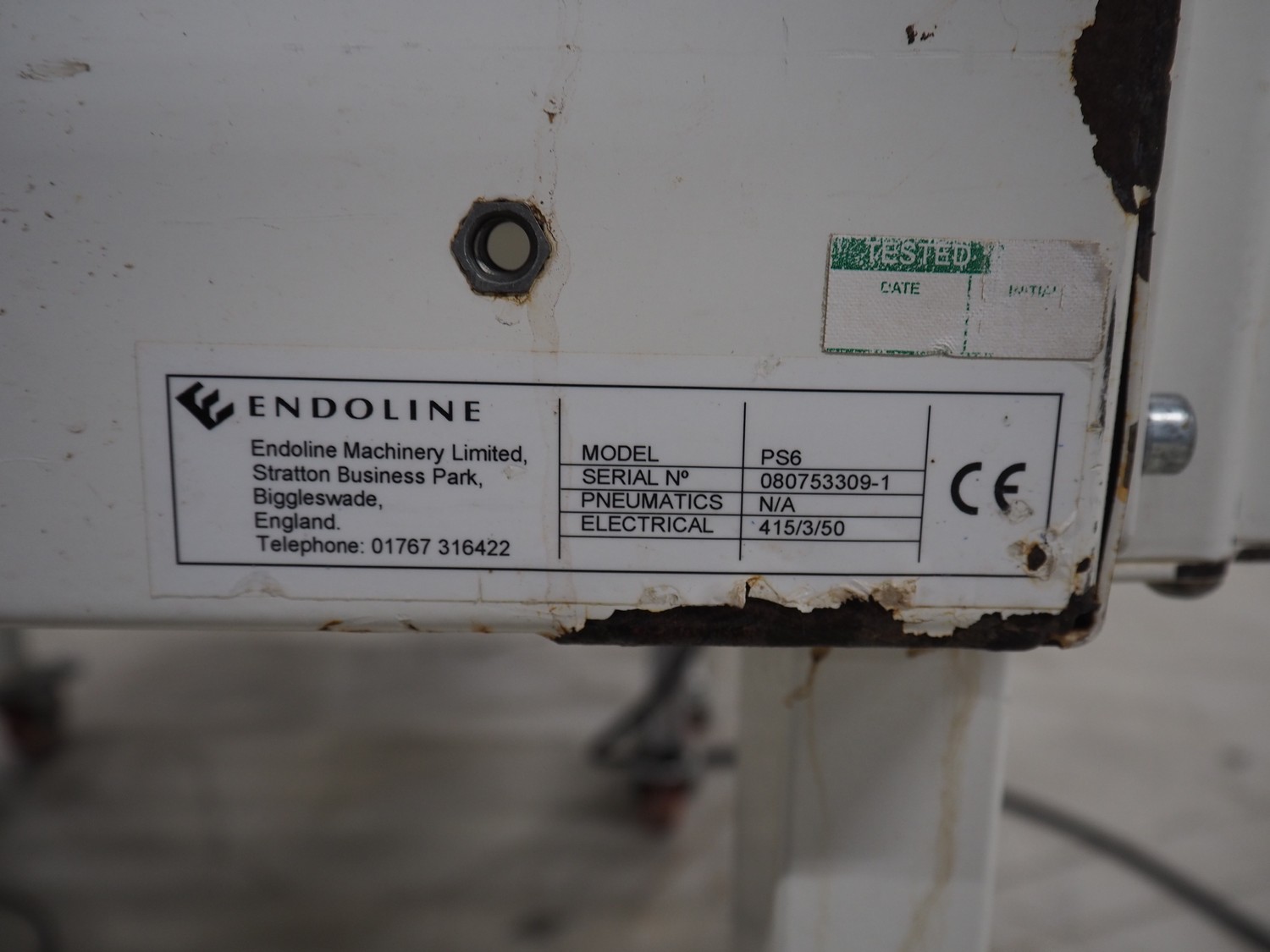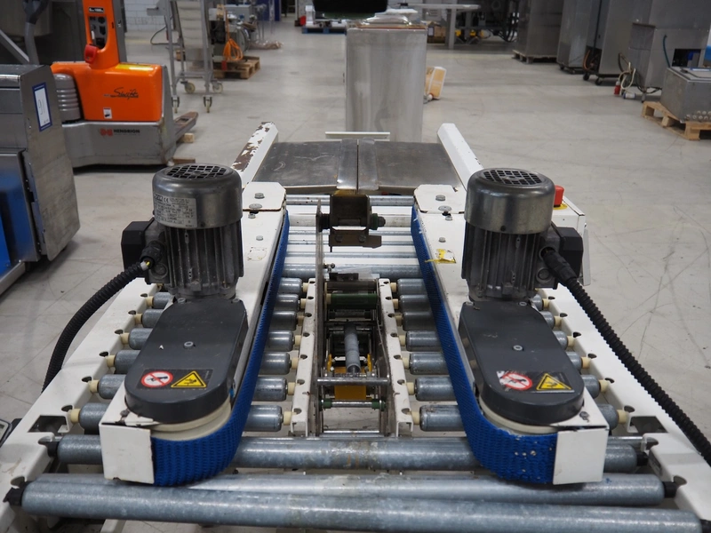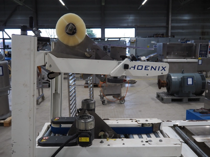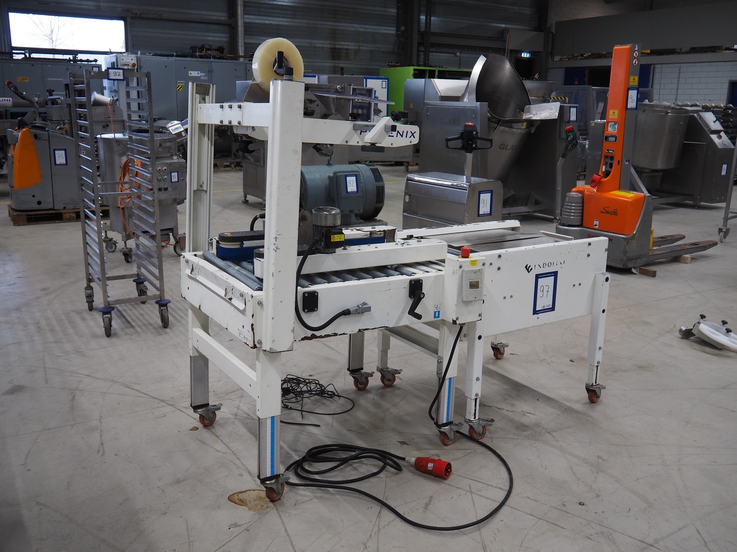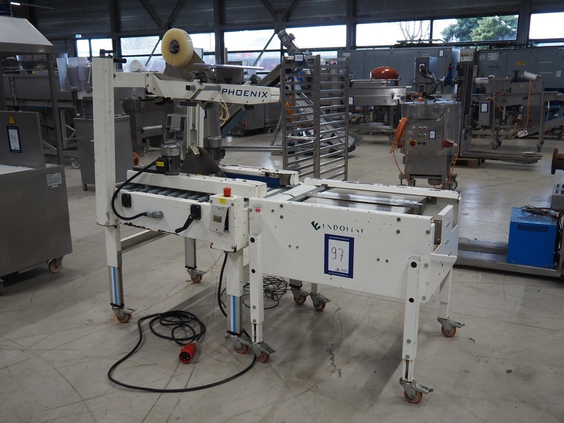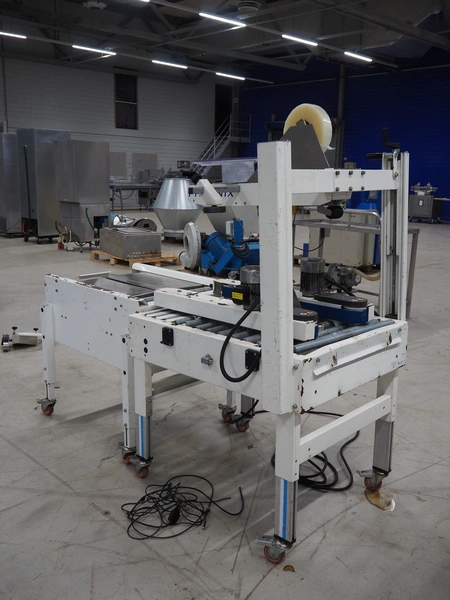 Endoline mobile box closing machine, model: PS6, serial number: 080753309-1, aluminium rollers, roller width: 670 mm, total dimensions: 1000 mm x 900 mm x 1720 mm, 900 mm x 750 mm x 850 mm.
