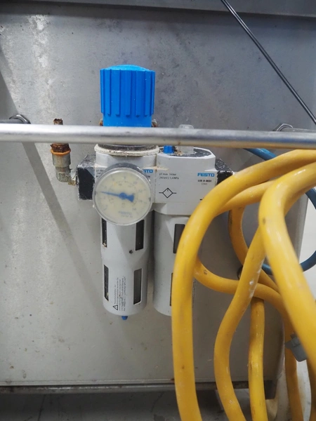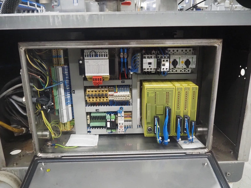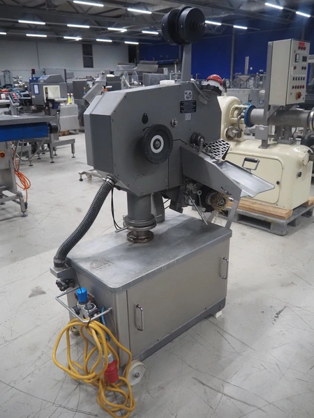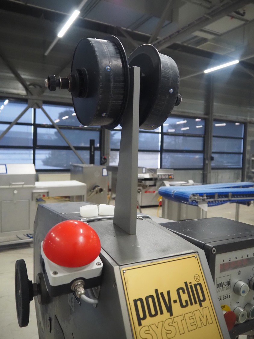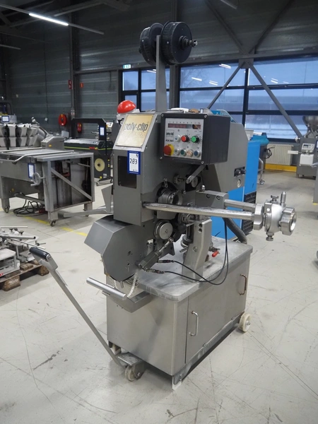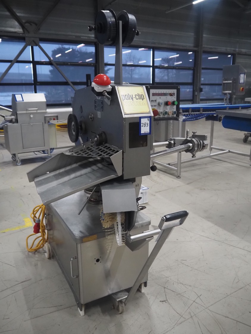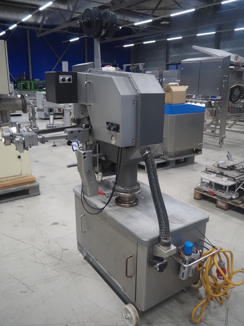 Poly-clip system GmbH & Co. KG mobile double clipper, type: FCA 3 441, number: 513, year of construction: 1998, 400 V, 50 Hz, 4 A, dimensions: 1200 mm x 650 mm x 1880 mm.