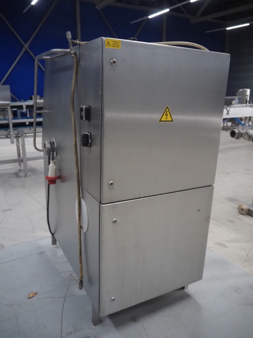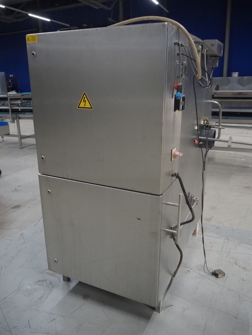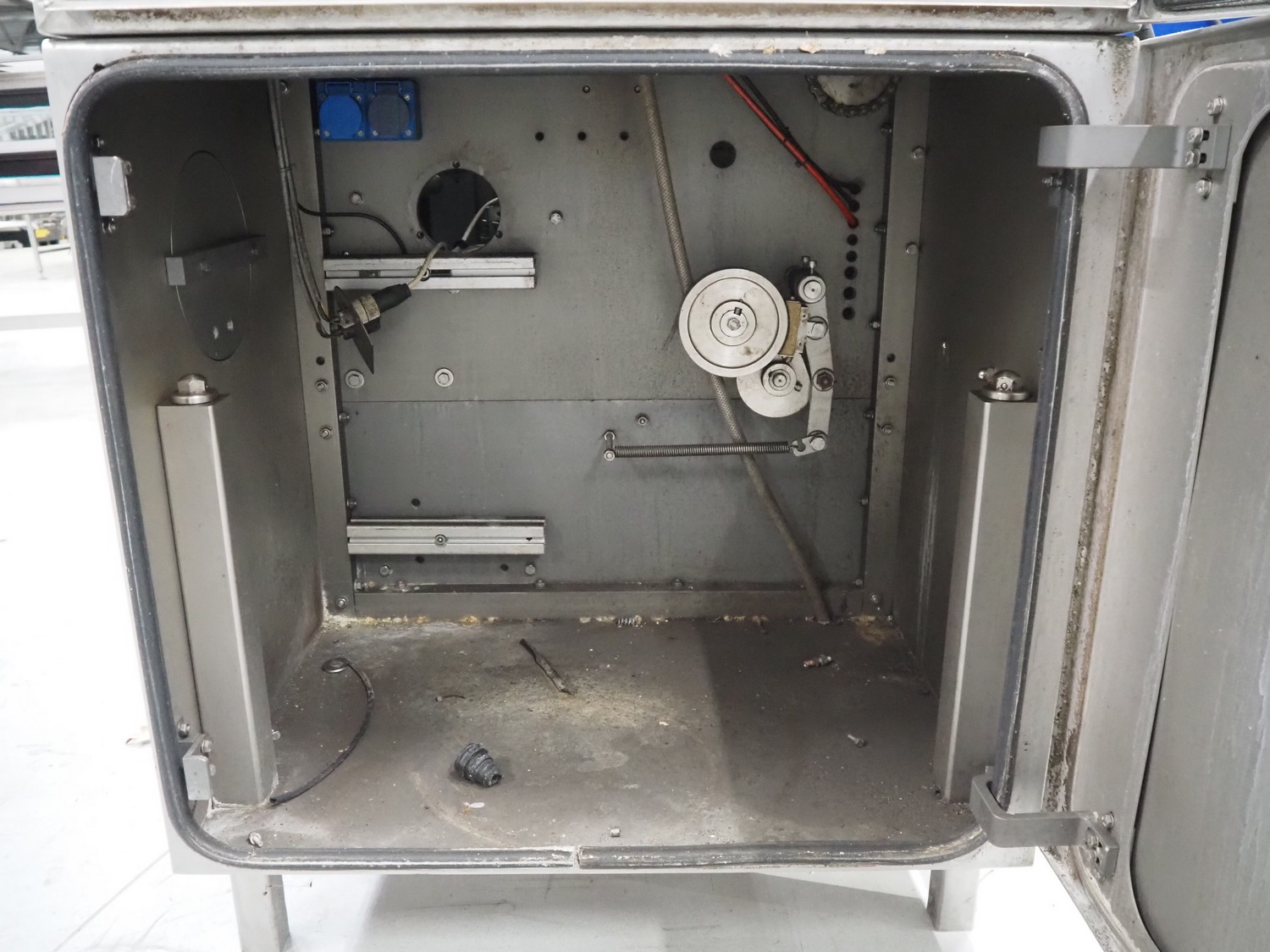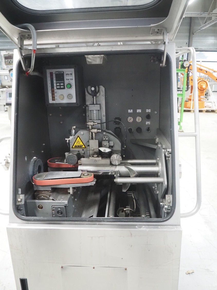 Poly-clip System GmbH & Co. KG automatic clipping and sealing machine, type: TSA 120 HS, number: 142, year of construction: 1999, 400 V, 50 Hz, 16 A, air pressure: 5/7 bar, dimensions: 1400 mm x 980 mm x 1660 mm.