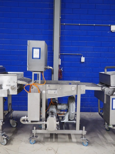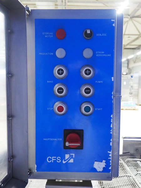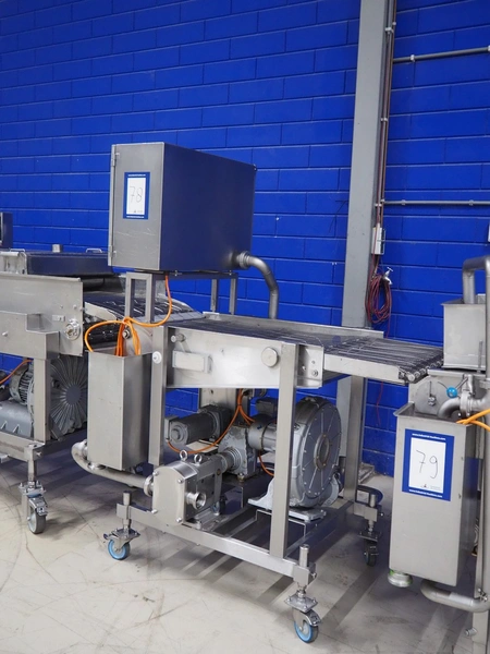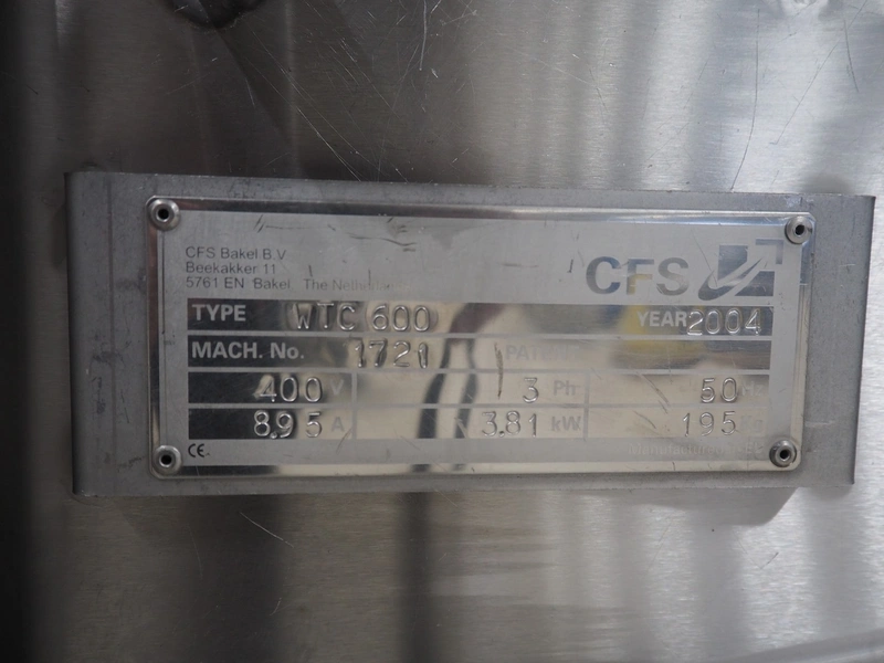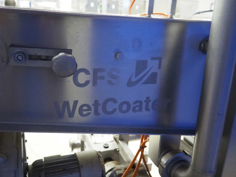 CFS Bakel B.V. wet coating machine, WTC600, machine number: 1721, year of construction: 2004, 400 V, 3 Ph, 50 Hz, 8.95 A, 3.81 kW, weight: 195 kg, s/s mesh belt, belt width: 600 mm, total dimensions: 1350 mm x 1150 mm x 1850 mm.