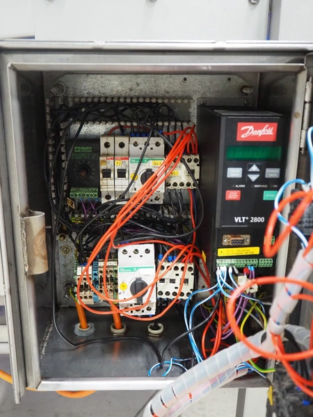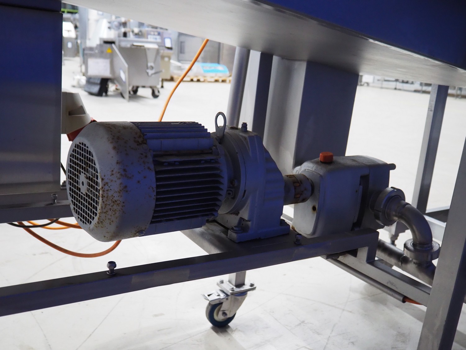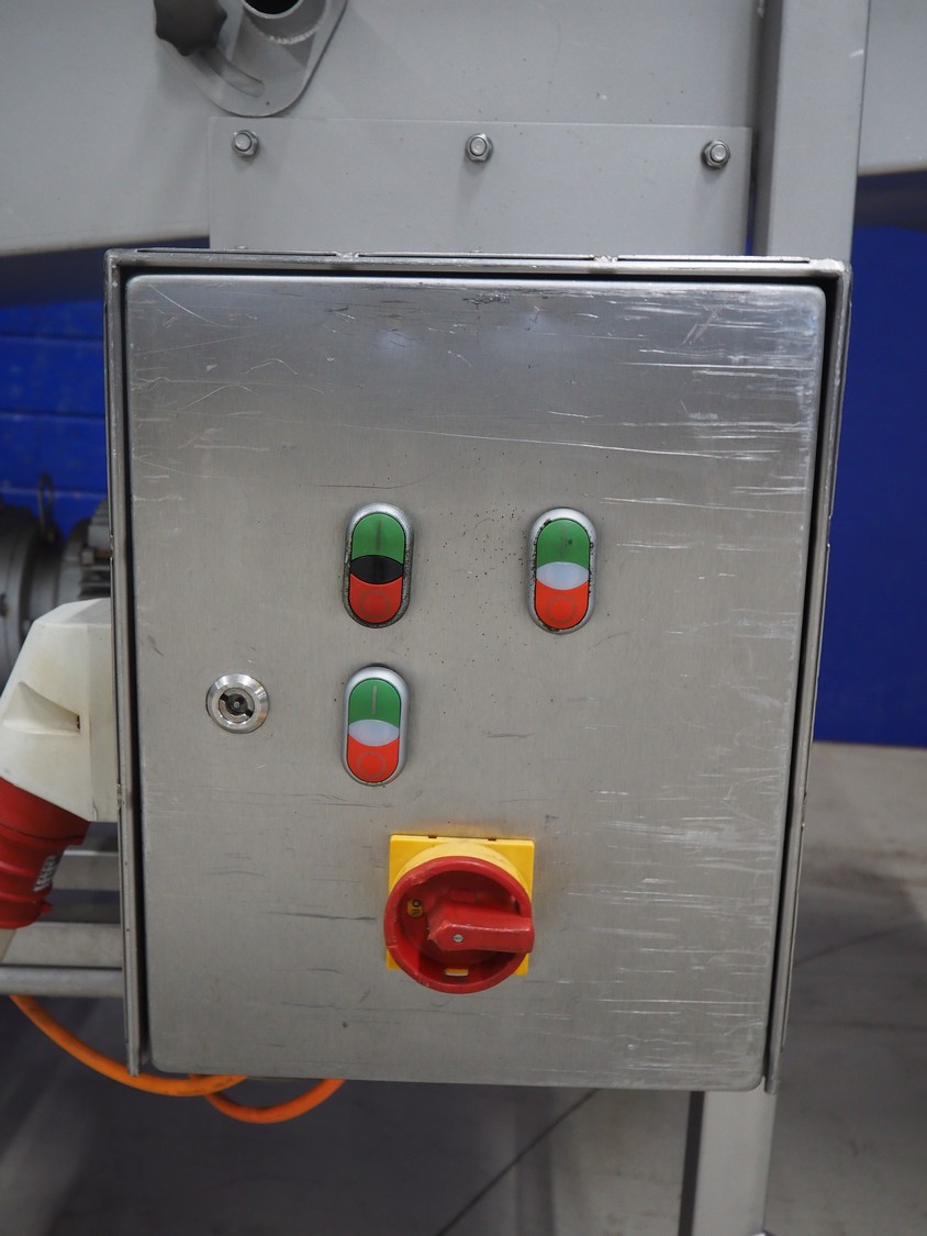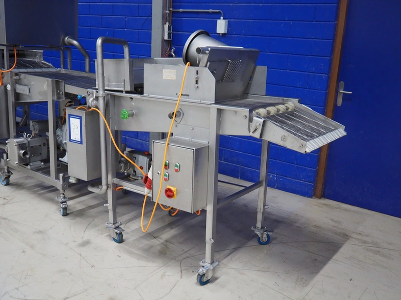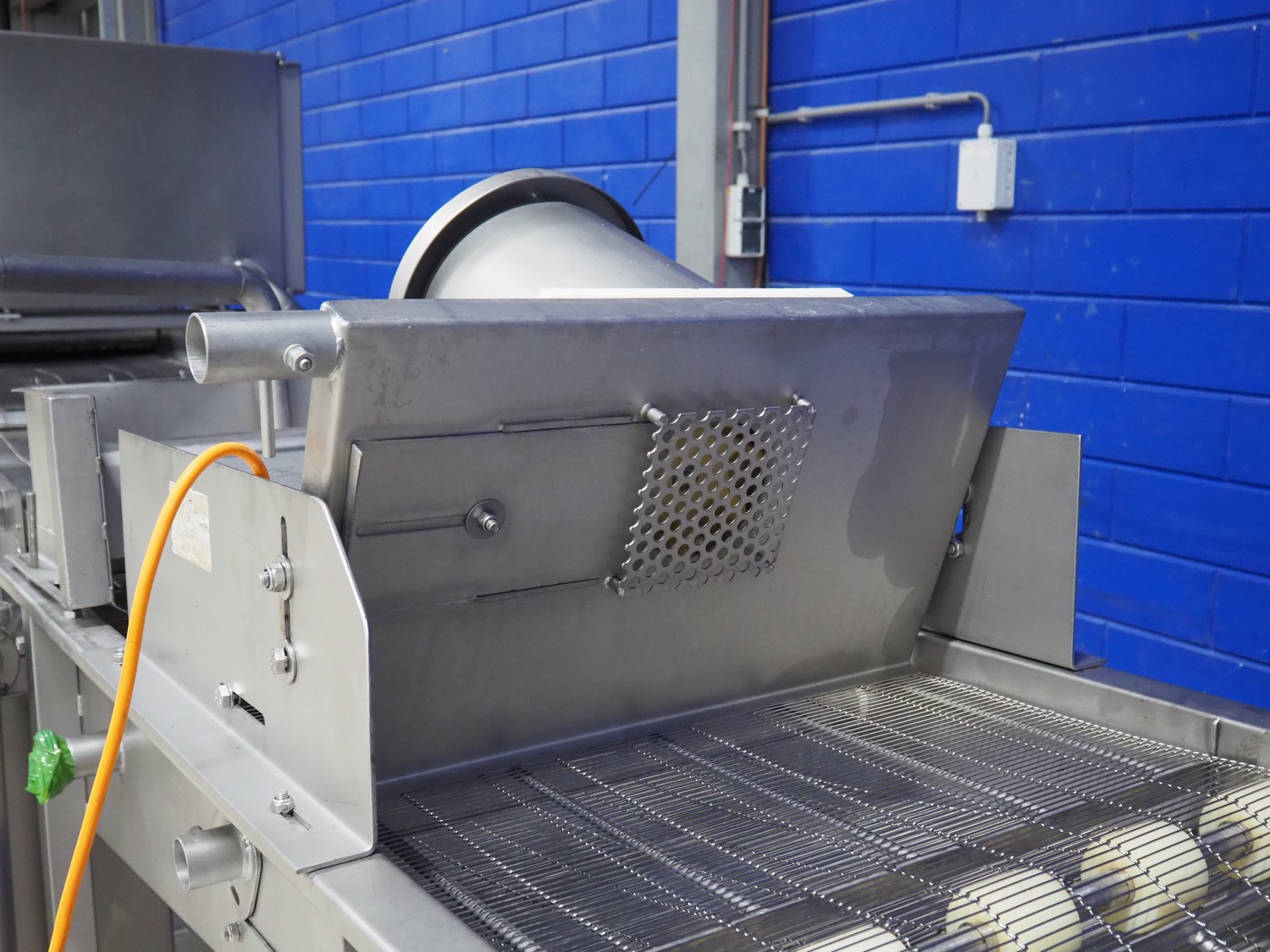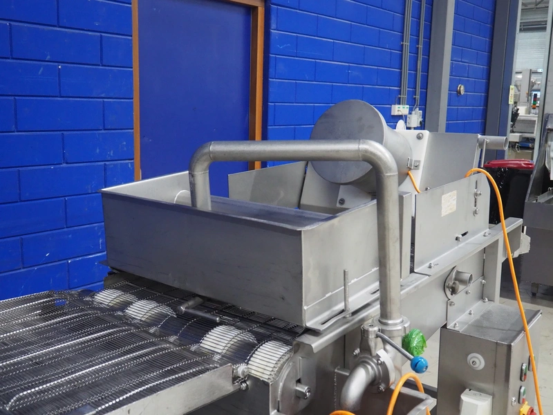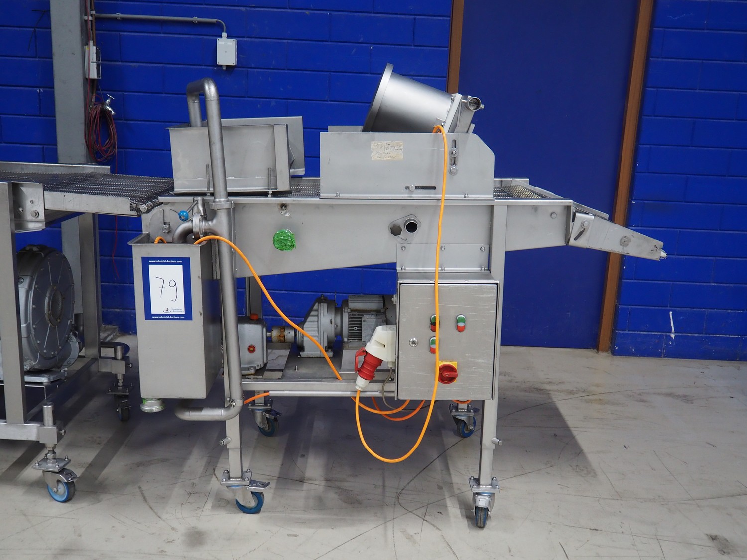 Mobile coating machine, s/s mesh belt, belt width: 600 mm, total dimensions: 1730 mm x 900 mm x 1550 mm.