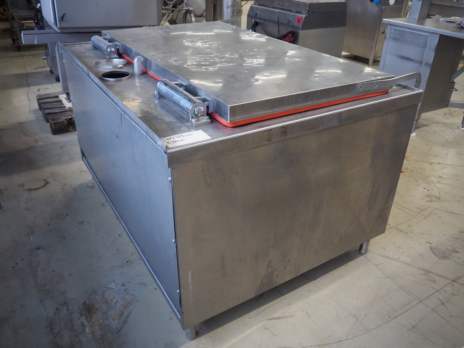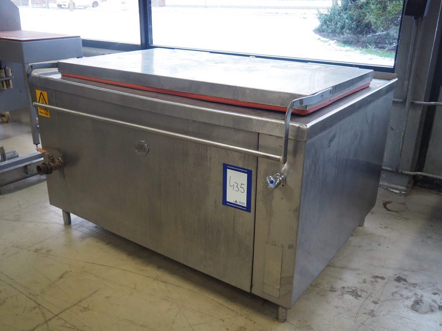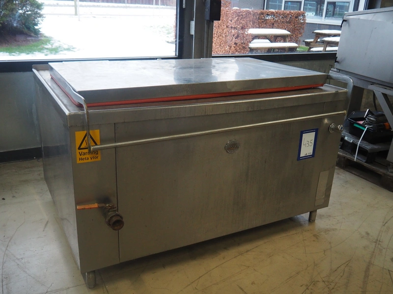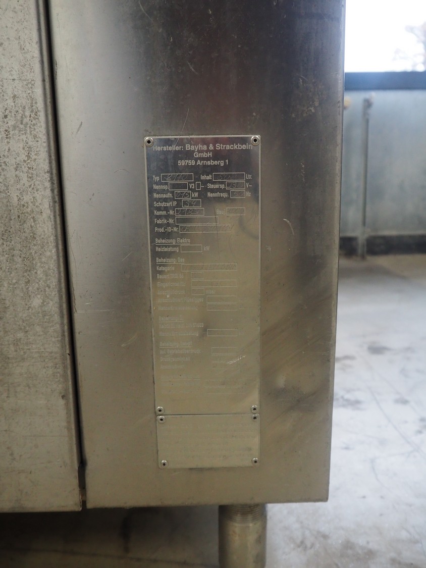 Bastra cooking vessel, type: 8110, year of construction: 2006, 230 V, 50 Hz, 1.5 kW, volume: 500 liter, gas heated, dimensions: 1700 mm x 1350 mm x 1100 mm.