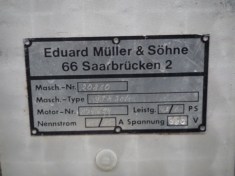 Eduard Müller & Sohne cutter, type: MTK 30/1, machine number: 20810, 380 V, dimensions: 980 mm x 770 mm x 610 mm. With extra parts.