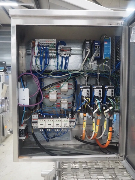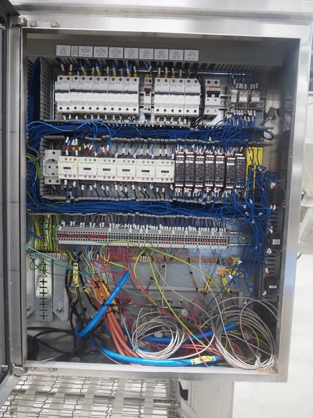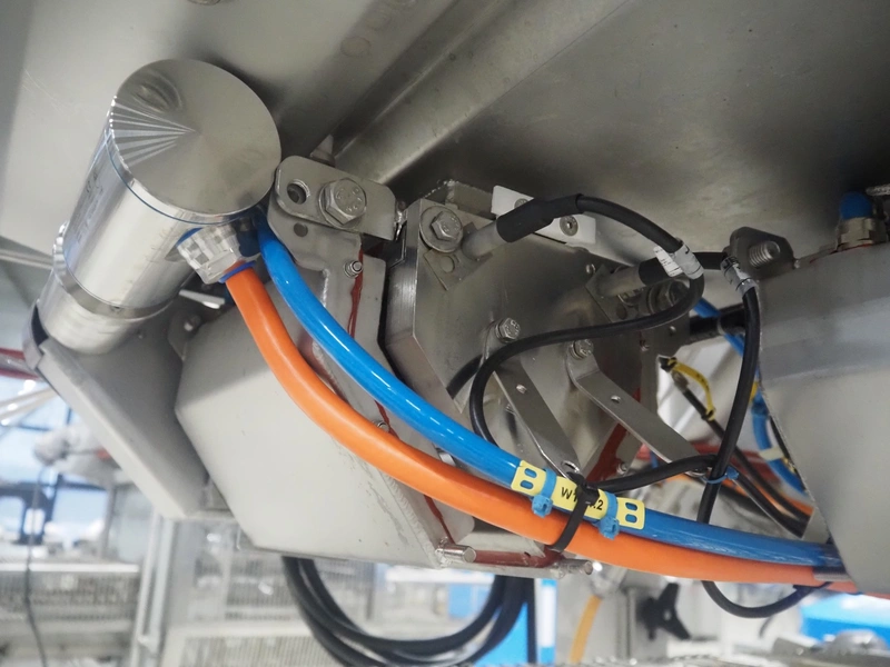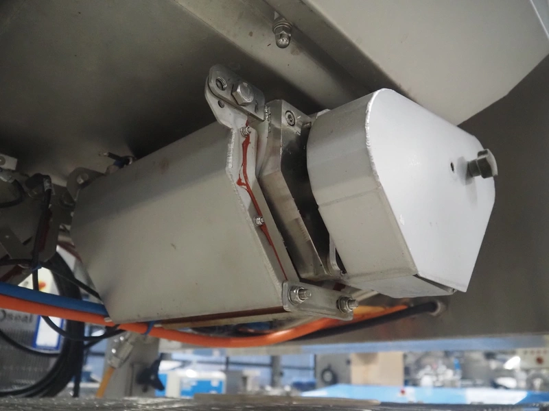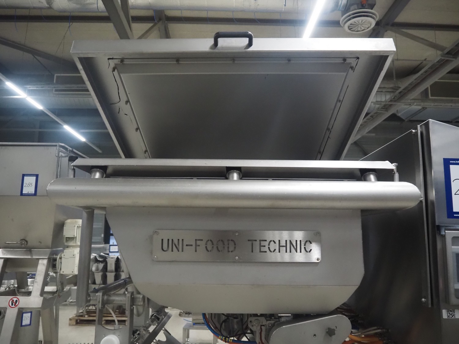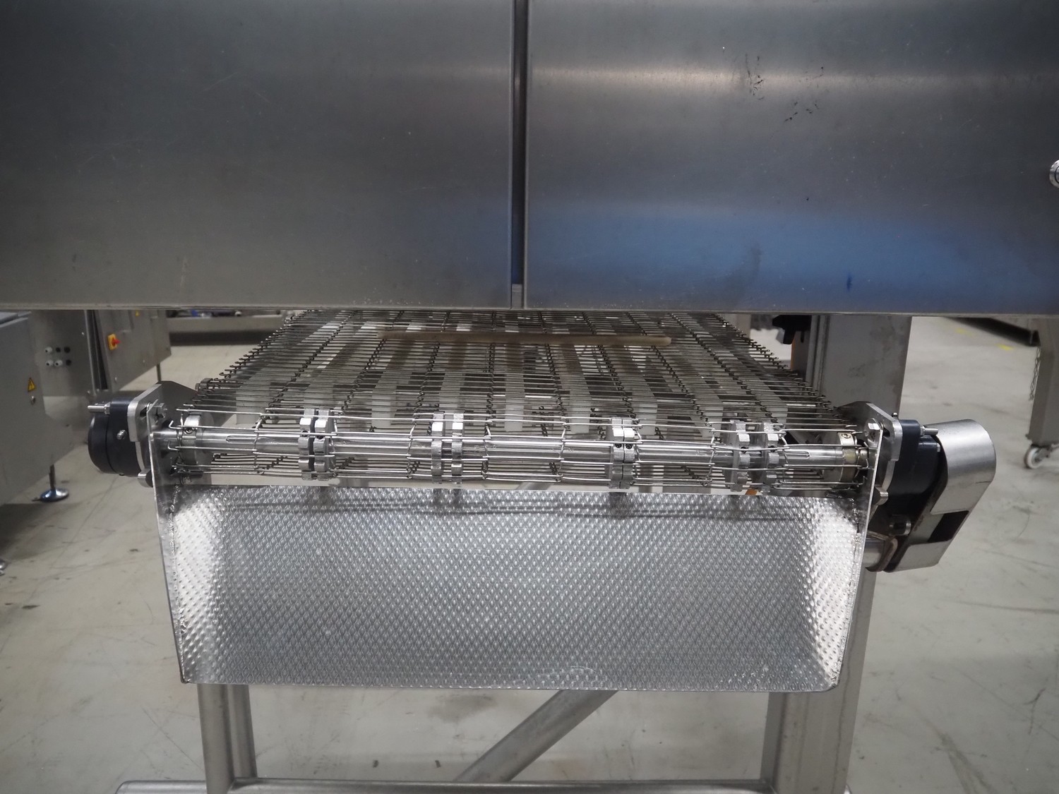 UNI-FOOD TECHNIC mobile depositor, s/s frame, s/s mesh belt, belt width: 710 mm, total dimensions: 1900 mm x 1300 mm x 2040 mm.