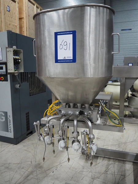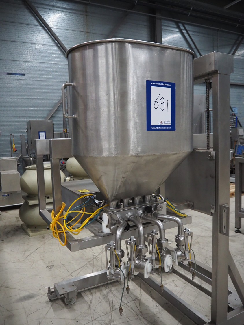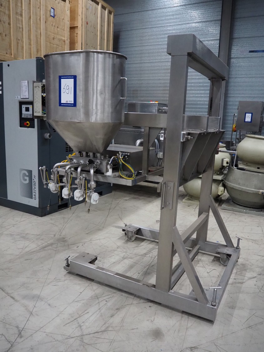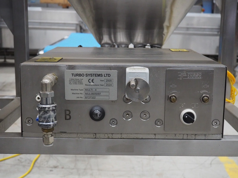 Turbo Systems mobile depositor, type: Multi-4, machine number: Mul0605097, year of construction: 2005, diameter filling heads: (4x) 30 mm, total dimensions: 2000 mm x 1400 mm x 2000 mm. Serviced in 2025.