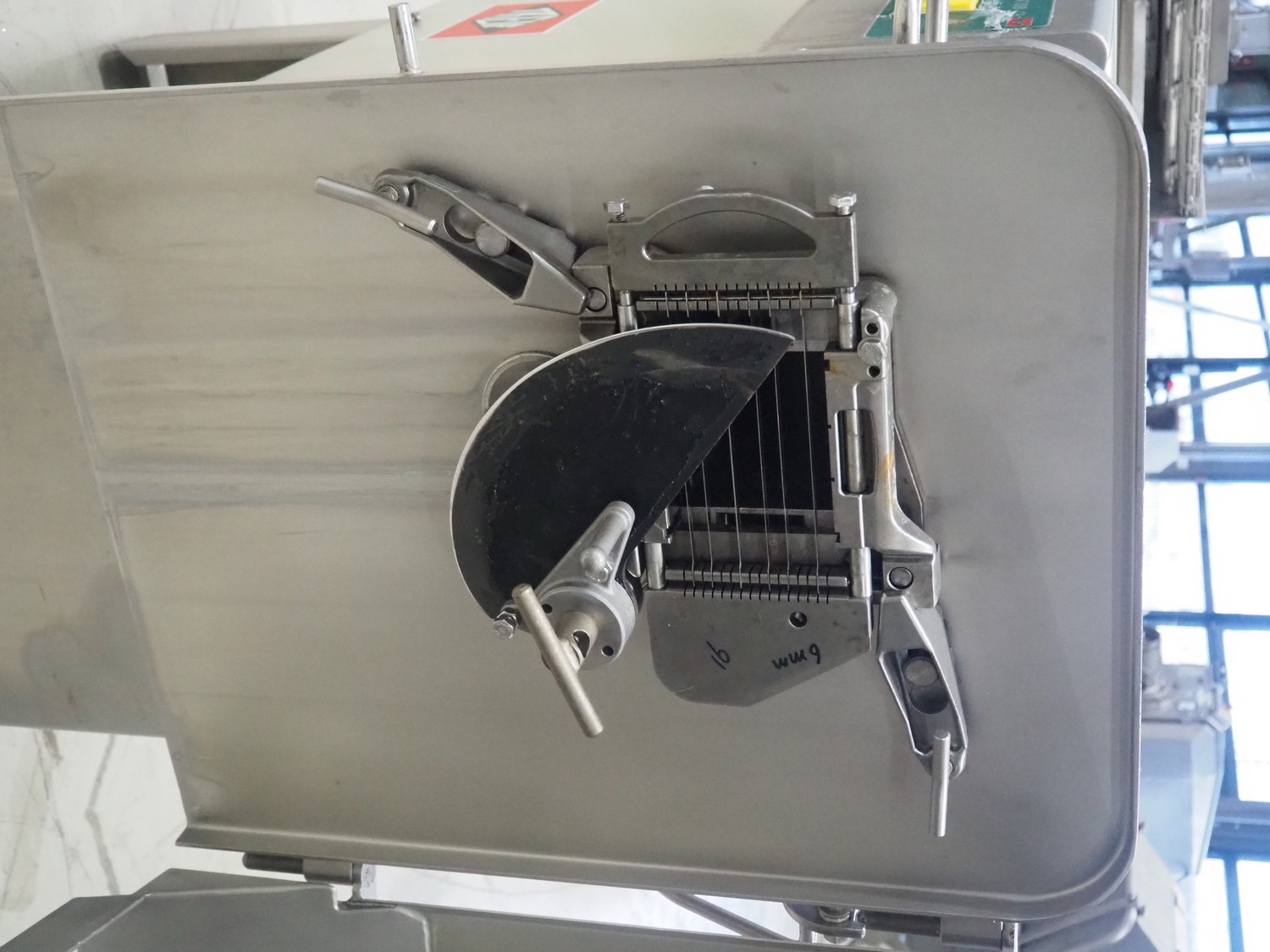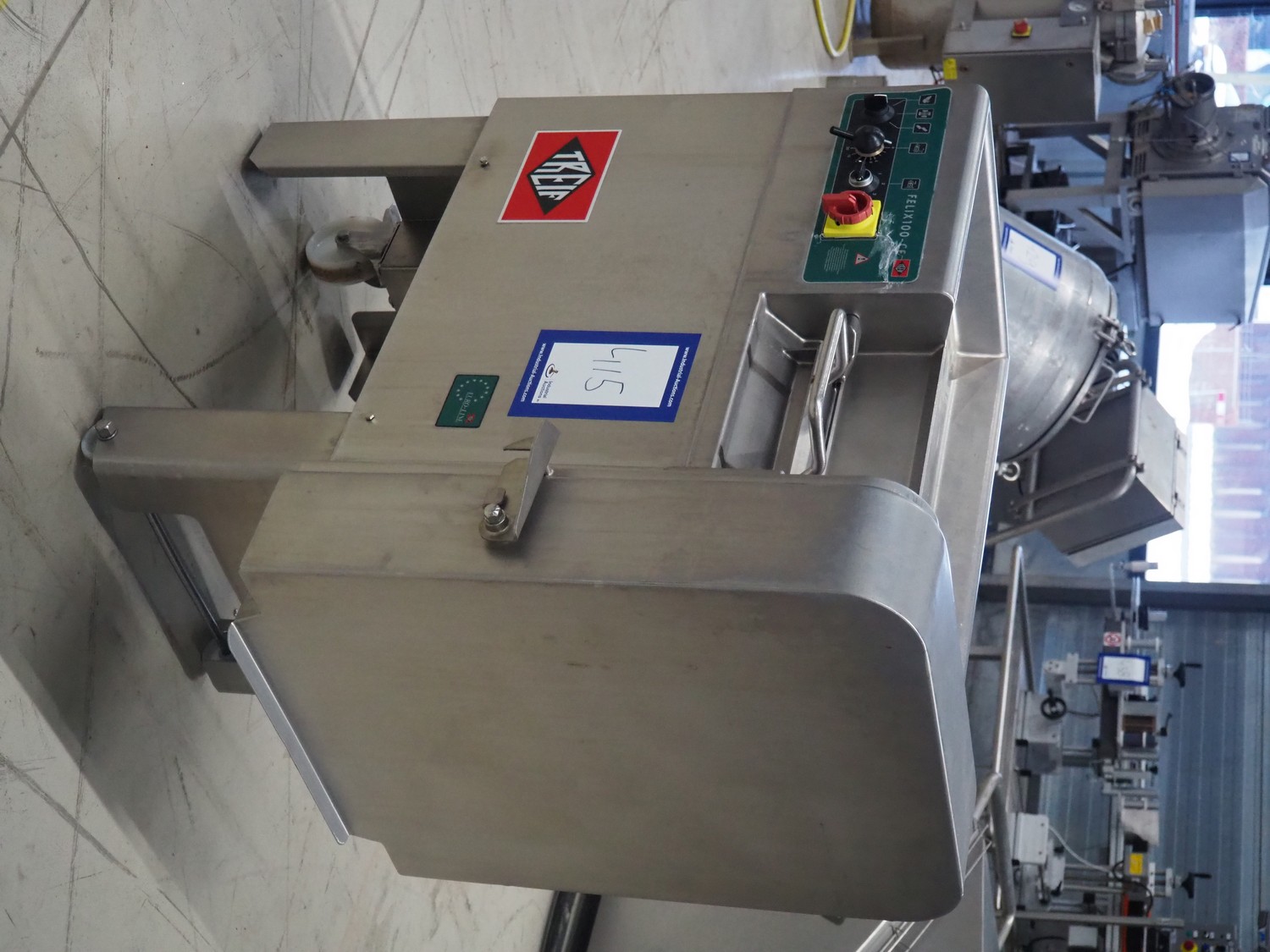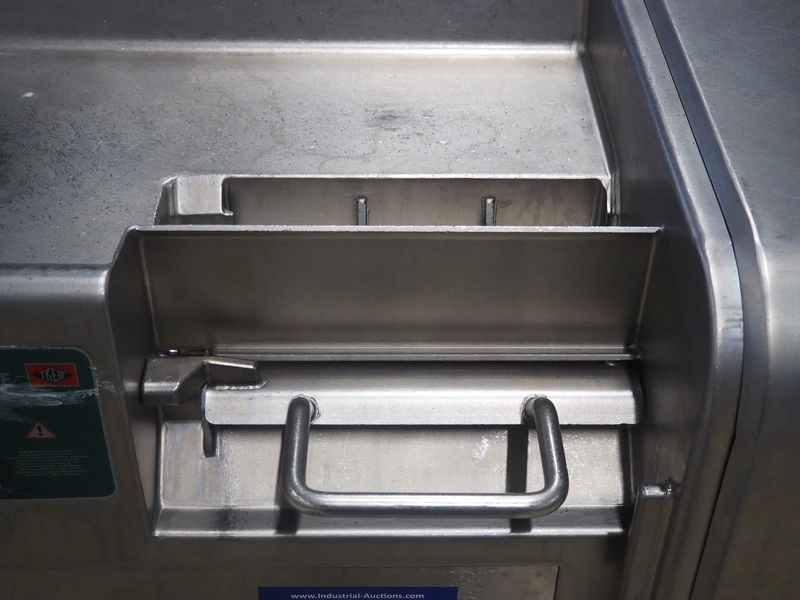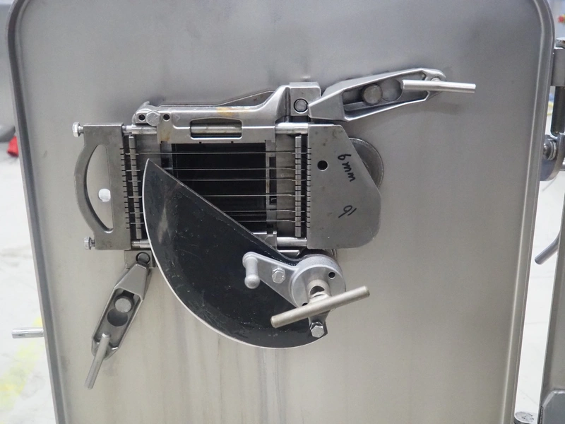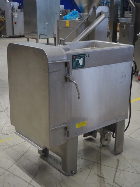 Treif Maschinenbau GmbH mobile dicer, type: 2710, machine number: 271004.69131.0495, year of construction: 1999, 400/230 V, 50 Hz, 3 A, 1.0 kW, 174 kg, dimensions chamber: 95 mm x 95 mm, total dimensions: 1000 mm x 620 mm x 1000 mm.