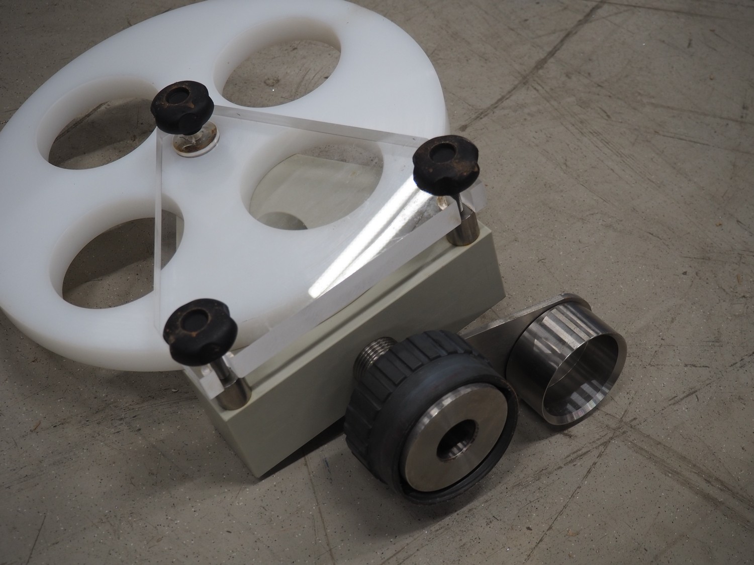 Hamburger forming attachment, diameter forms: (4x) 90 mm, total dimensions: 420 mm x 320 mm x 200 mm.