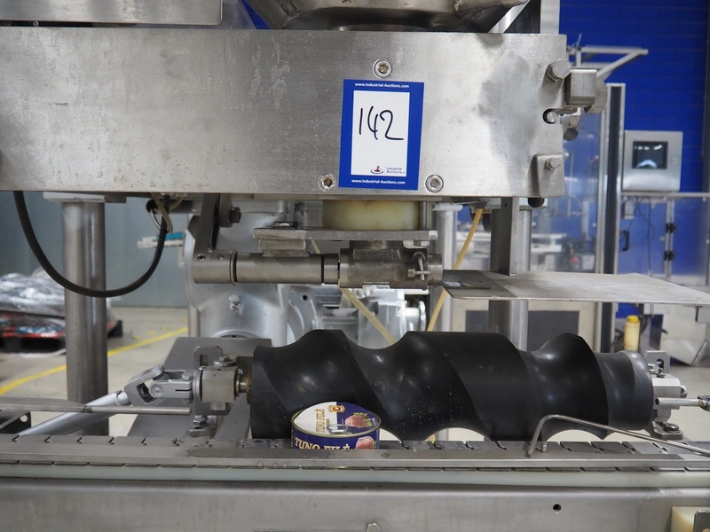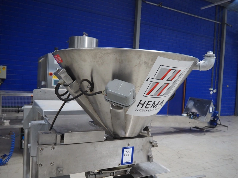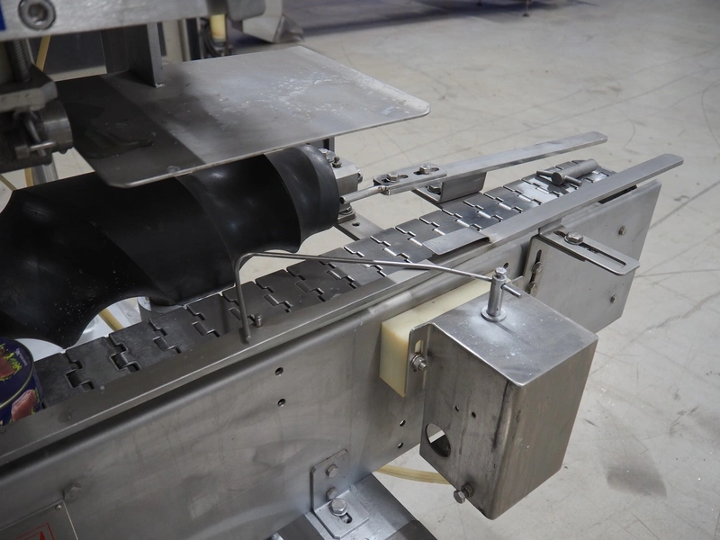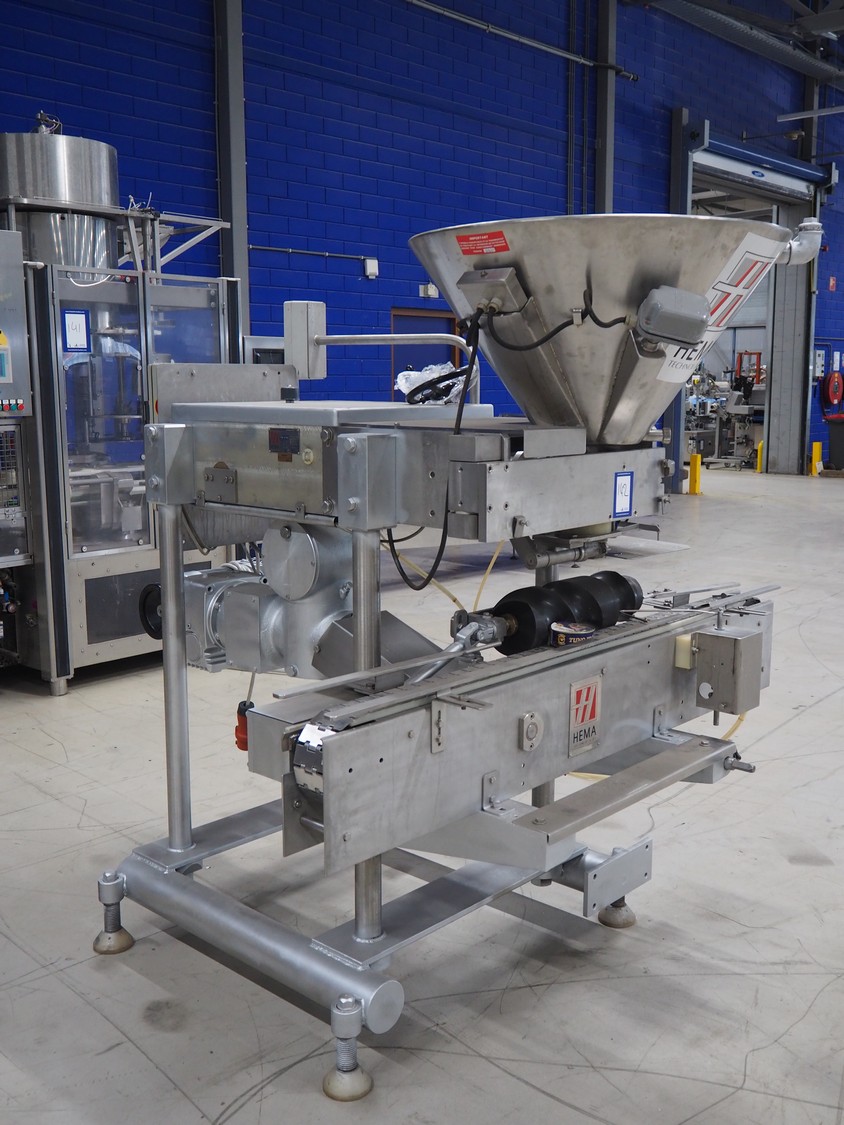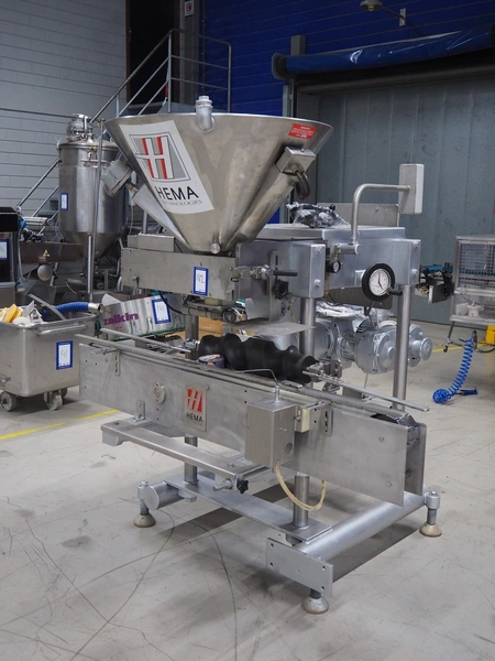 HEMA can filling machine, type: DM60R3, serial number: 441, year of construction 1990, s/s belt, belt width: 85 mm, total dimensions: 1800 mm x 1100 mm x 1780 mm. Serviced in 2025.