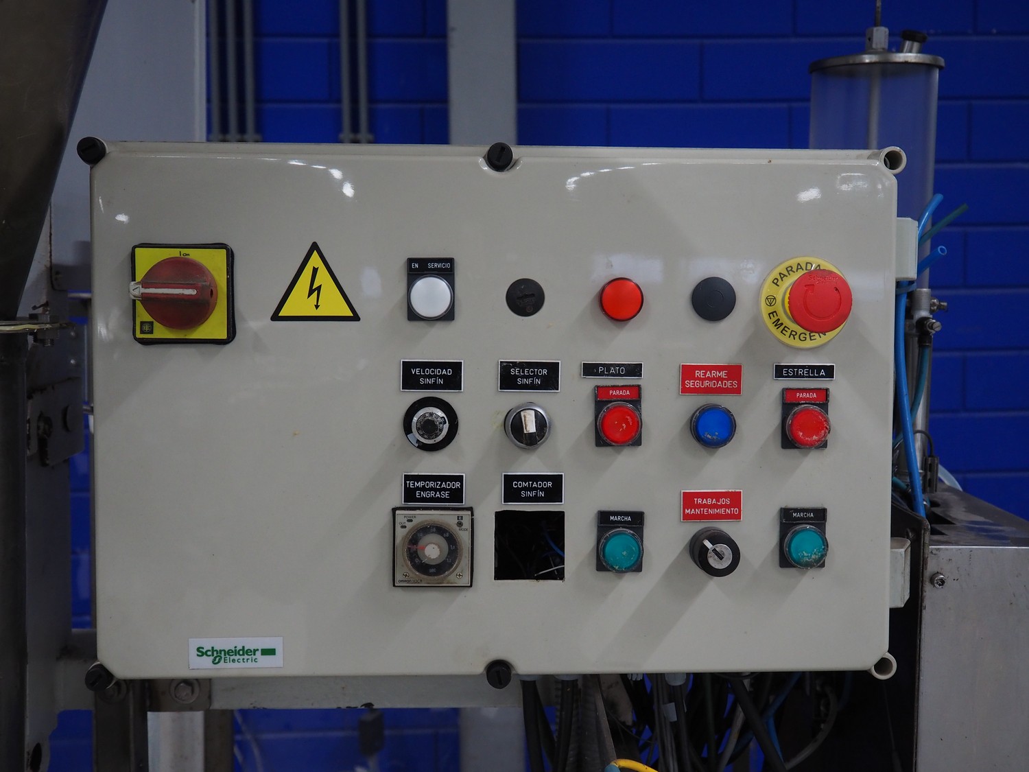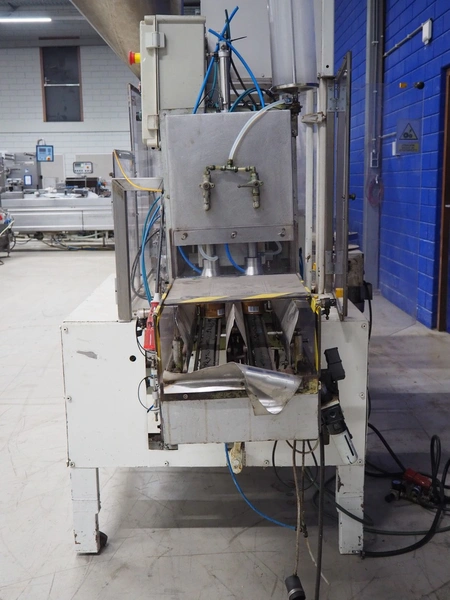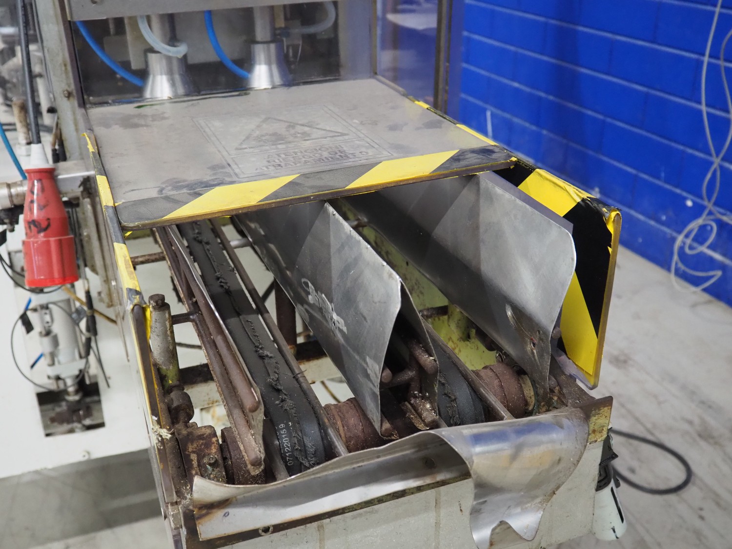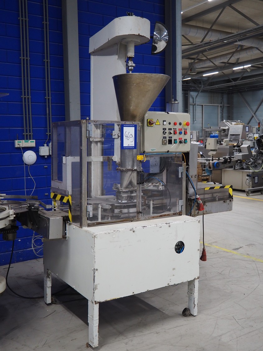 Can filling machine, double lane infeed belt, belt width: (2x) 80 mm, 8 stations, diameter cans: 70 mm, s/s outfeed belt, belt width: 100 mm, total dimensions: 2150 mm x 1100 mm x 1840 mm.