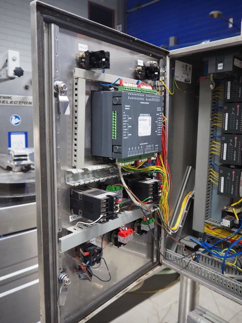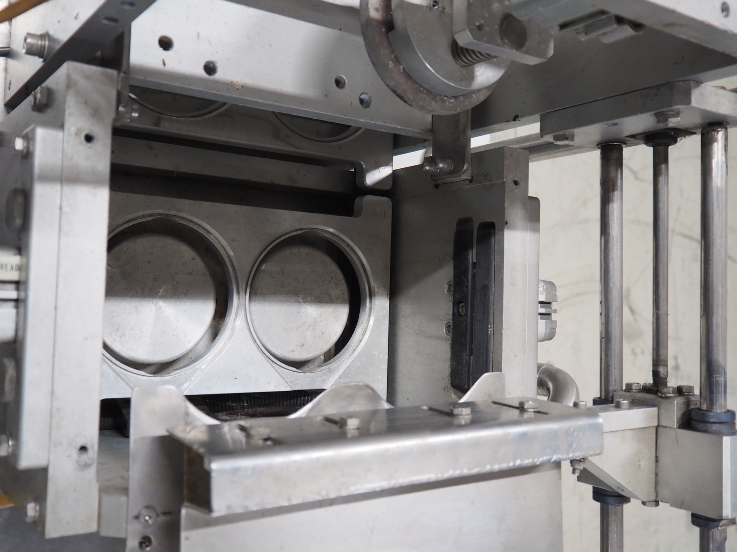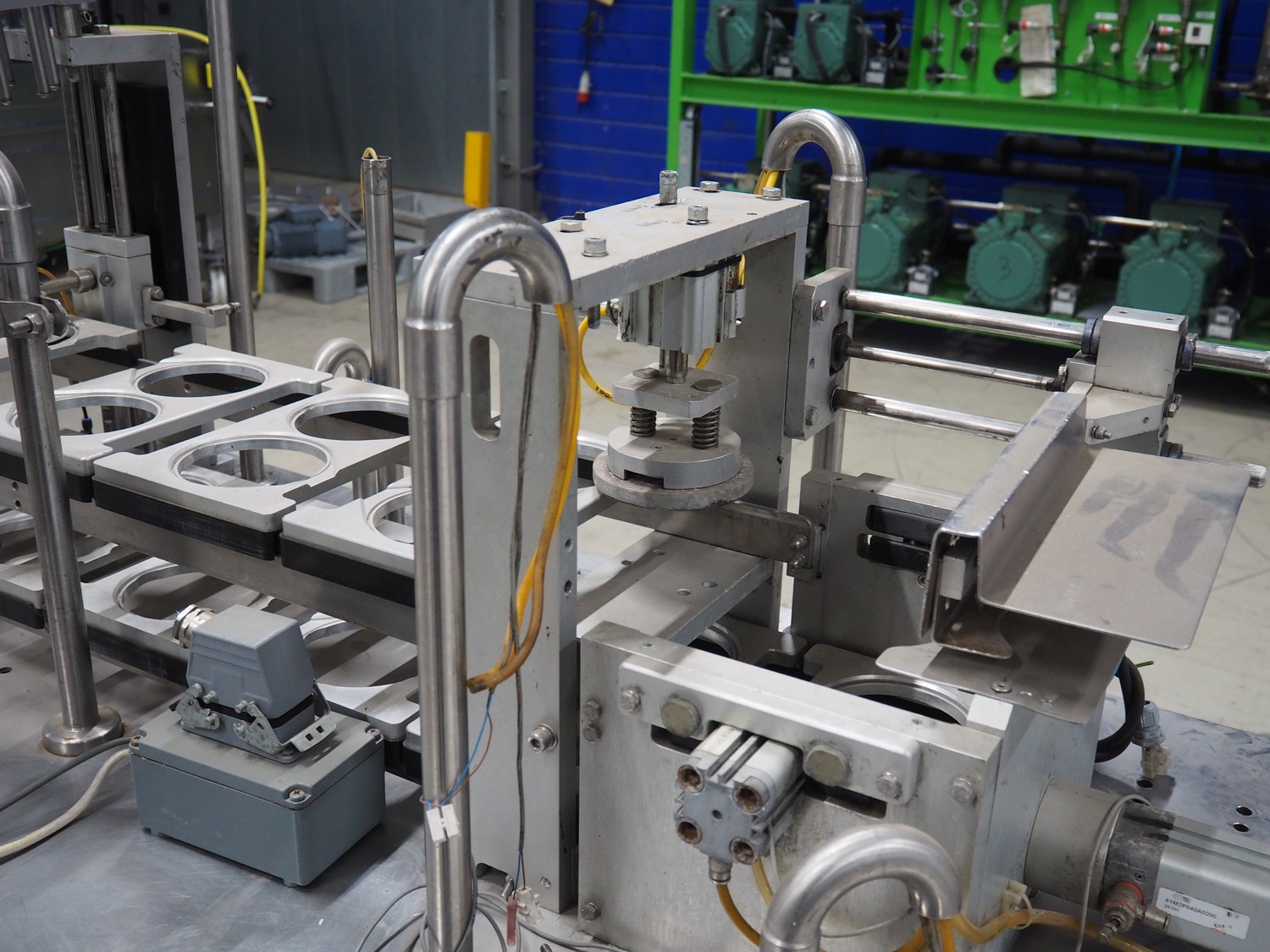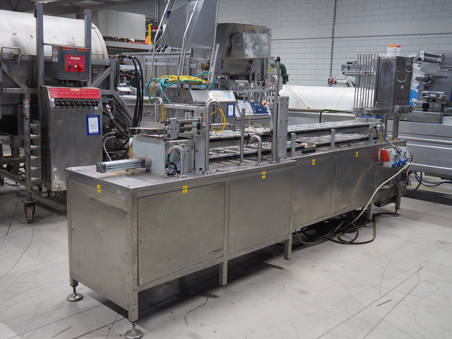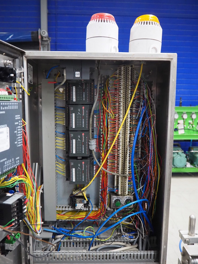 Nesbad Industries Ltd filling line consisting of: 2 denesters, model: MORAN II, number: 00171.12.02, 380 V, 50 Hz, 7400 W, Ø cups: (2x) 110 mm, total dimensions: 3690 mm x 710 mm x 1870 mm. Including pallet with parts, dimensions pallet: 1200 mm x 800 mm x 1180 mm.