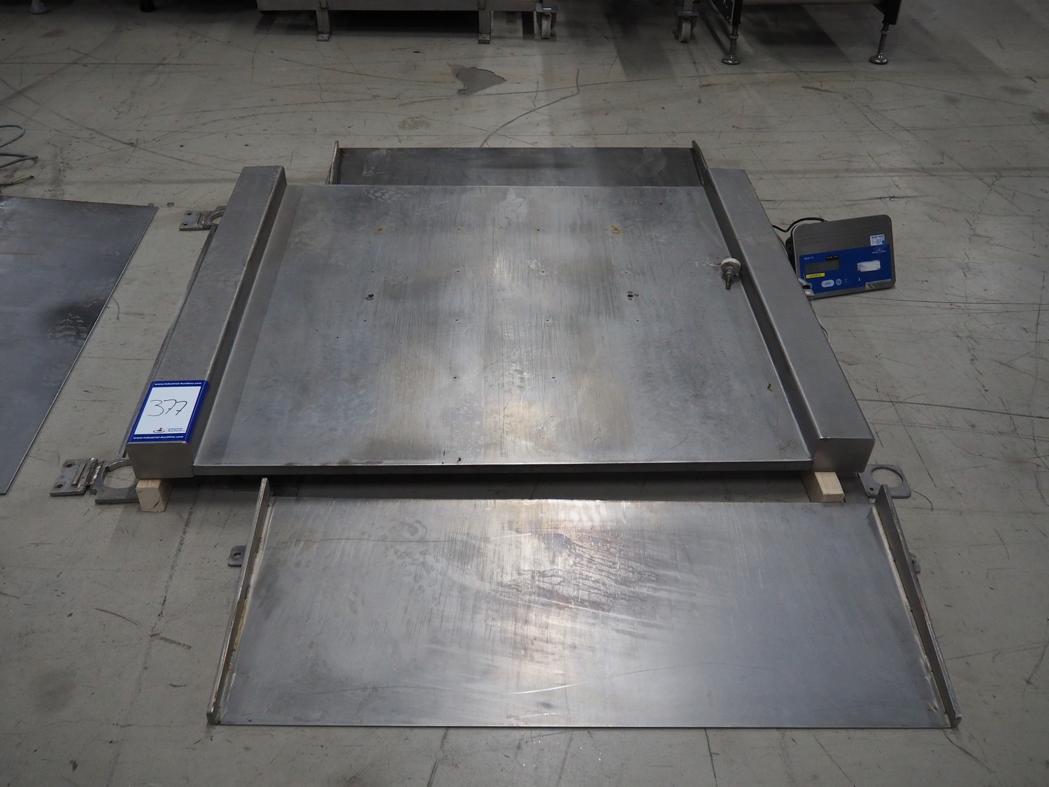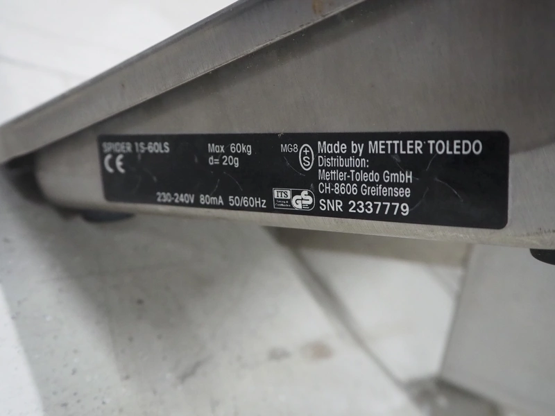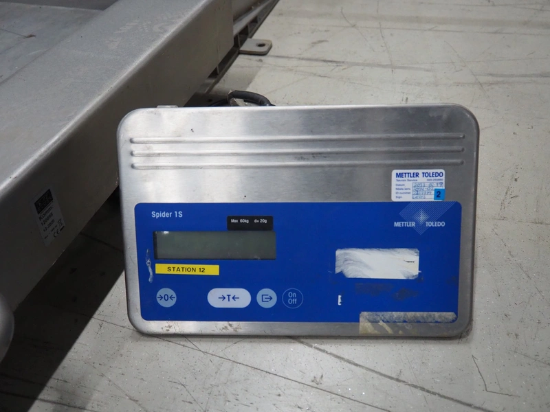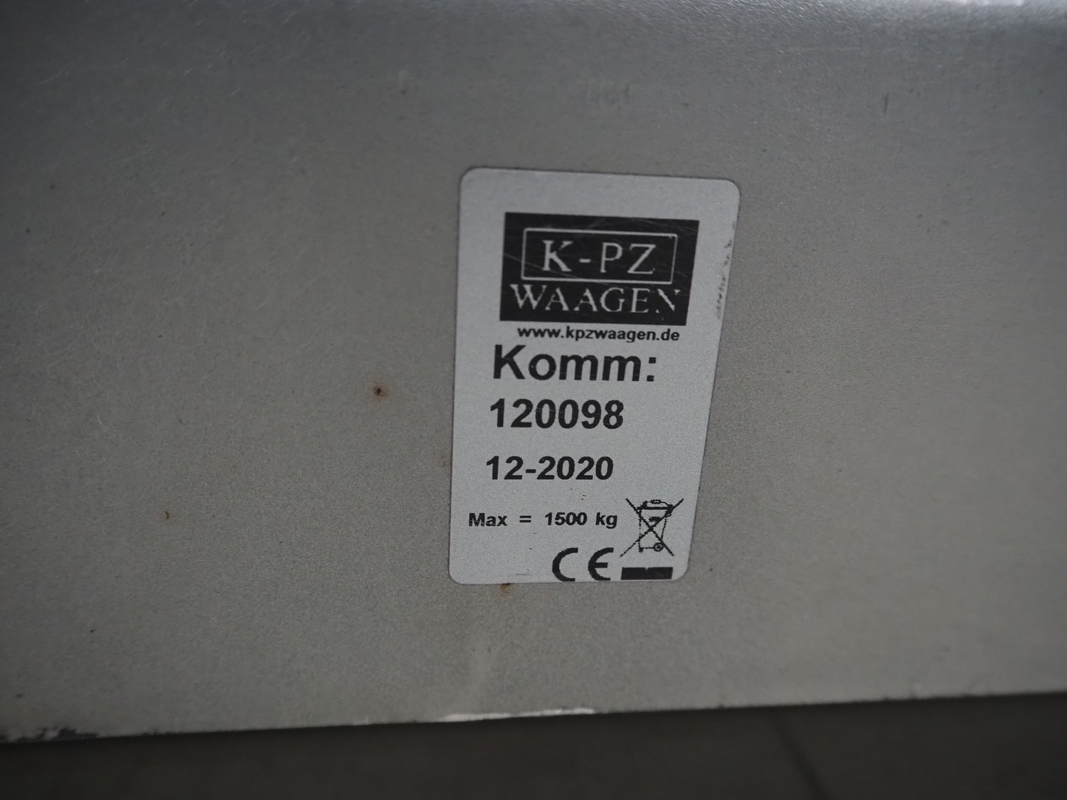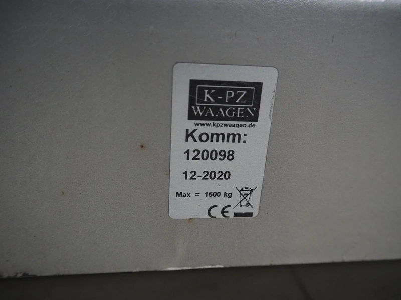 KPZ Waagen floor weighing scale, number: 120098, year of construction: 12-2020, capacity: 1500 kg, with Mettler Toledo indicator, type: SPIDER 1S-60LS, maximum weight: 60 kg, d= 20 gram, dimensions: 1500 mm x 1150 mm x 95 mm.