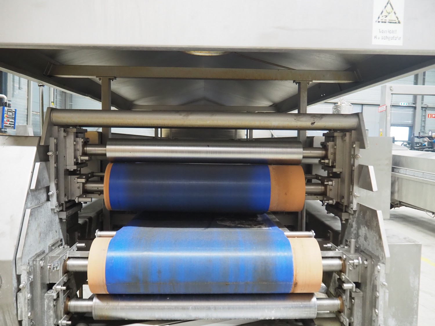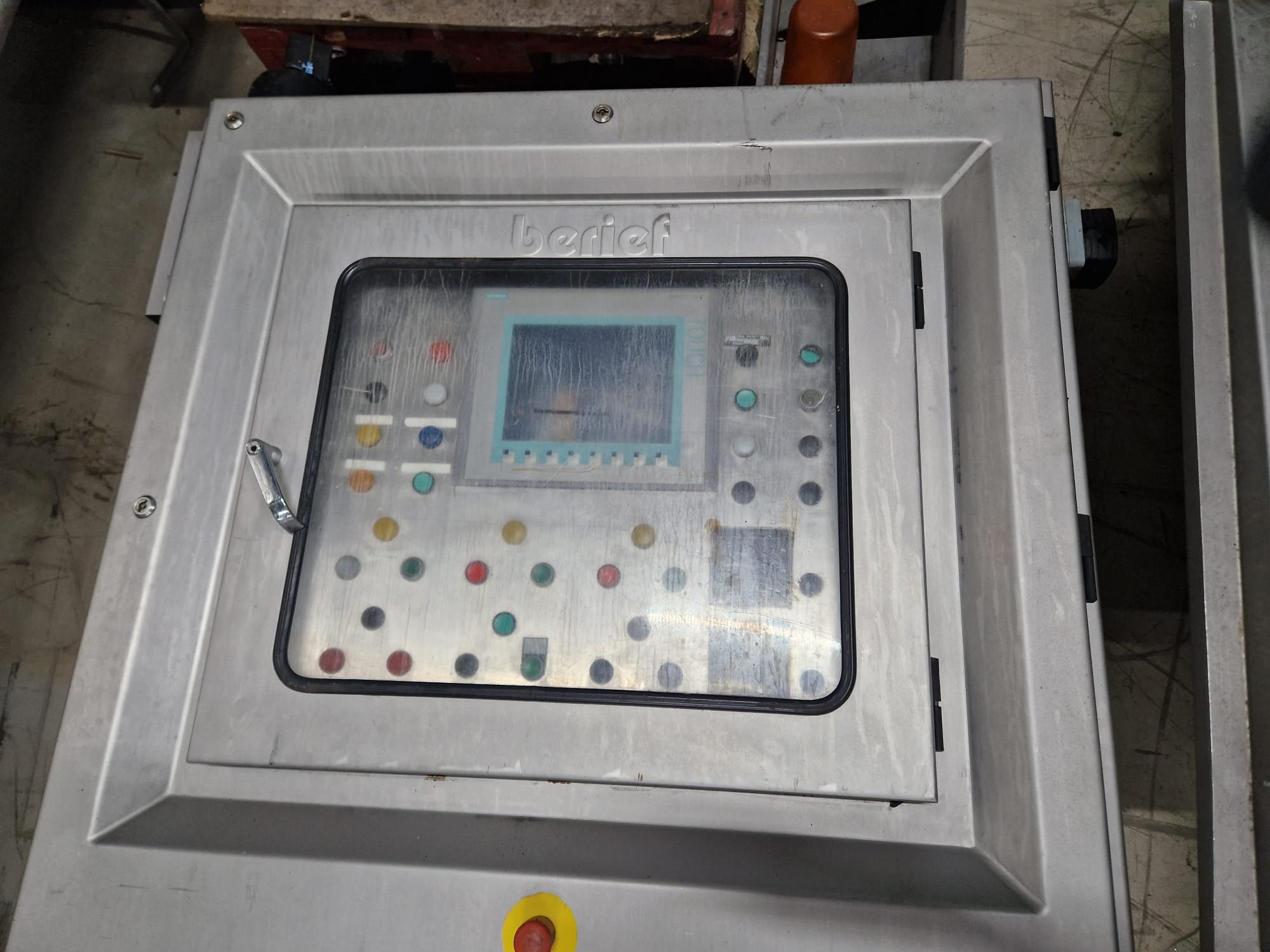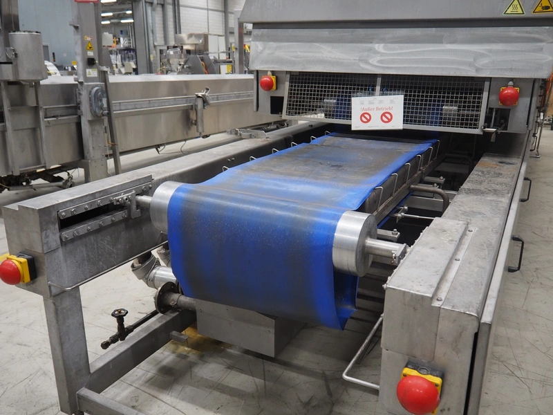 Berief Teflon grill belt, belt width: 655 mm, total dimensions: 8500 mm x 2200 mm x 2300 mm.