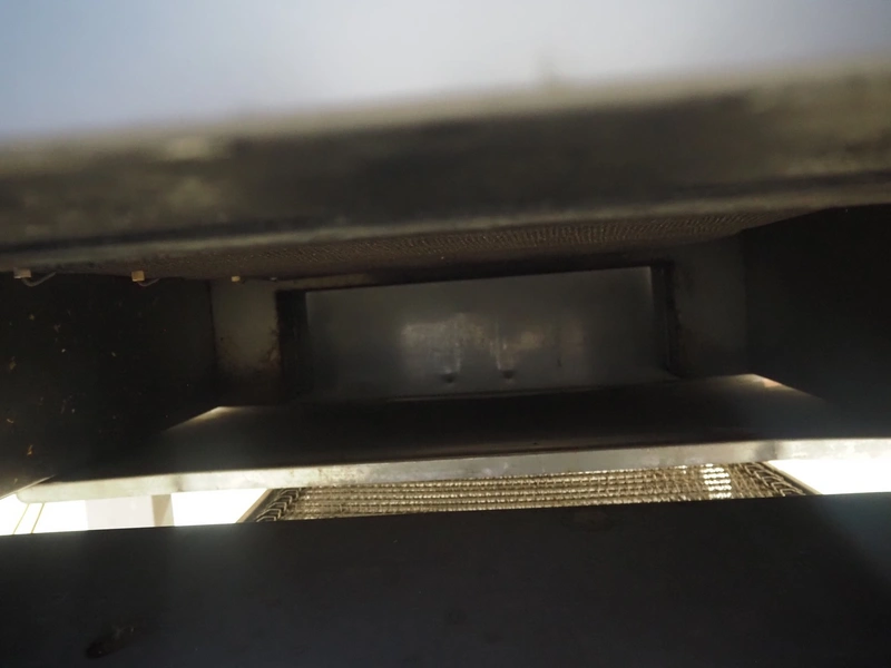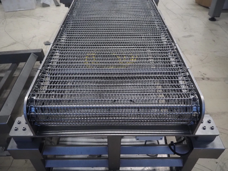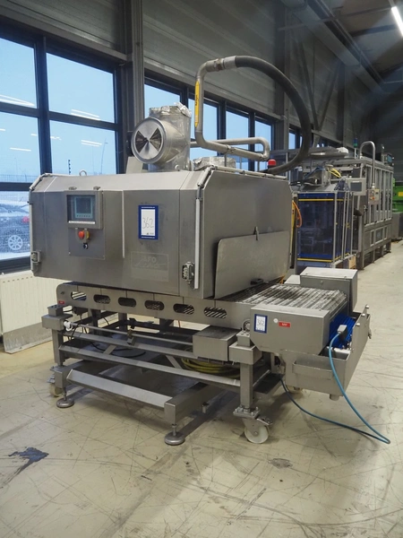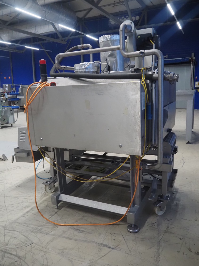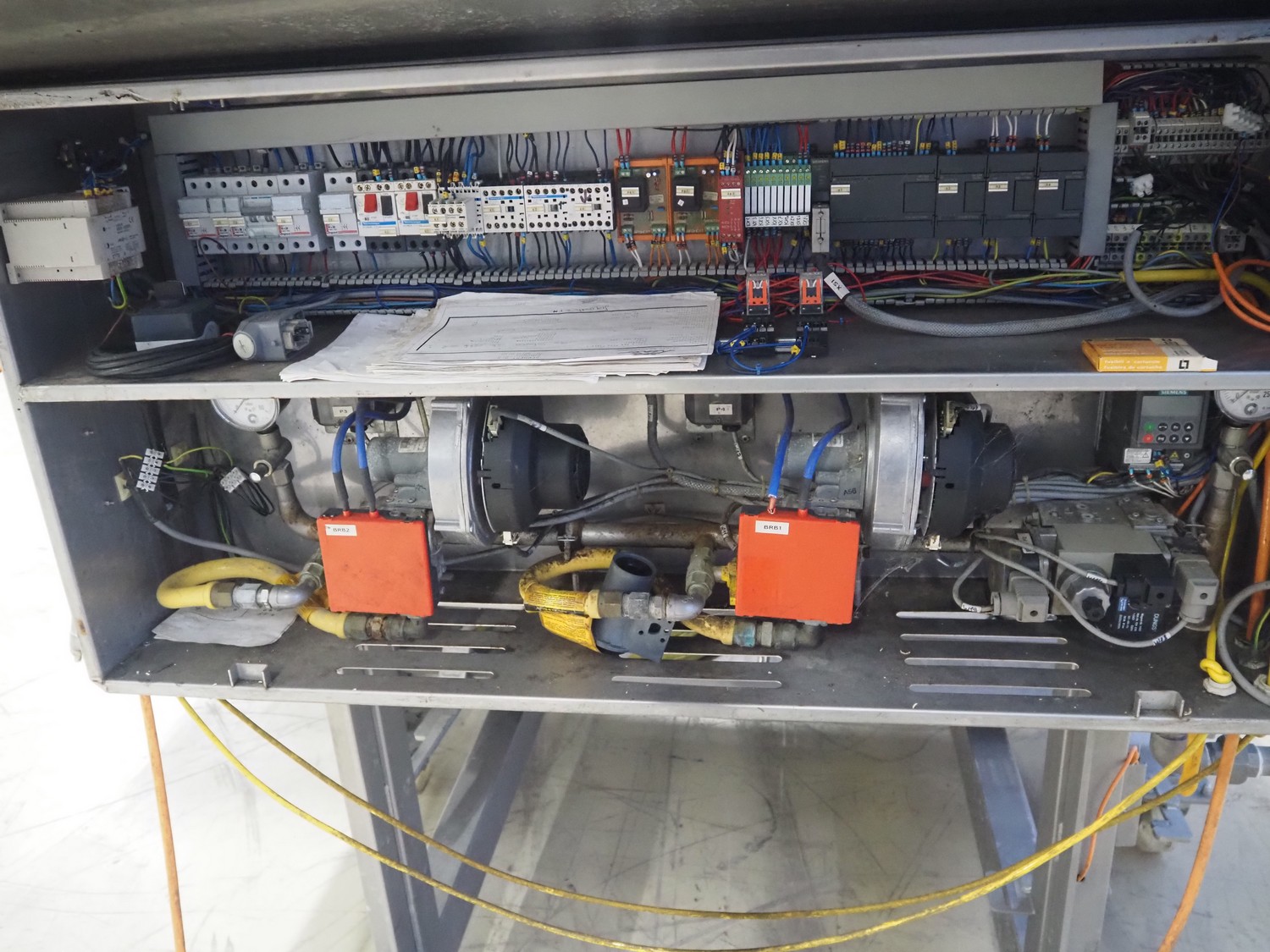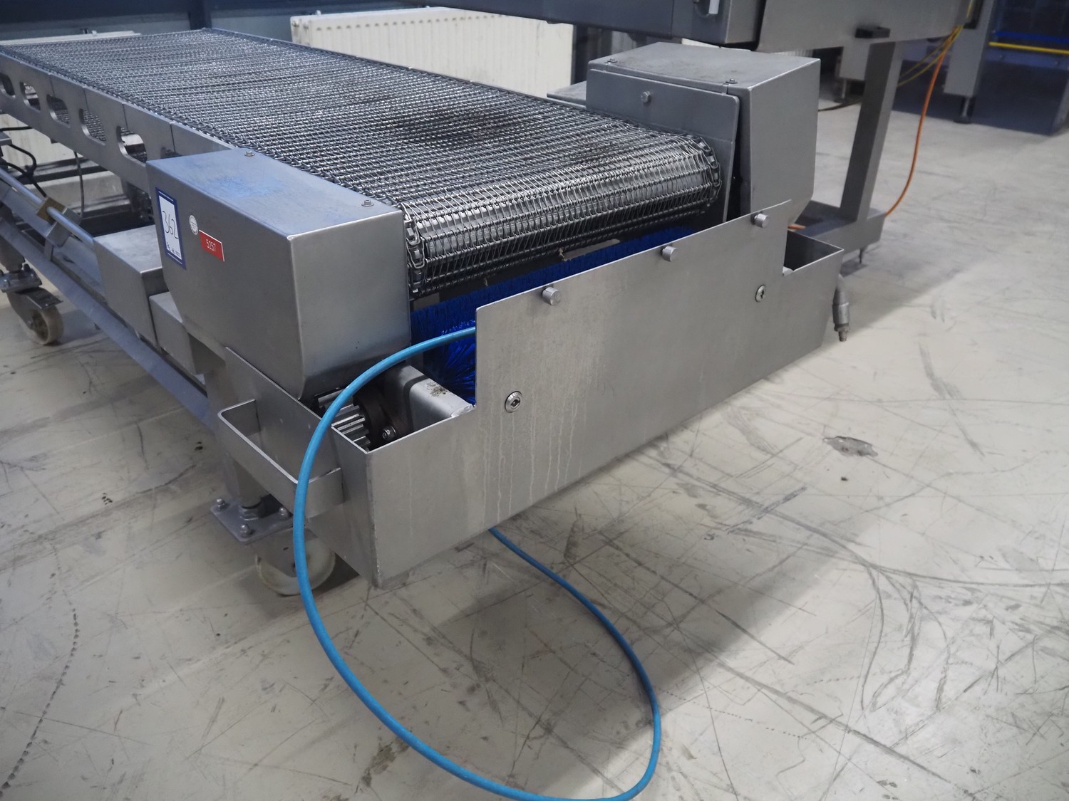 AFO Heat grill, type: AFOGRILL, serial number: F 022, year of construction: 2006, 400 V, 3 Ph, (2x) 72 kW, weight: 950 kg, s/s mesh belt, belt width: 630 mm, clearance: 700 mm x 220 mm, total dimensions: 2350 mm x 1800 mm x 2210 mm.