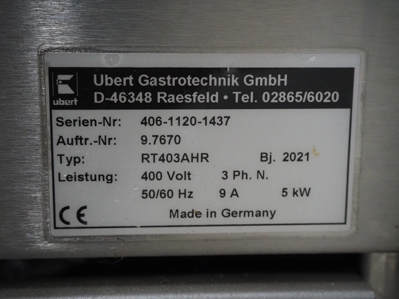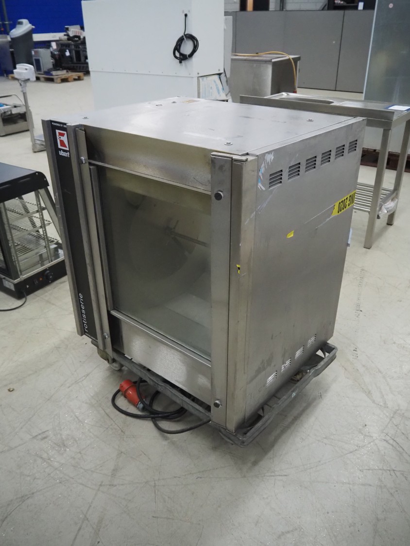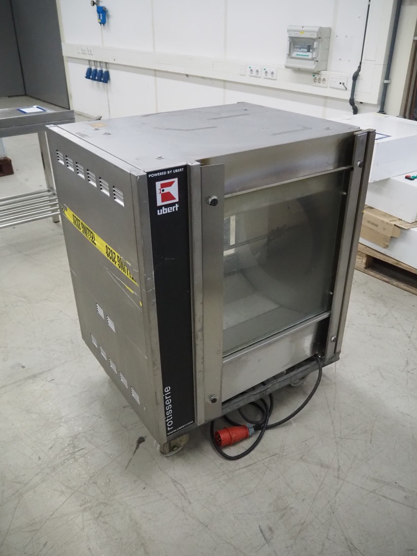 Ubert Gastrotechnik GmbH rotissery grill, type: RT403AHR, serial number: 406-1120-1437, year of construction: 2021, 400 V, 3 Ph, 50/60 Hz, 9 A, 5 kW, dimensions: 800 mm x 730 mm x 850 mm. Without rollie.