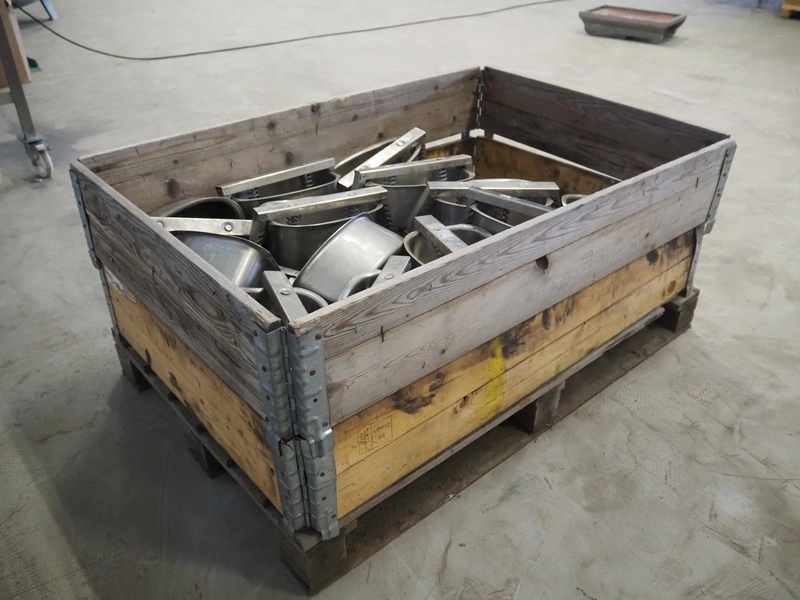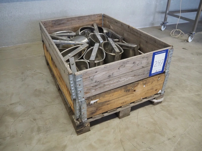 28 s/s ham moulds, inside dimensions: 245 mm x 160 mm x 110 mm, total dimensions: 1200 mm x 800 mm x 460 mm.
