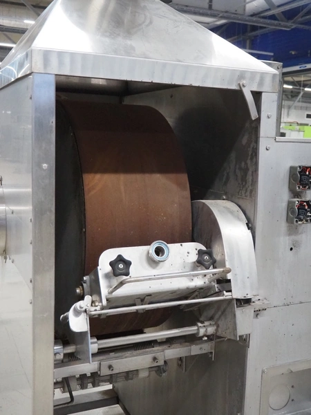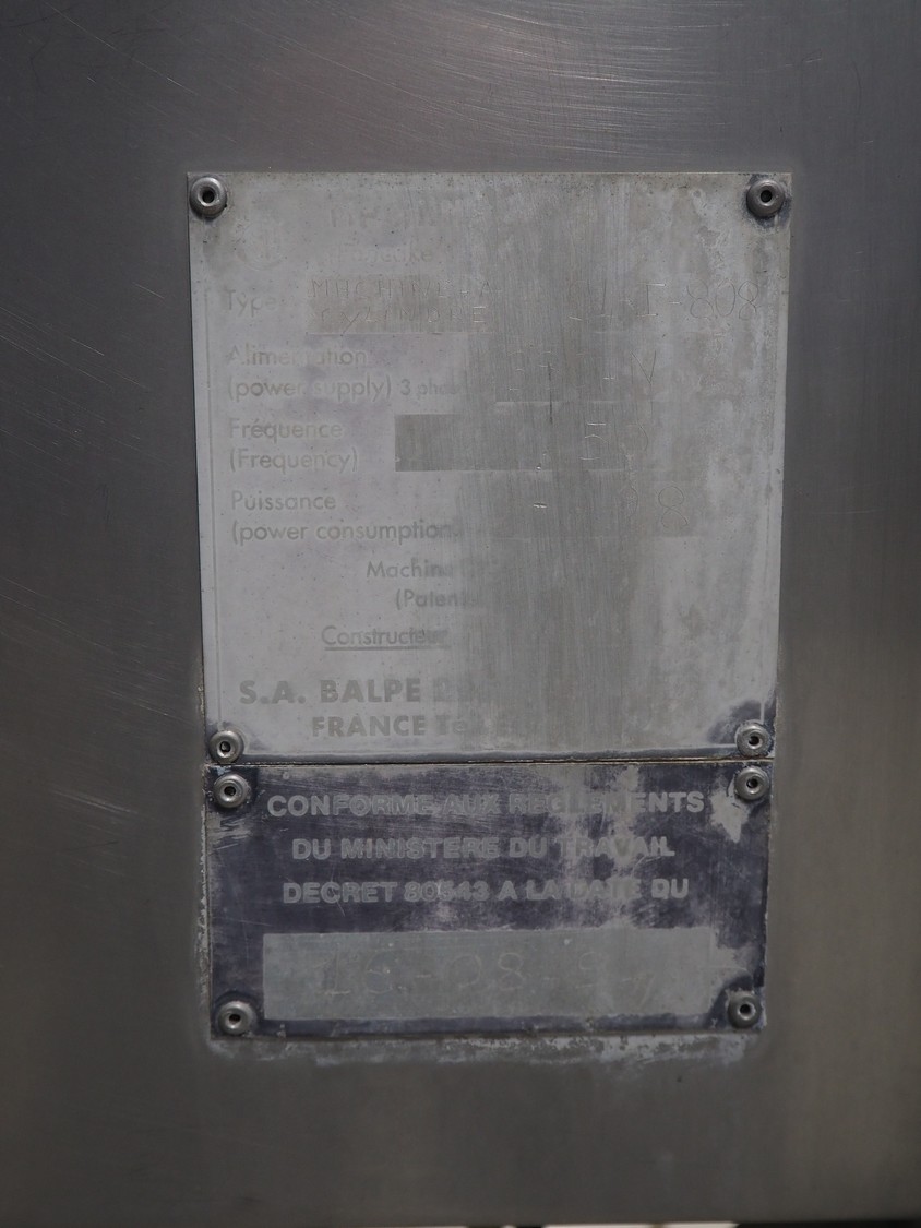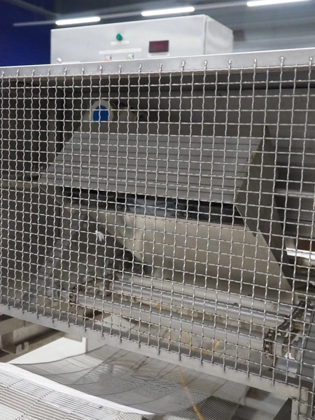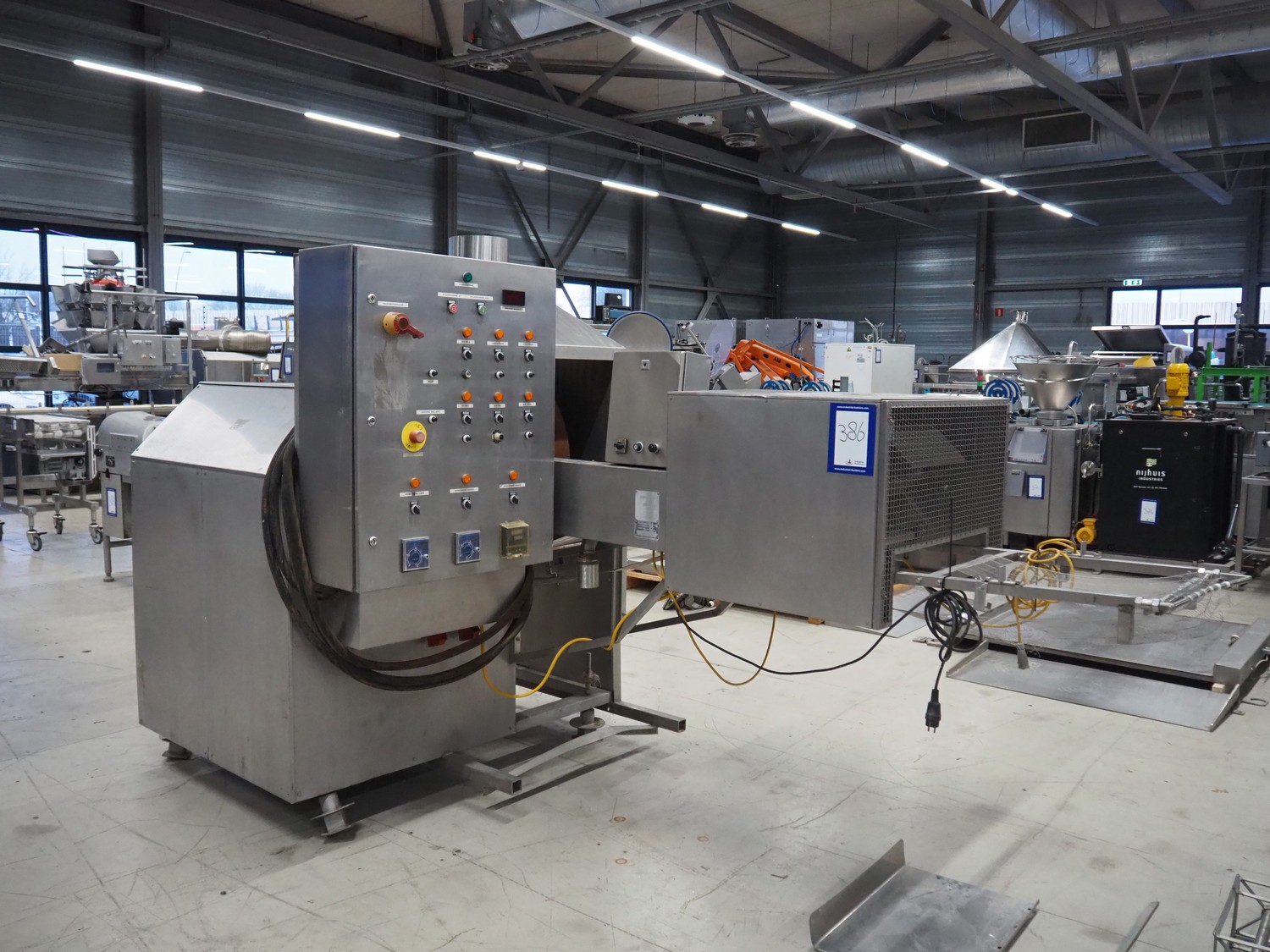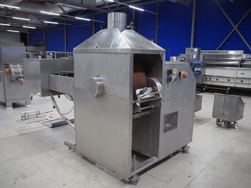 S.A. Balpe blintz machine, s/s mesh belt, belt width: 300 mm, diameter roller: 800 mm, total dimensions: 3500 mm x 1800 mm x 2300 mm. With additional parts.
