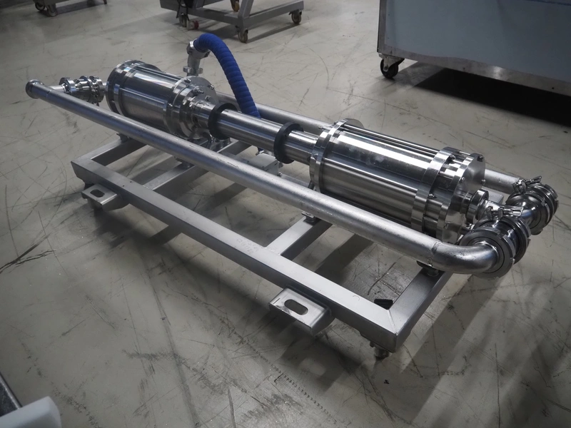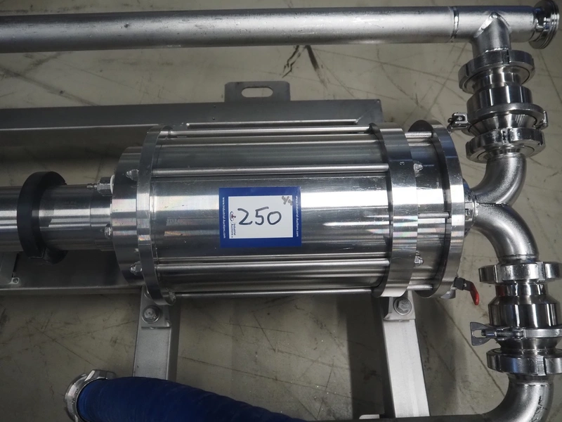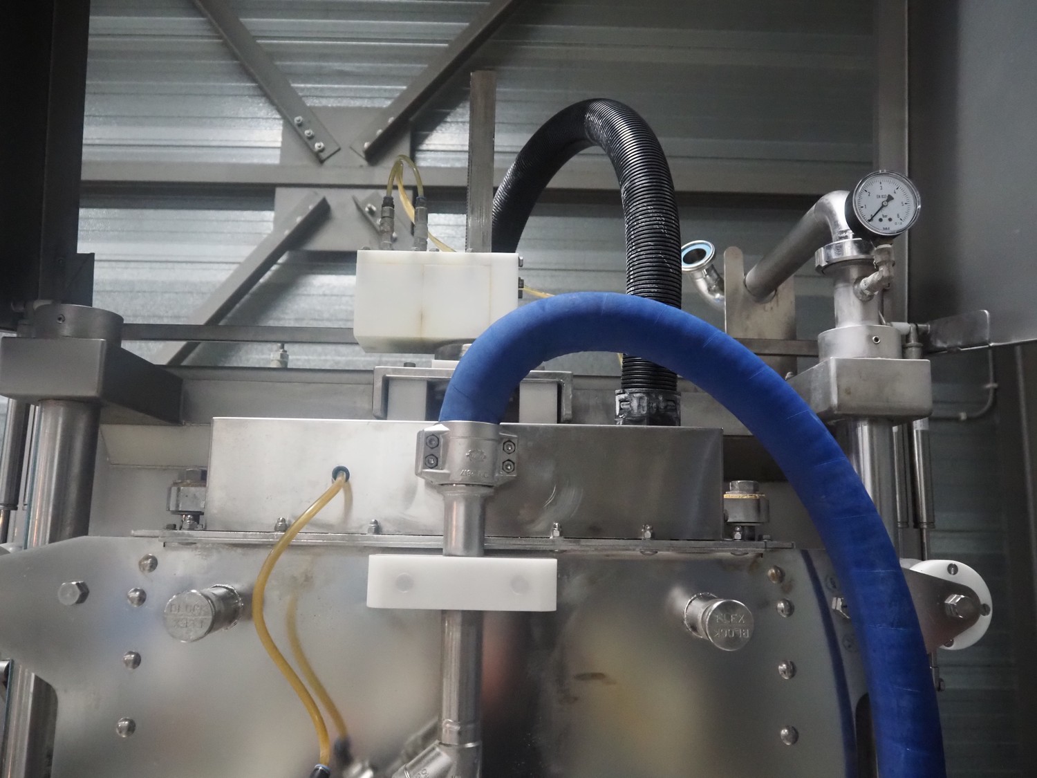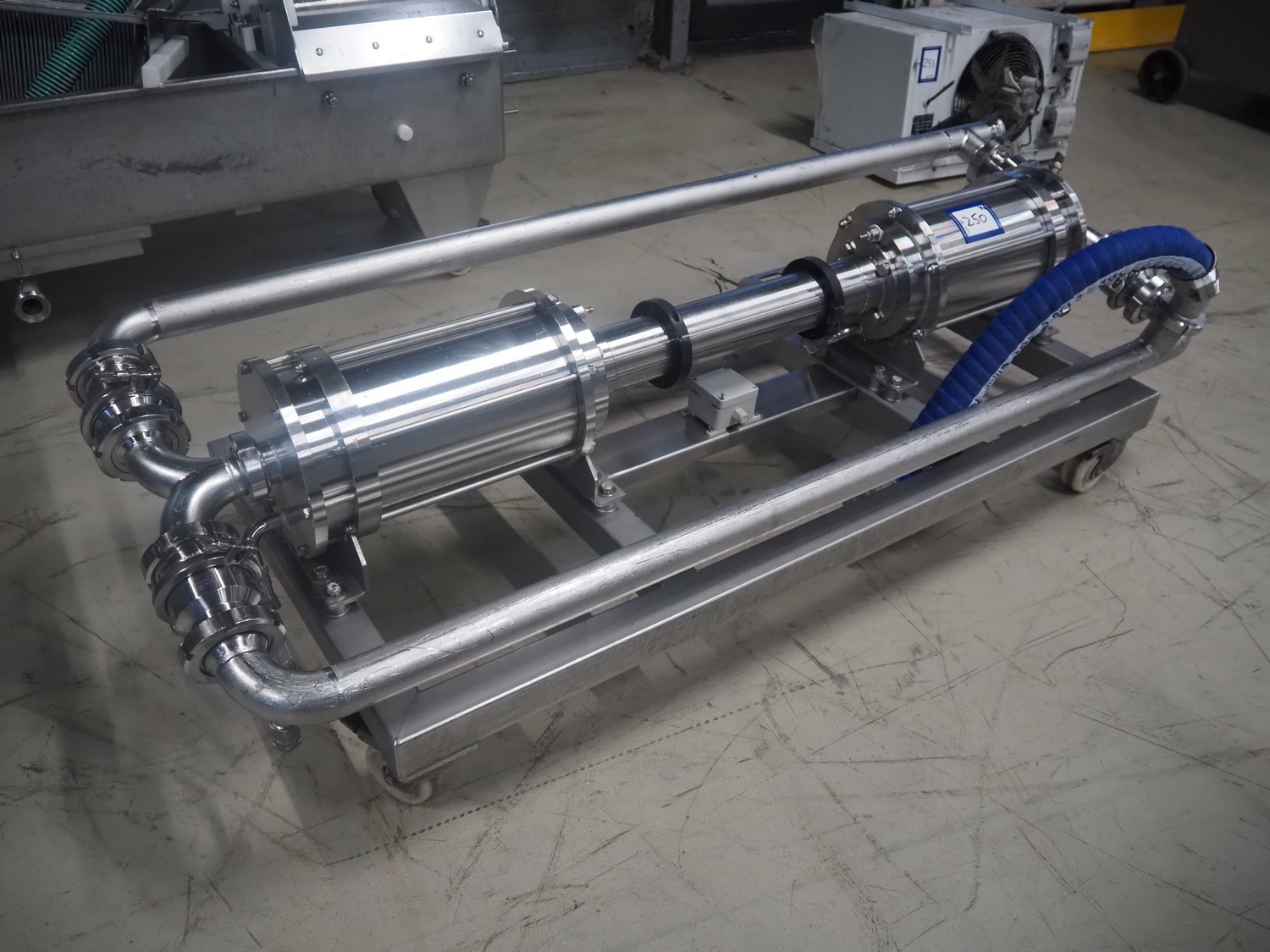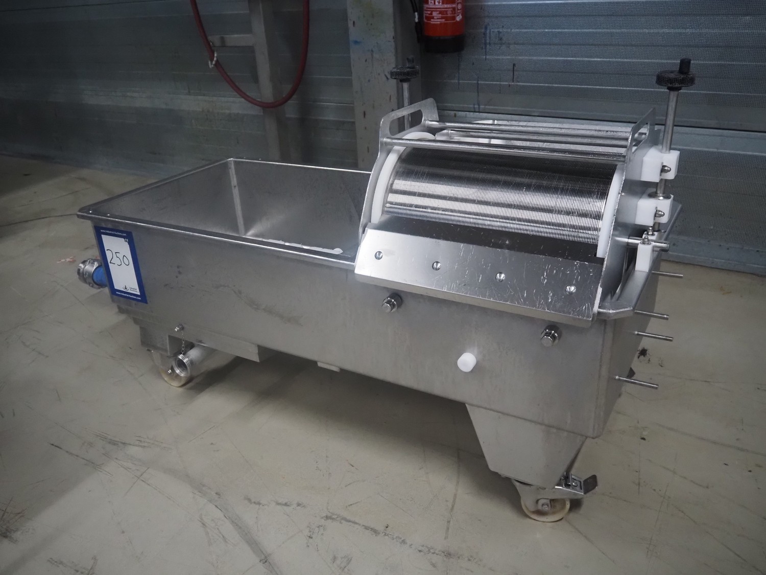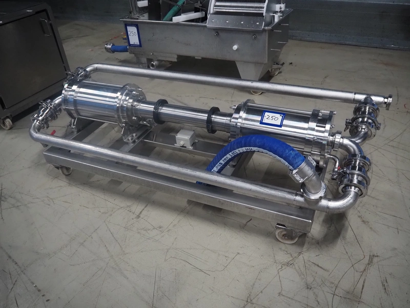 Günther Maschinenbau GmbH injector with filter tub and pump, type: PI81-184 MC2R, machine number: 32 775, year of construction: 2011, 400 V, 63 A, 17.5 kW, plastic mesh belt, belt width: 450 mm, total dimensions: 2320 mm x 1300 mm x 2500 mm, dimensions filter tub: 1900 mm x 600 mm x 900 mm, dimensions pump: 1850 mm x 780 mm x 500 mm, dimensions filter system: 1100 mm x 740 mm x 760 mm.