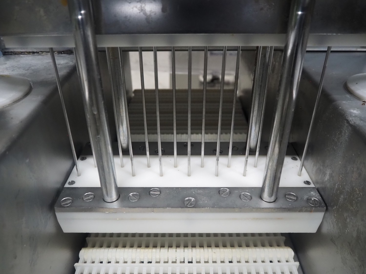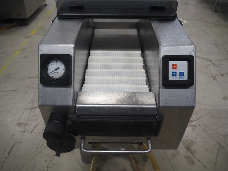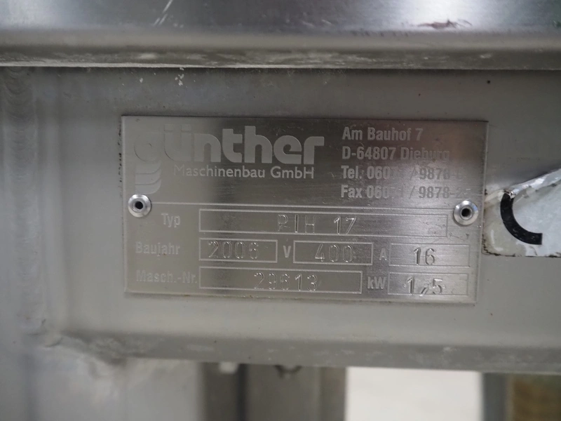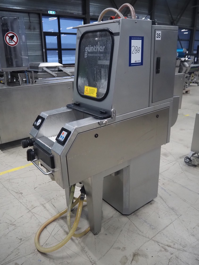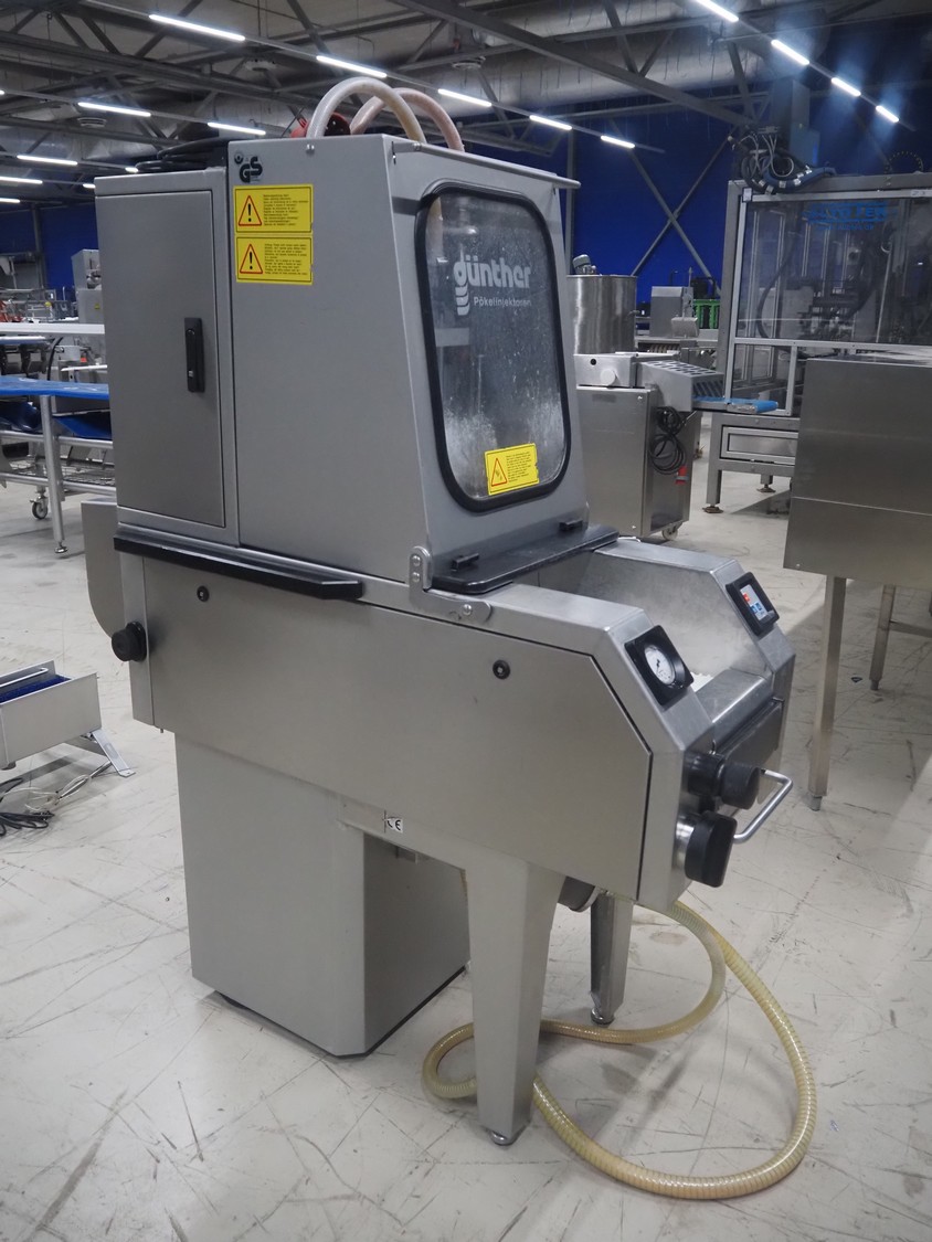 Günther Maschinenbau GmbH injector, type: PIH 17, machine number: 29613, year of construction: 2006, 400 V, 16 A, 1.5 kW, 17 needles, plastic mesh belt, belt width: 240 mm, clearance: 260 mm x 180 mm, total dimensions: 1380 mm x 550 mm x 1650 mm.