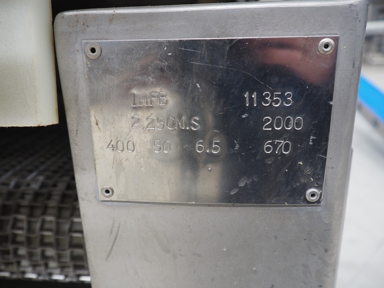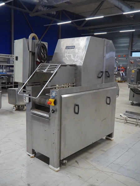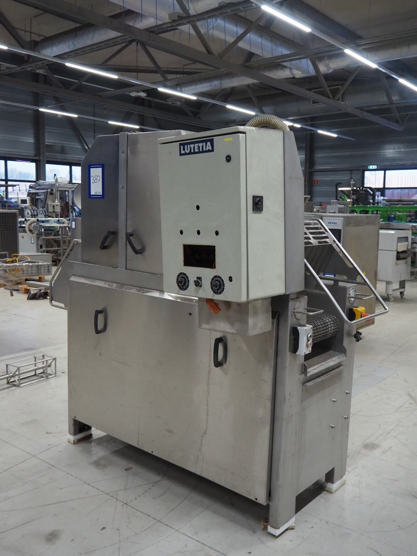 Lutetia injector, model: IMPB, number: 11353, year of construction: 2000 ,400 V, 50 Hz, 6.5 A, 670 kg, s/s mesh belt, belt width: 370 mm, total dimensions: 2400 mm x 700 mm x 1900 mm. Incomplete.