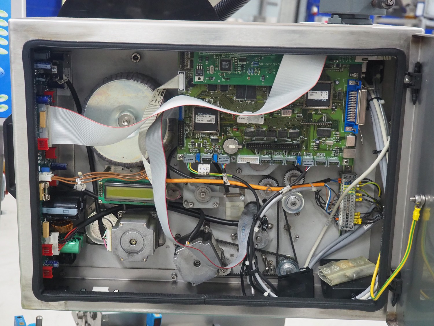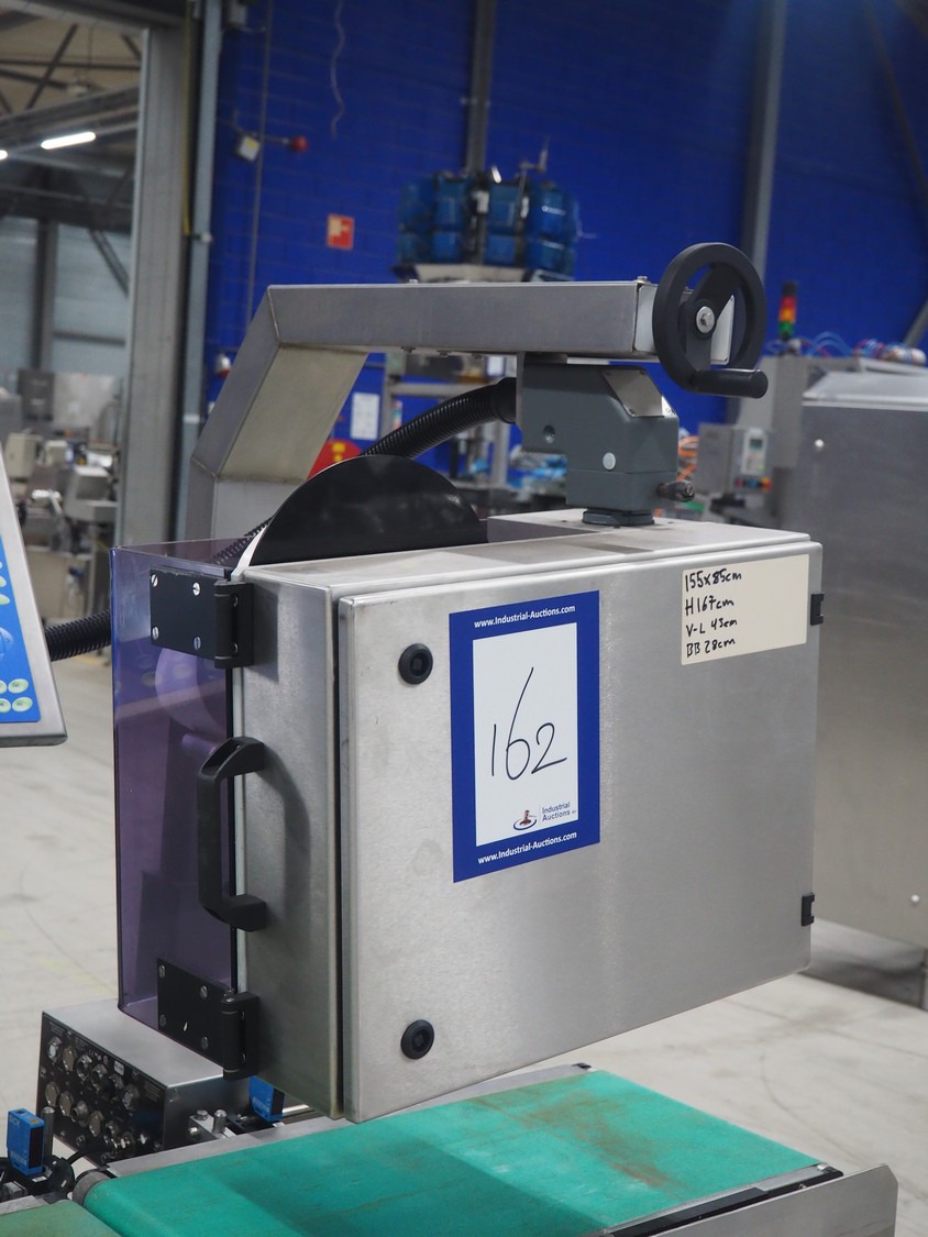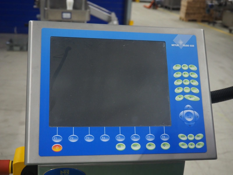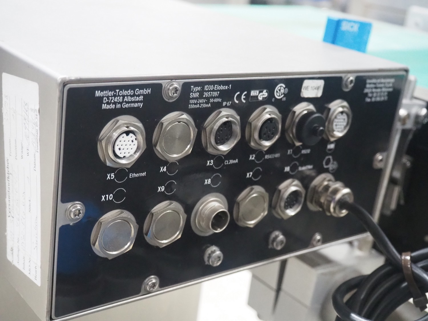 Mettler-Toledo Garvens GmbH weighing and labelling machine with top labeller, type: PAS 3012, serial number: 170403, year of construction: 2005, 115 V, 50/60 Hz, maximum weight: 7500 gram, plastic belt, belt width: 280 mm, 290 mm and 300 mm, total dimensions: 1560 mm x 850 mm x 1660 mm.