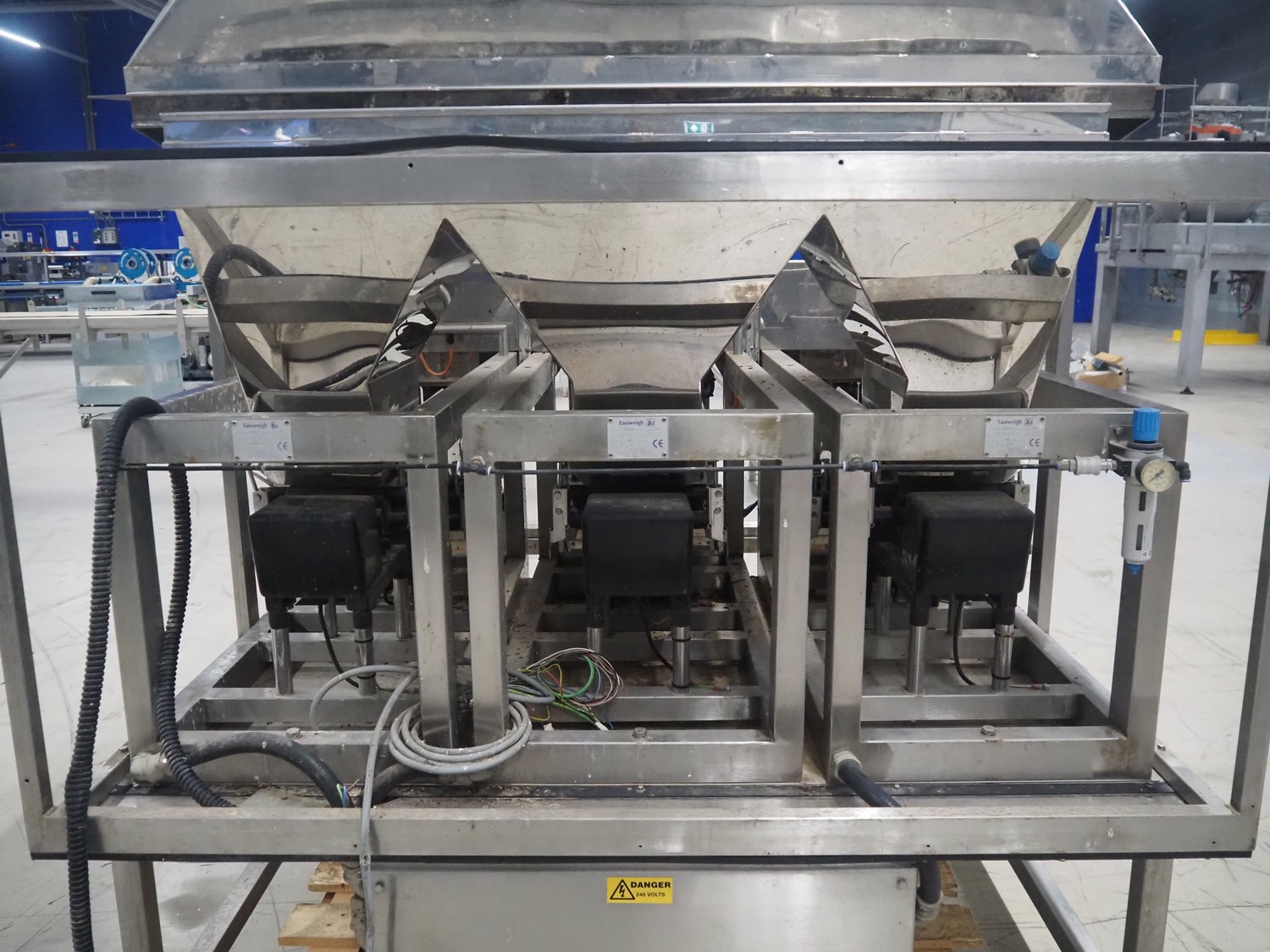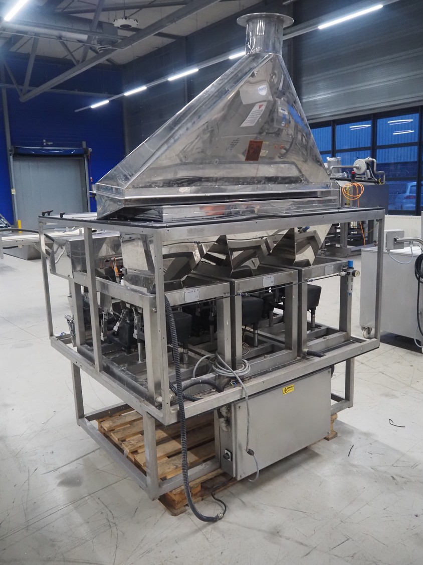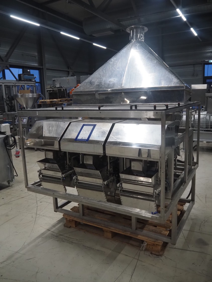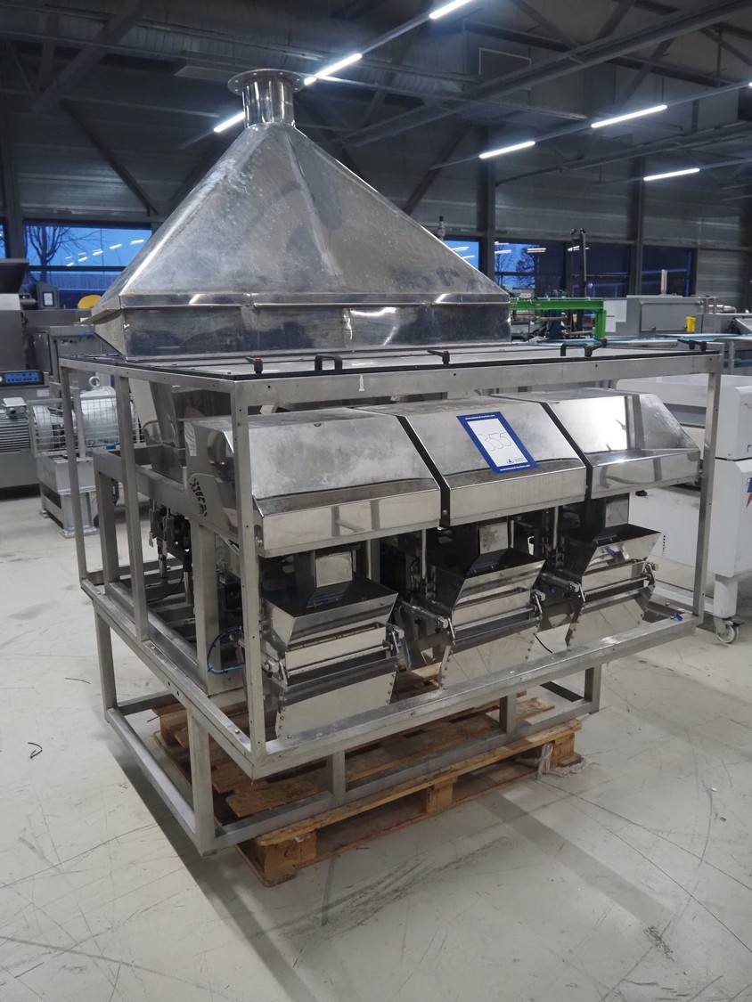 Easiweigh linear weigher, 3 lanes, type: Maxi, serial number: 080105/080106/080107, year of construction: 2008, 3 s/s vibrating gutters, total dimensions: 1500 mm x 1500 mm x 2100 mm.