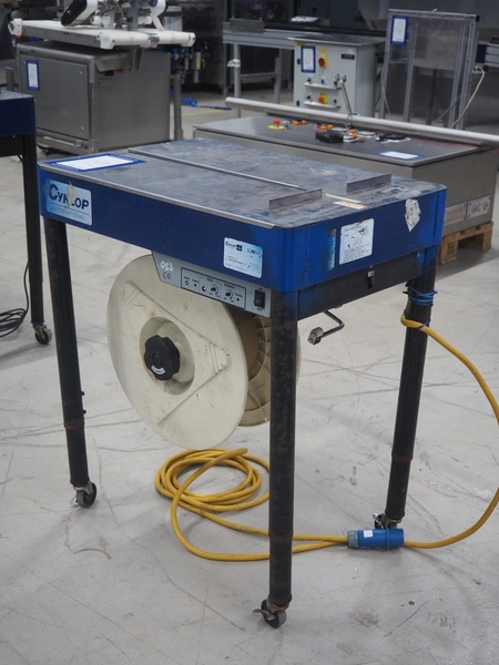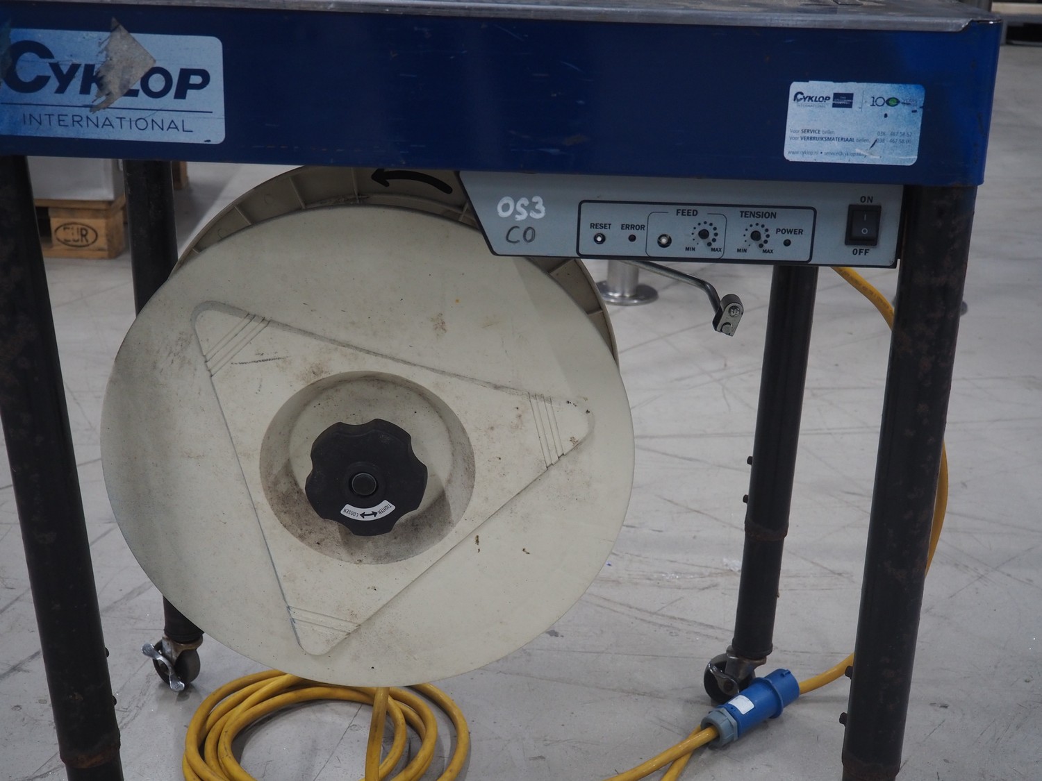 Cyklop mobile semi automatic strapping machine, model: M-PAC IV, machine number: 5007931 / 705, 230 V, 1 Ph, 50/60 Hz, 0.25 kVa, dimensions: 780 mm x 540 mm x 900 mm.