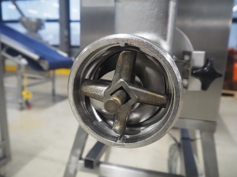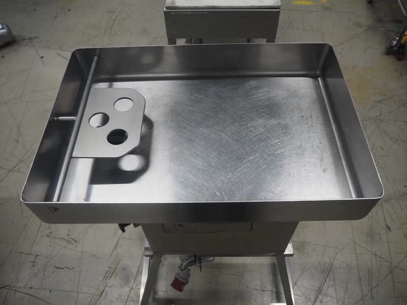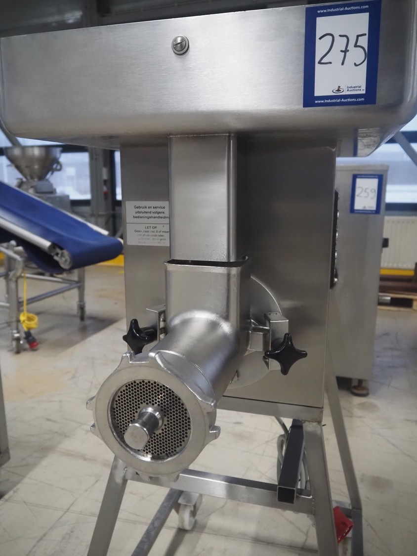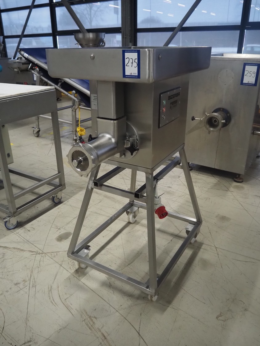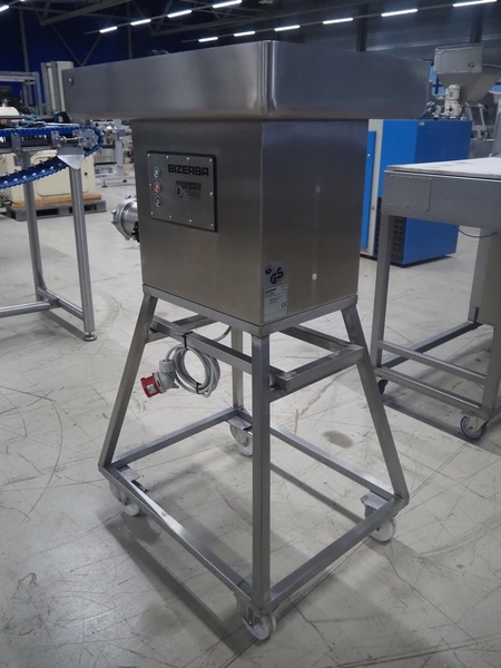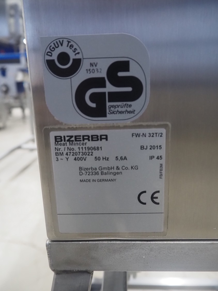 Bizerba mobile grinder, model: FW-N 32T/2, number: 11190681, year of construction: 2015, 400 V, 3 Ph, 50 Hz, 5.6 A, plate diameter: 100 mm, total dimensions: 1050 mm x 600 mm x 1330 mm.