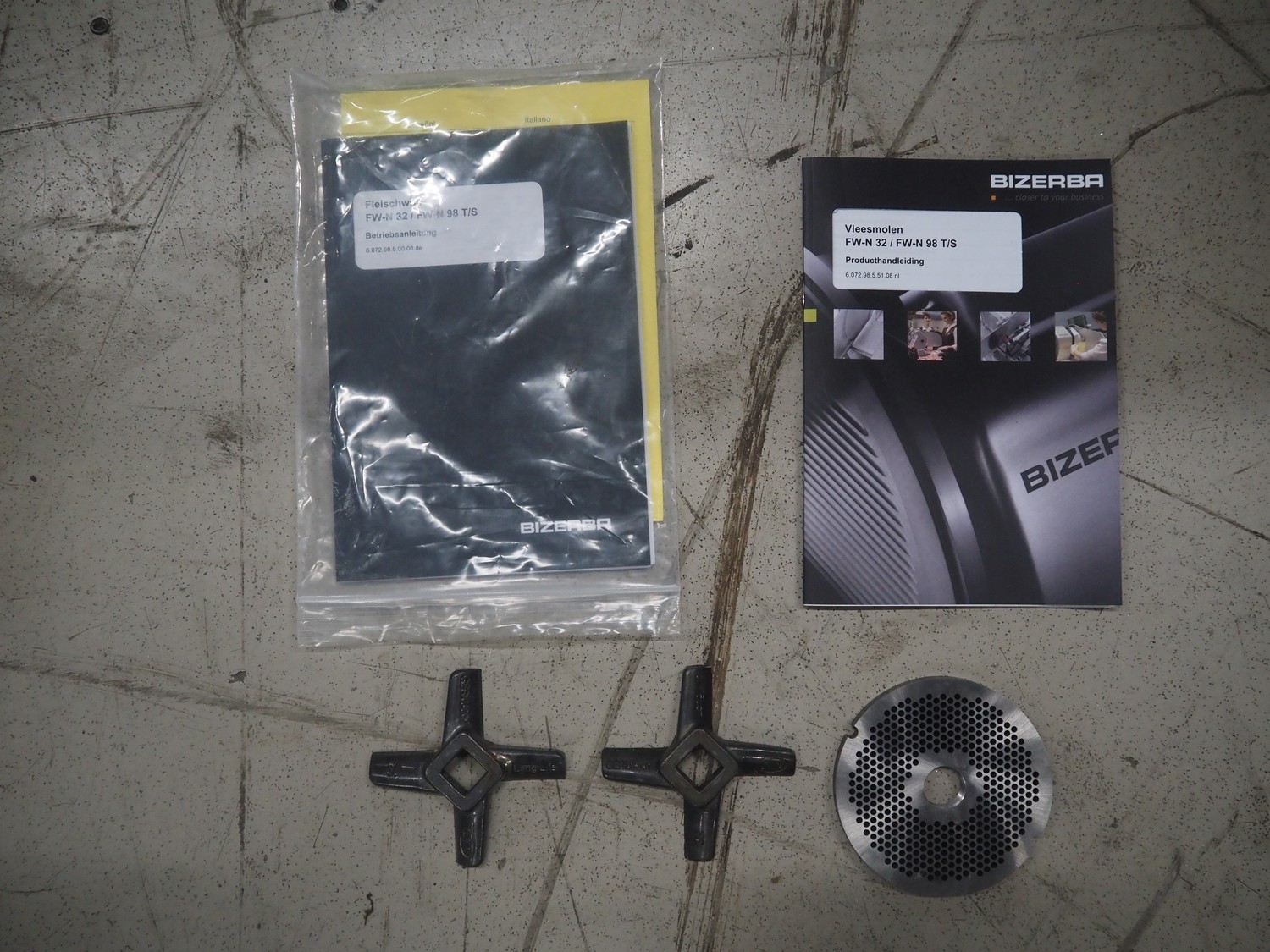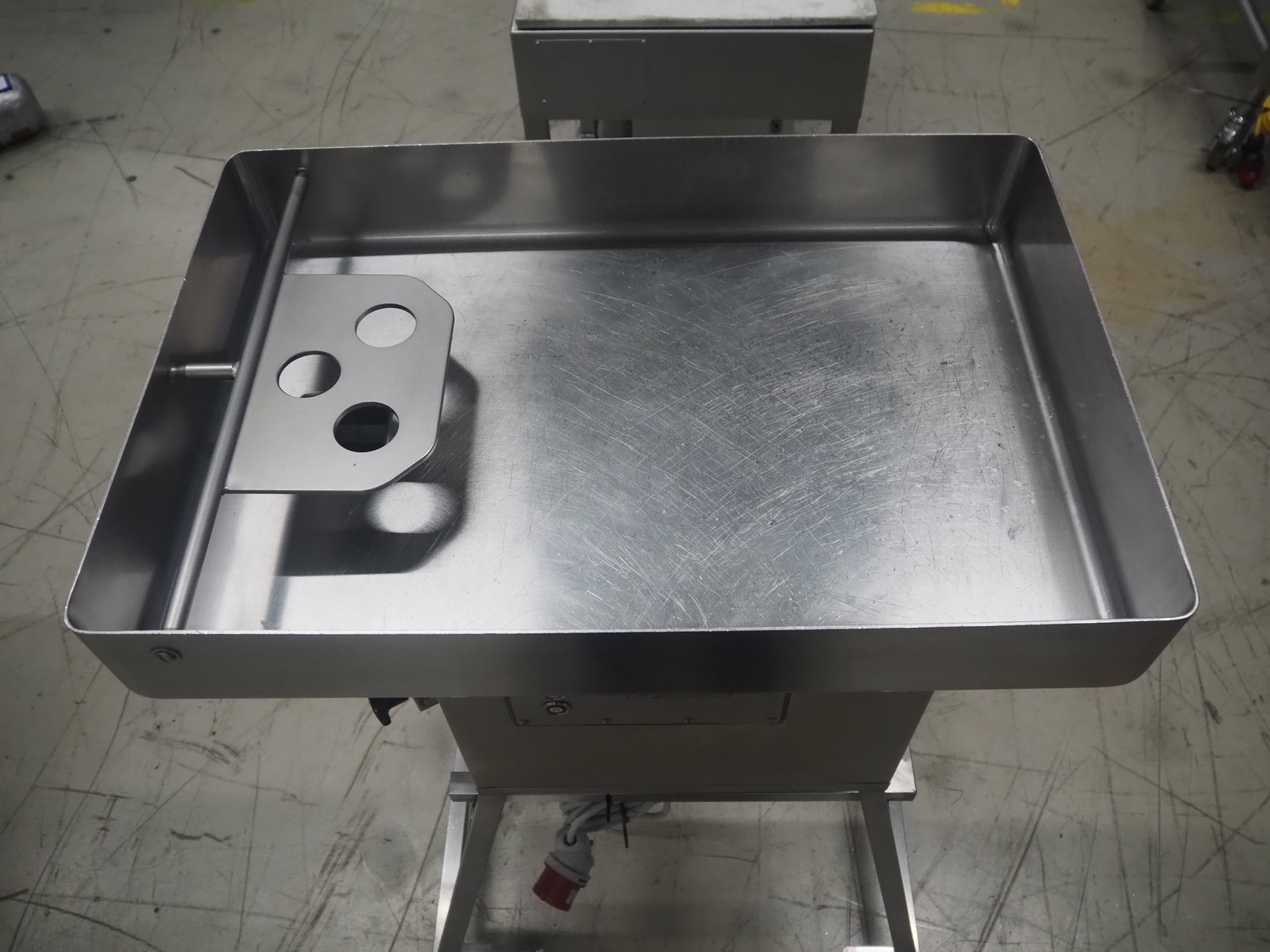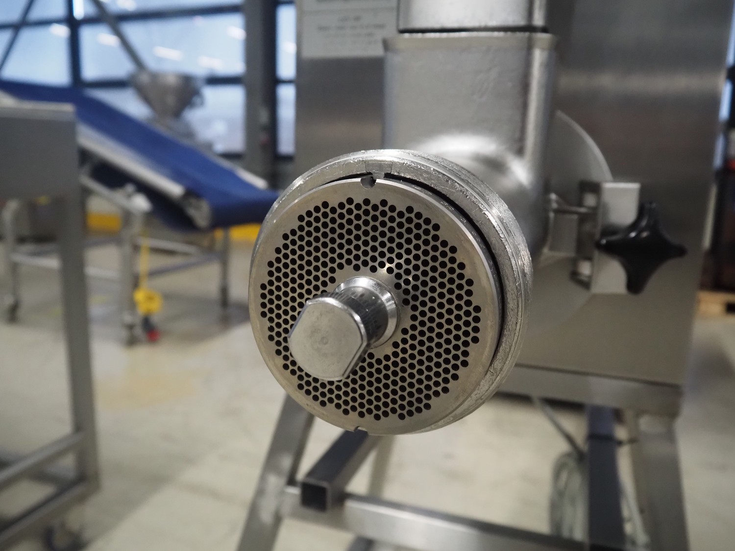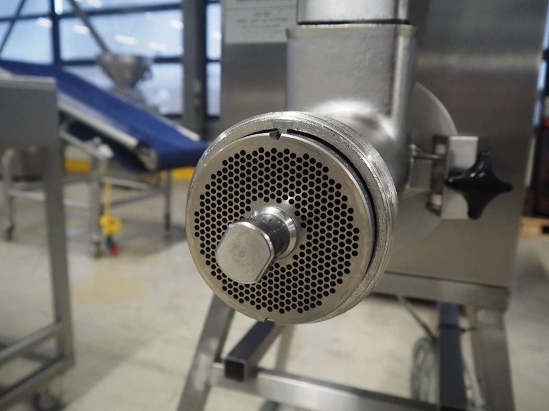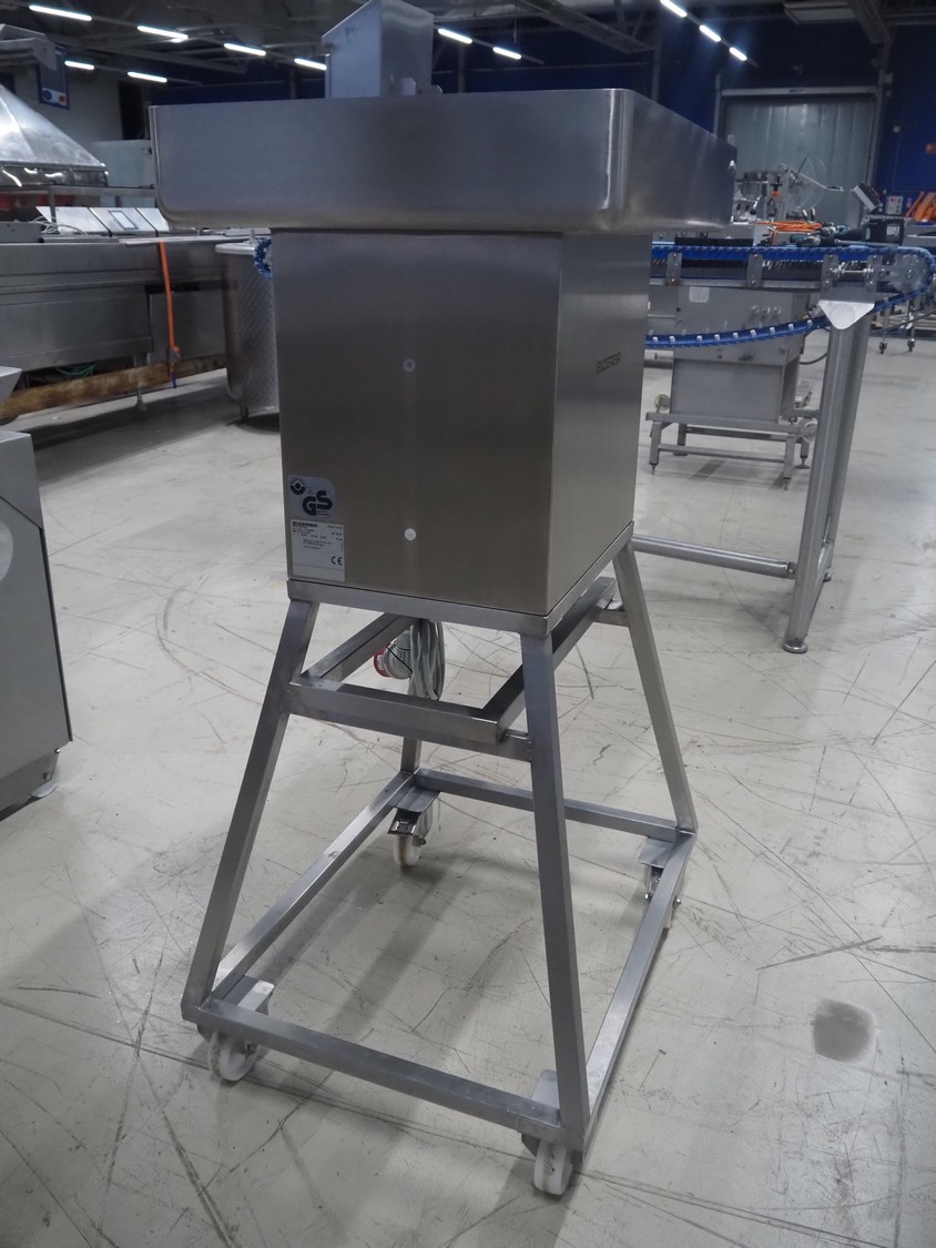 Bizerba mobile grinder, model: FW-N 32T/2, number: 11190681, year of construction: 2015, 400 V, 3 Ph, 50 Hz, 5.6 A, plate diameter: 100 mm, total dimensions: 1050 mm x 600 mm x 1330 mm.