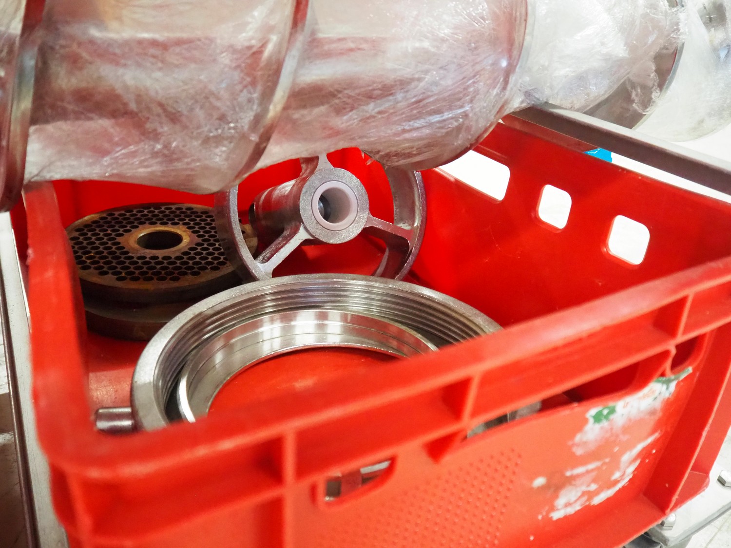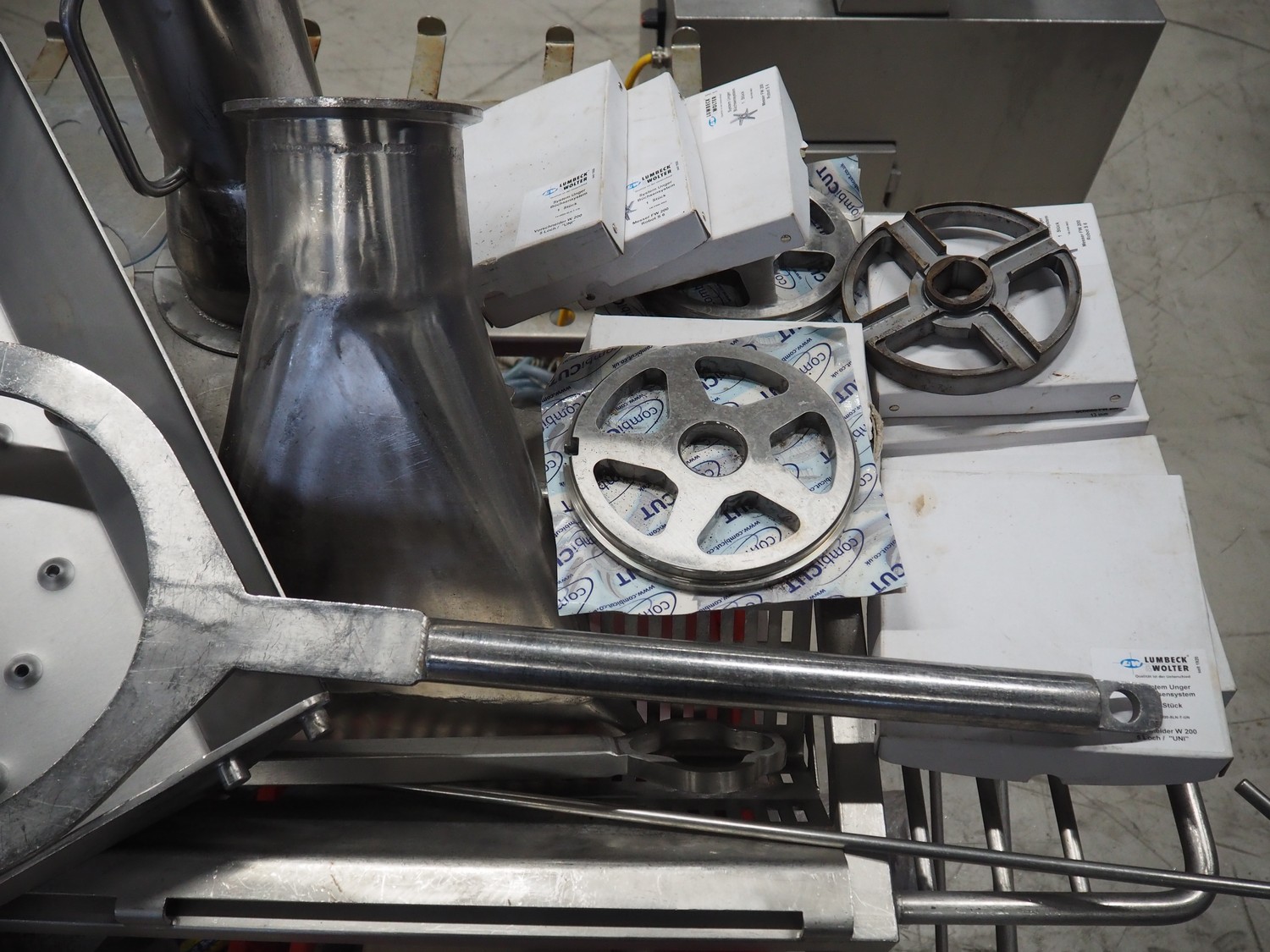PSS Svidnik a.s. grinder, type: SG 200, serial number: 04, year of construction: 2013, 30.5 kW, weight: 1600 kg, plate diameter: 200 mm, total dimensions: 2700 mm x 1300 mm x 2350 mm. Including s/s trolley with parts, dimensions: 1250 mm x 1000 mm x 1050 mm.