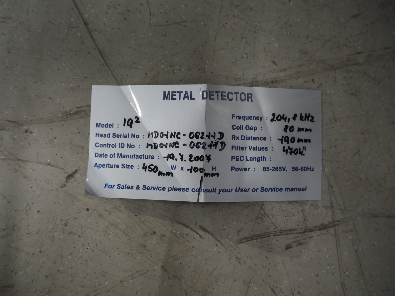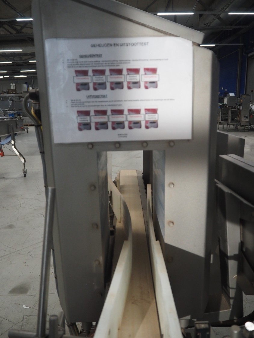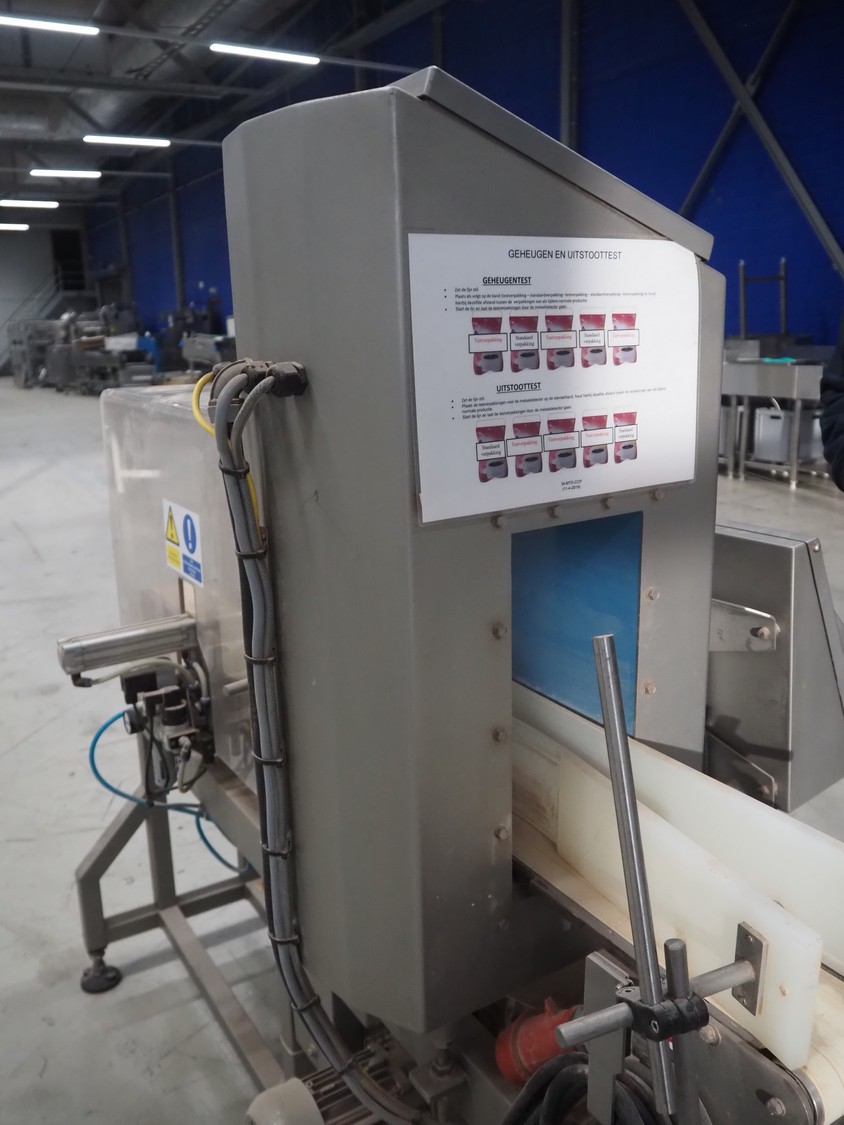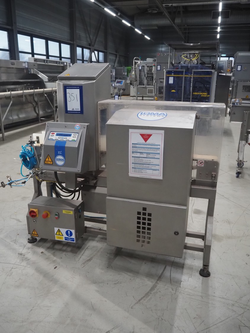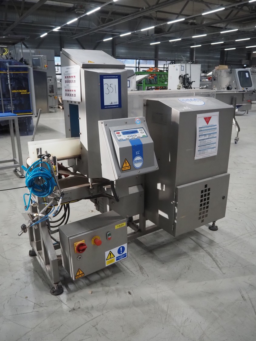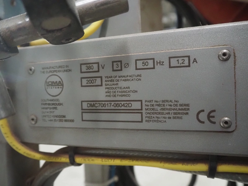 Loma systems metal detector with rejector, model: IQ3, serial number: DMC70617-06042D, year of construction: 2007, 380 V, 3 Ph, 50 Hz, 1.2 A, plastic belt, belt width: 100 mm, clearance: 315 mm x 150 mm, total dimensions: 1530 mm x 770 mm x 1470 mm.
