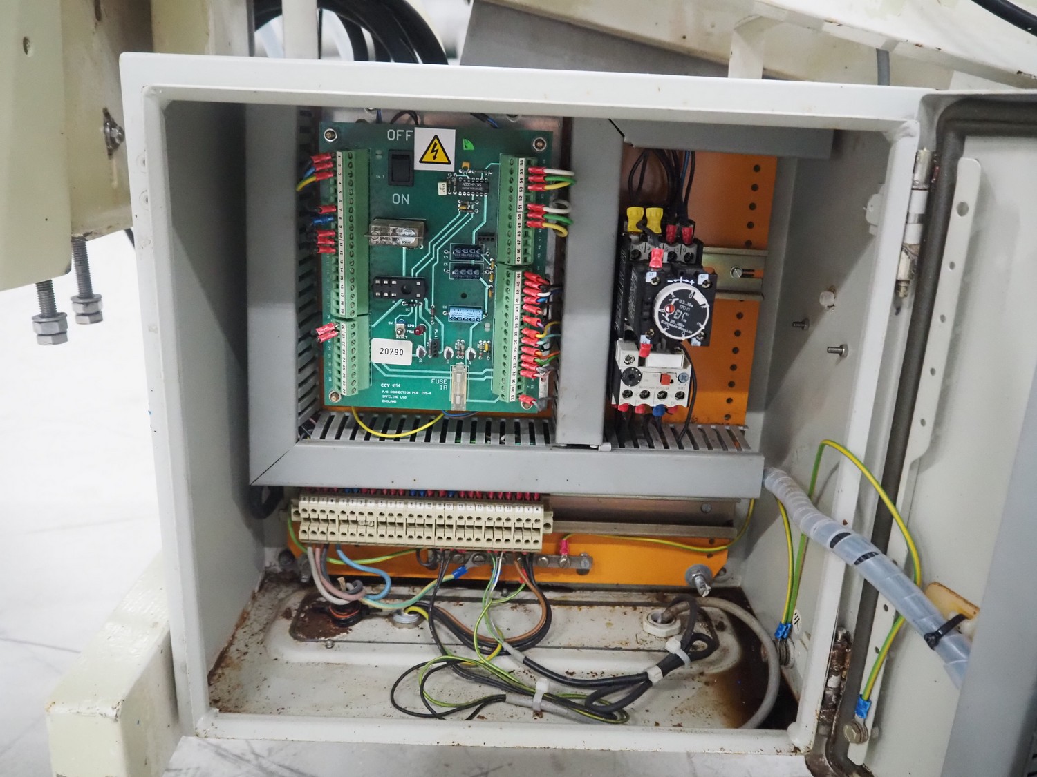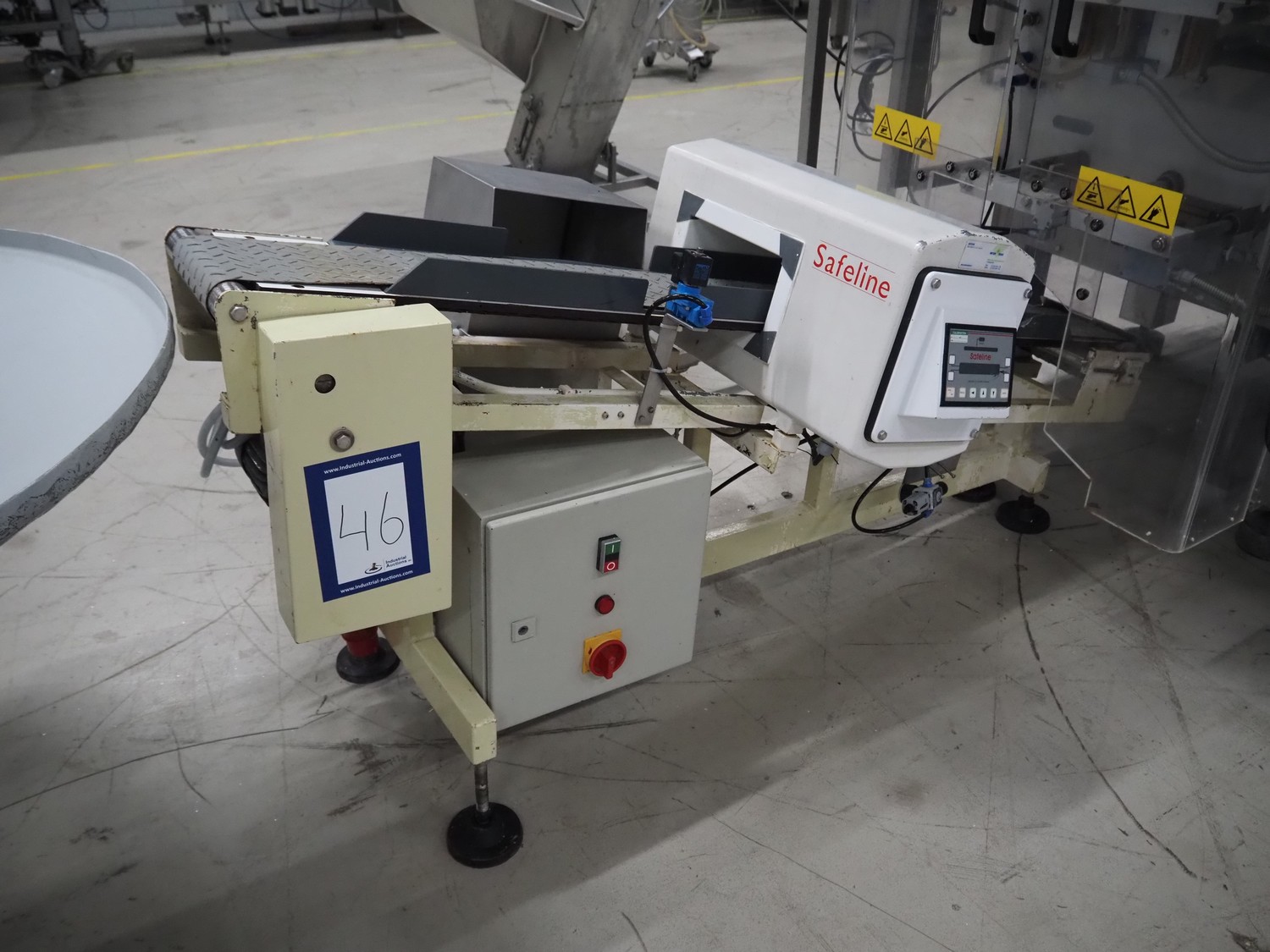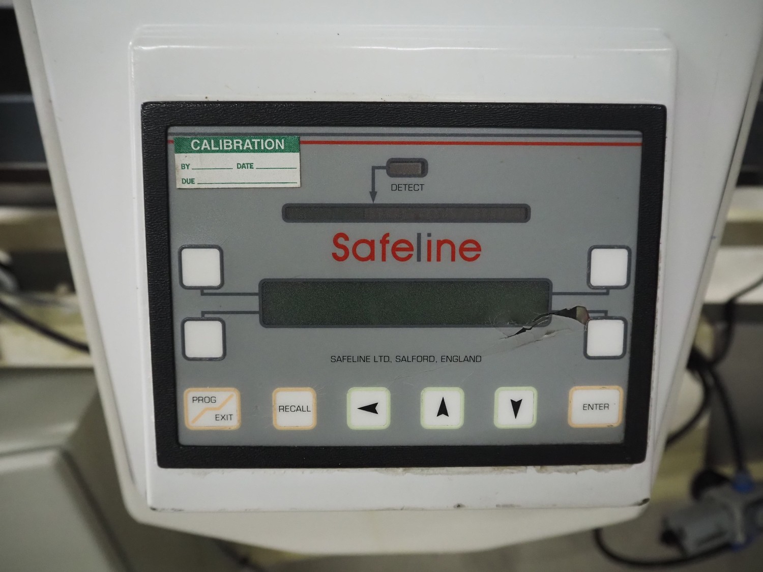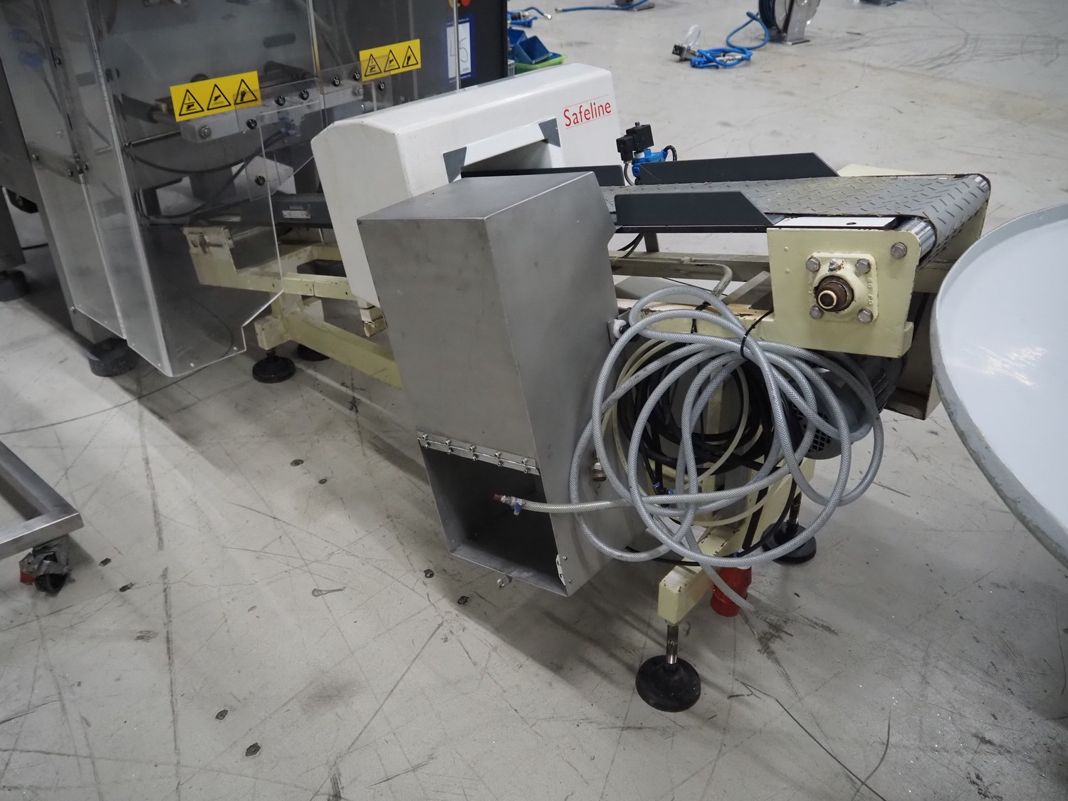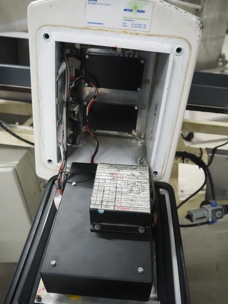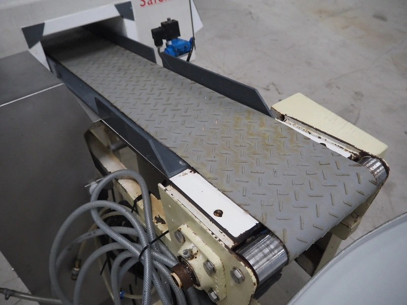 Safeline elevating metal detector, plastic belt, belt width: 195 mm, clearance: 225 mm x 100 mm, total dimensions: 2000 mm x 850 mm x 940 mm.