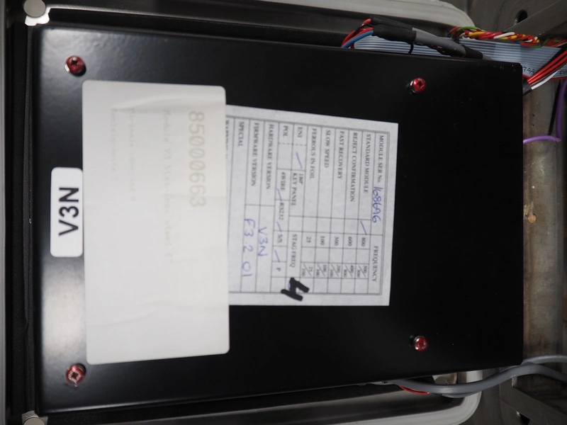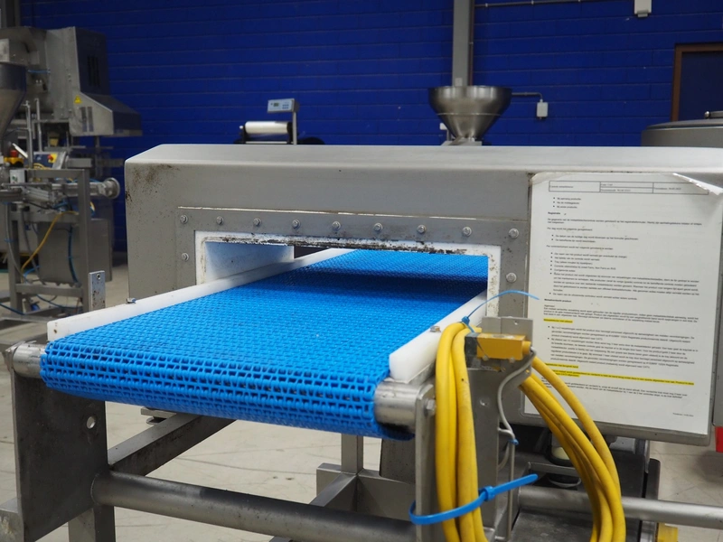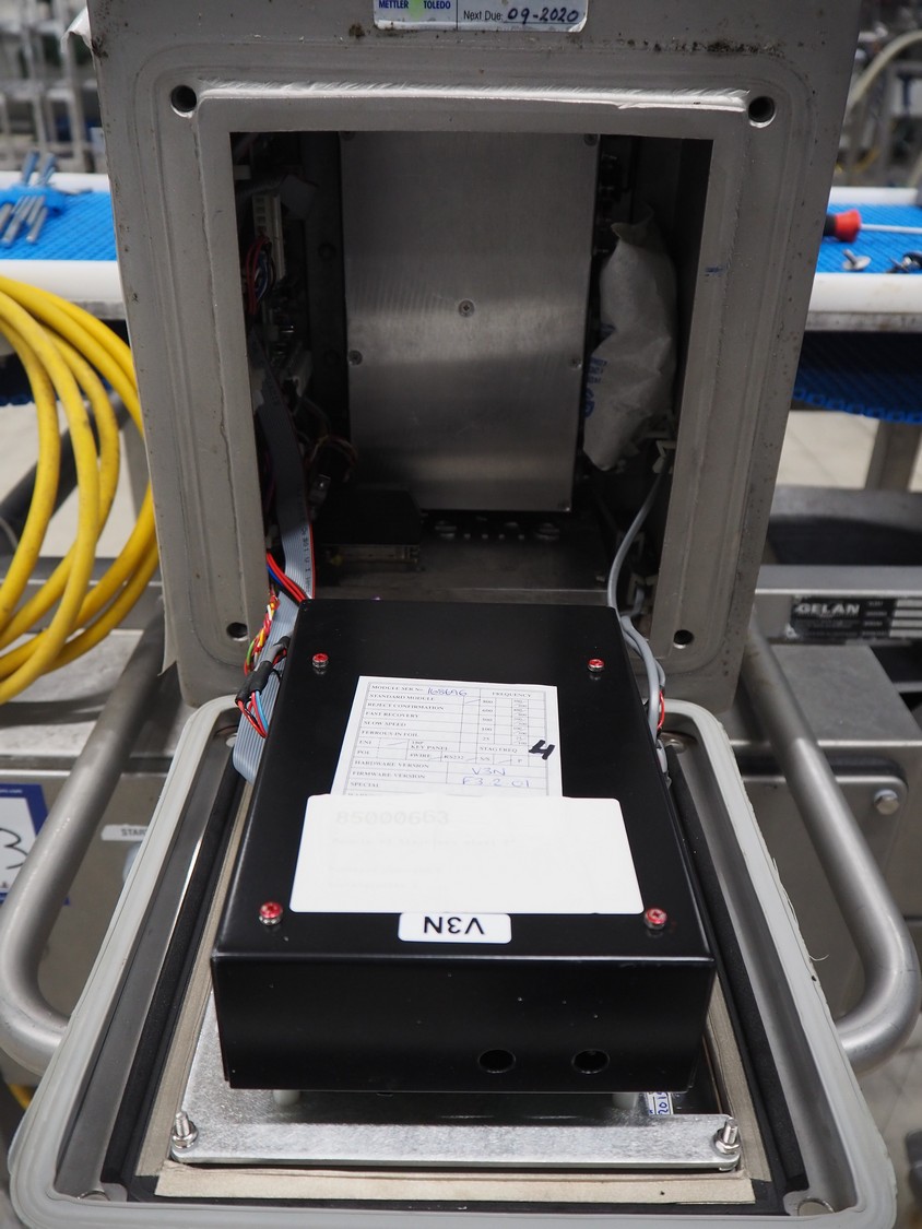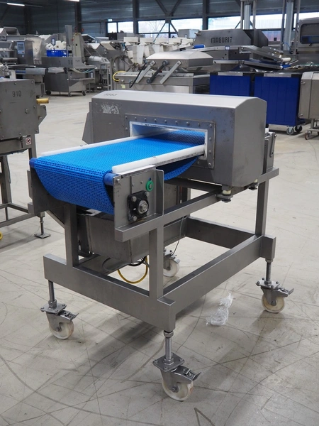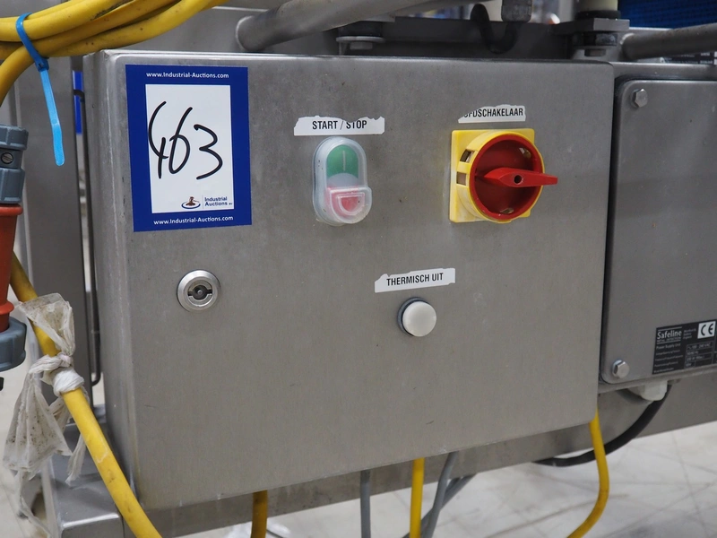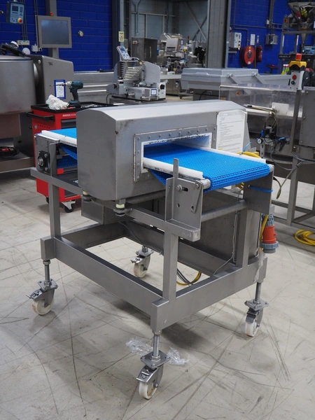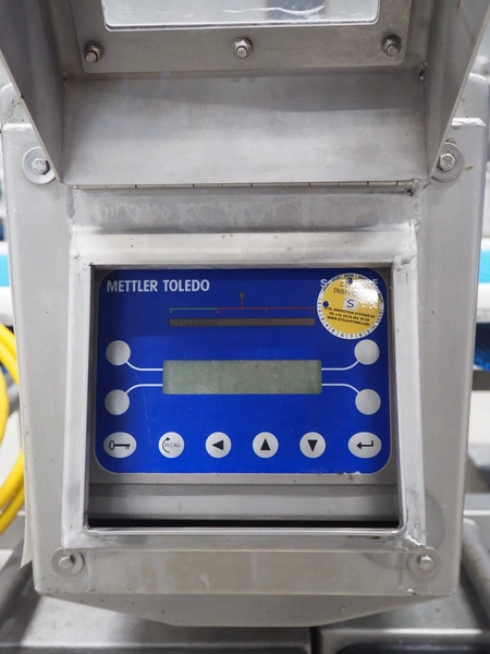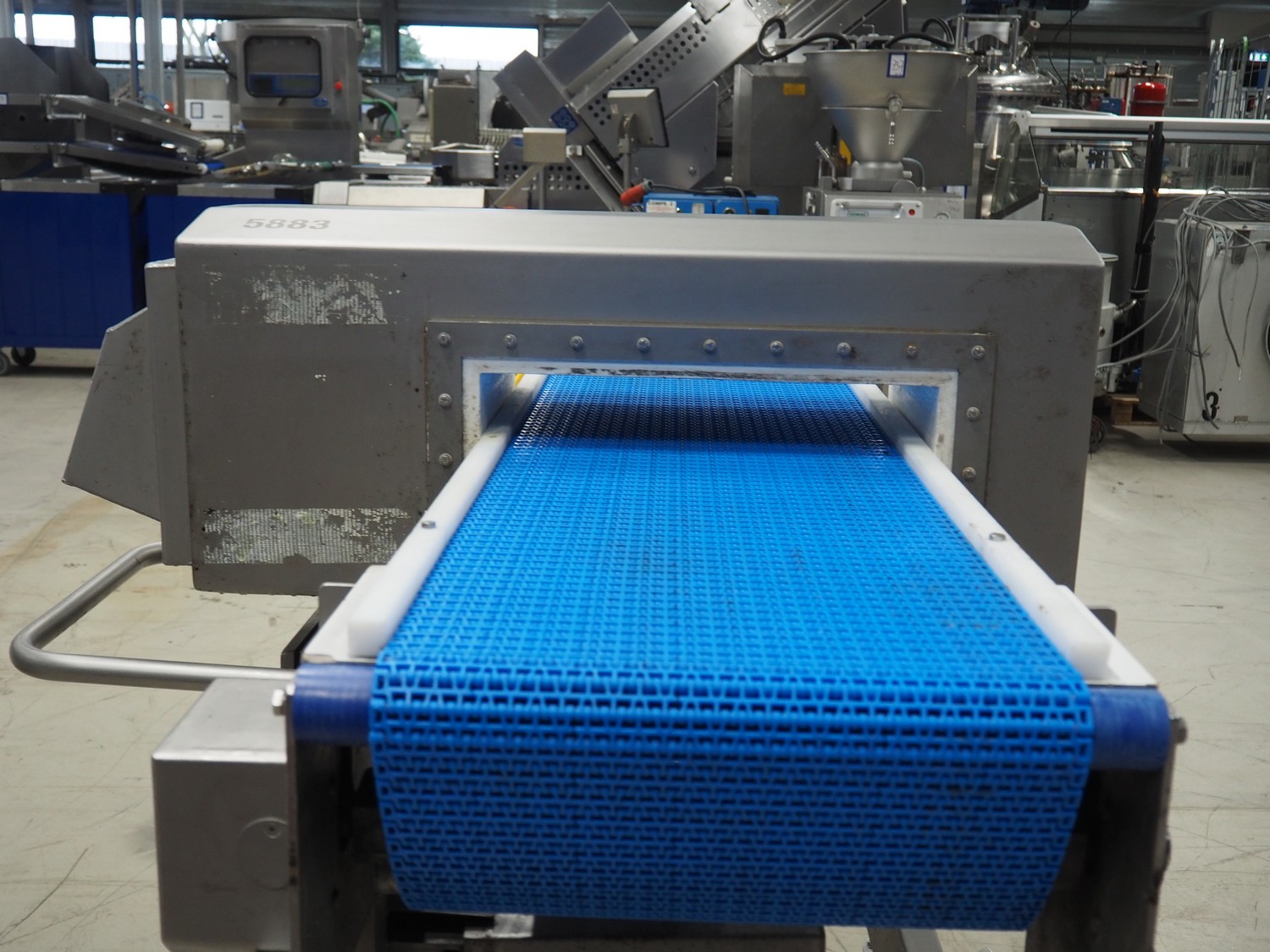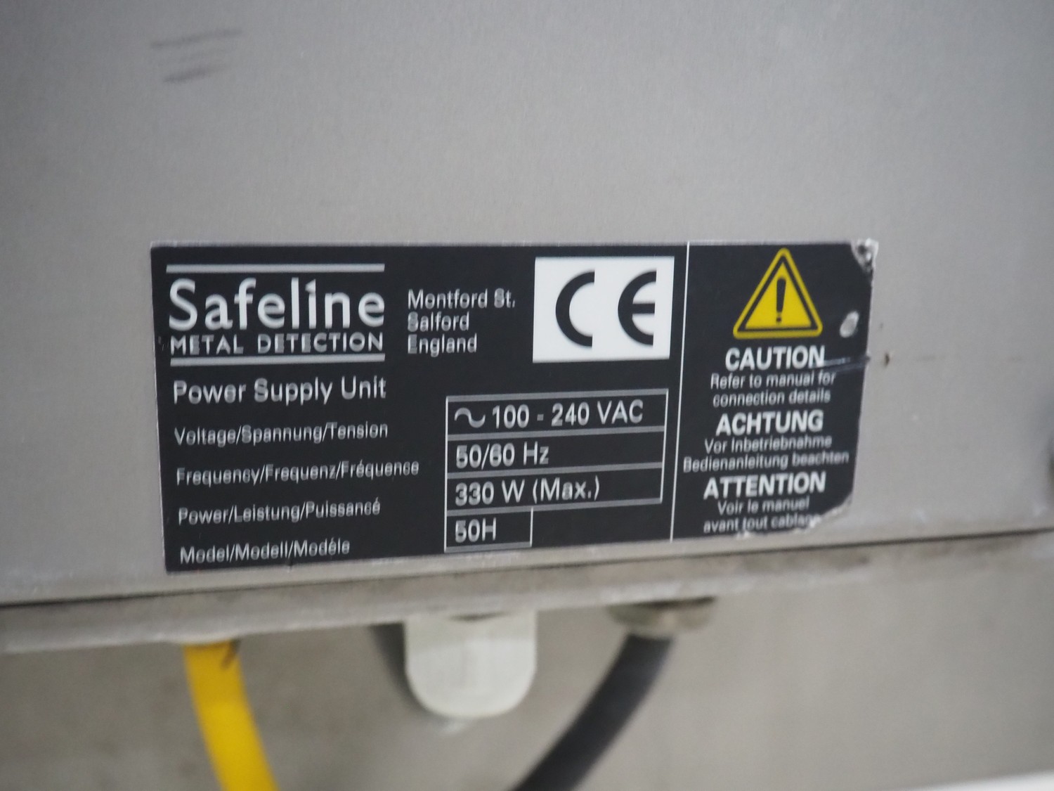 Safeline Mettler Toledo metal detector, plastic mesh belt, belt width: 355 mm, clearance: 400 mm x 70 mm, total dimensions: 1250 mm x 1000 mm x 1200 mm.