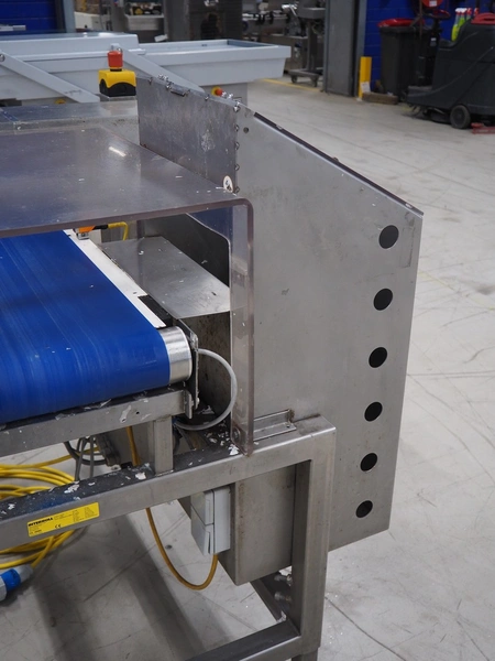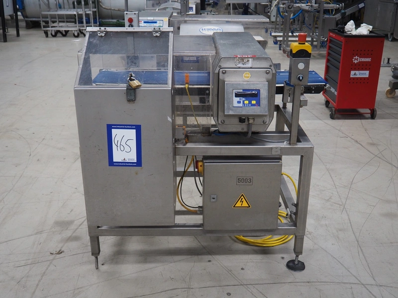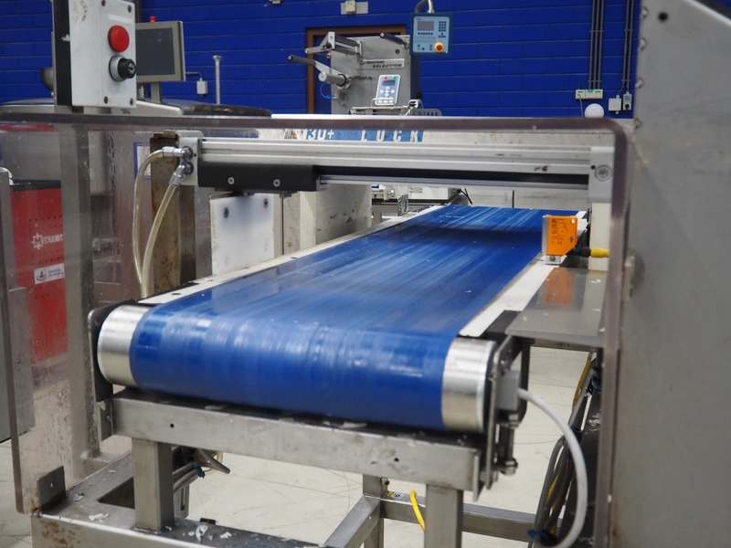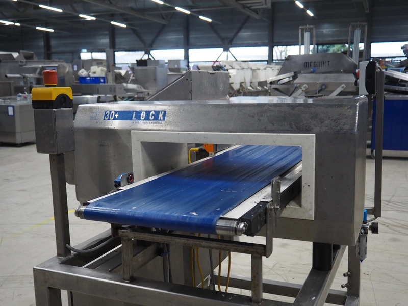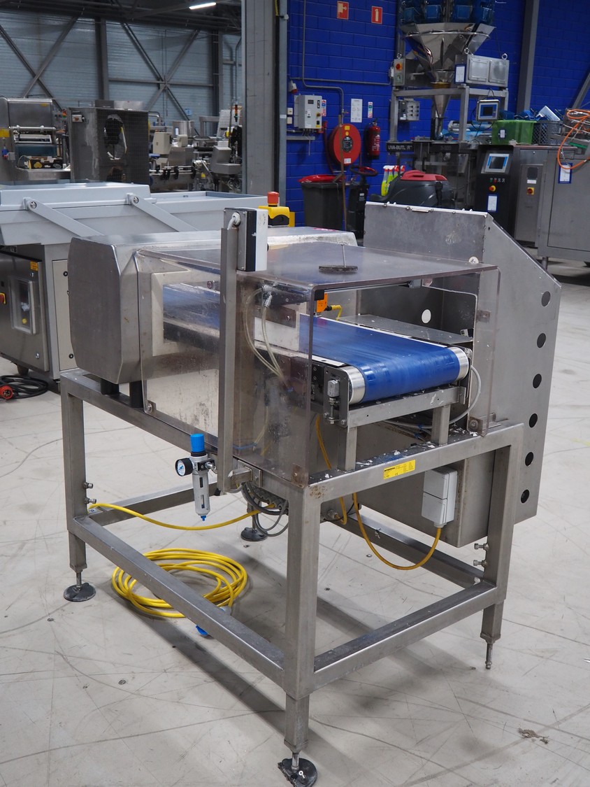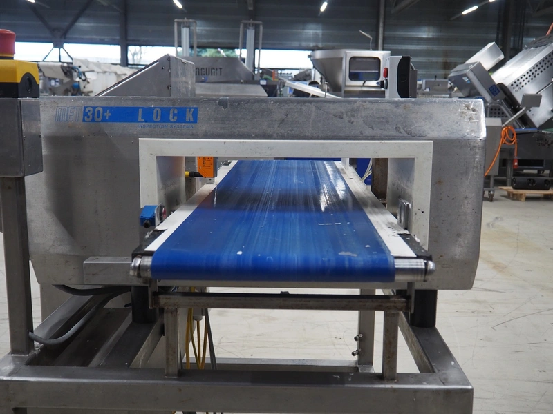 Lock Inspection metal detector with rejector, model: MET30+, plastic belt, belt width: 300 mm, clearance: 450 mm x 100 mm, total dimensions: 1300 mm x 1000 mm x 1300 mm.