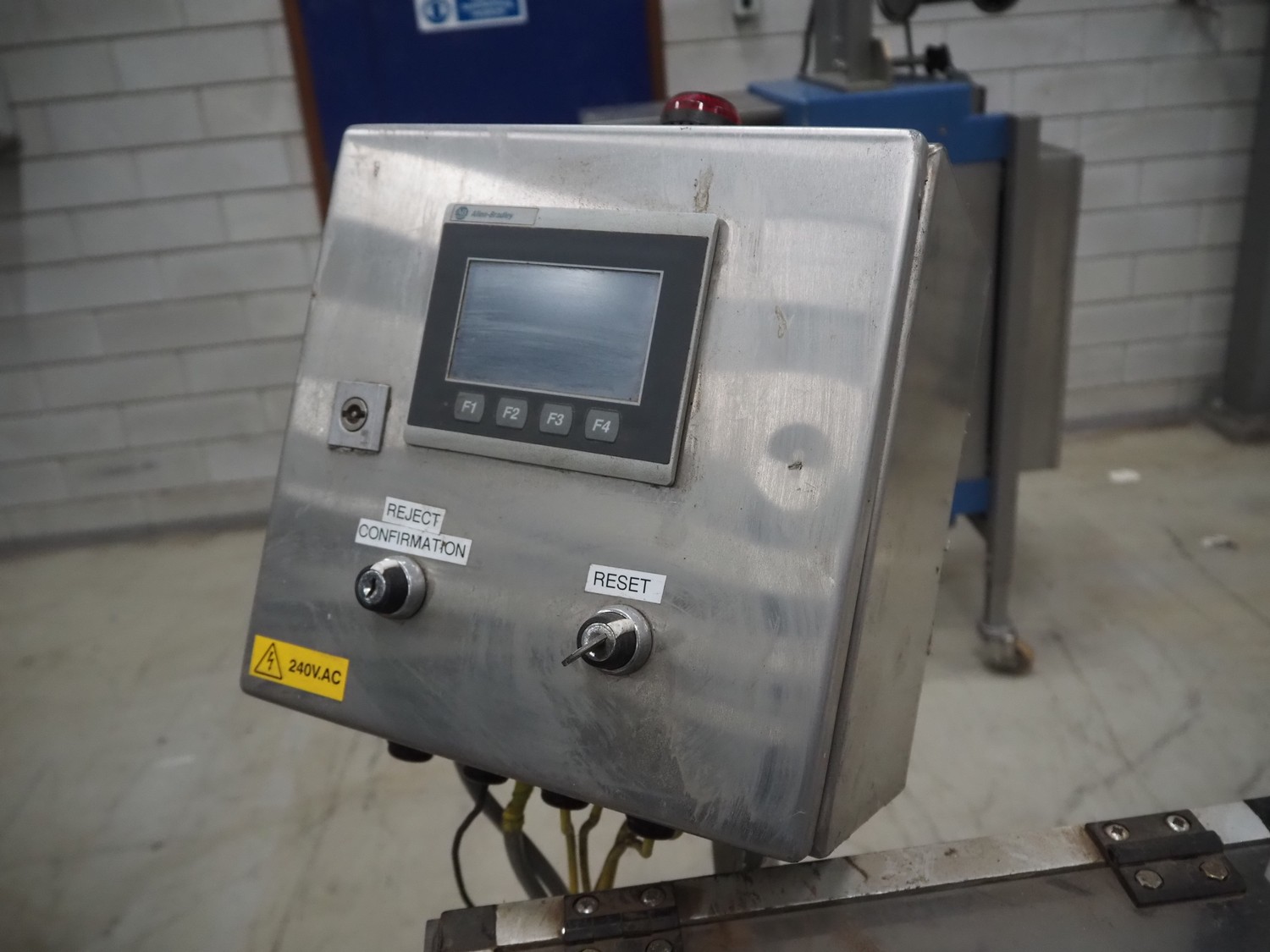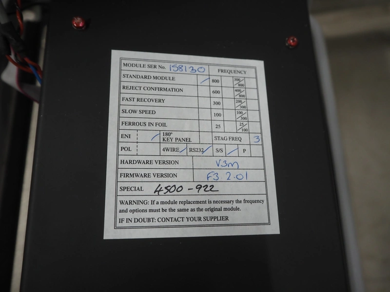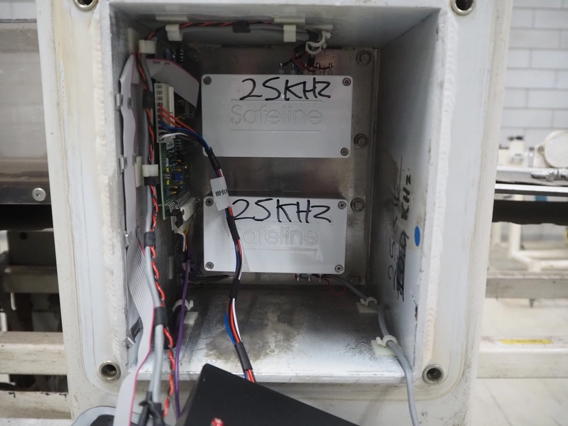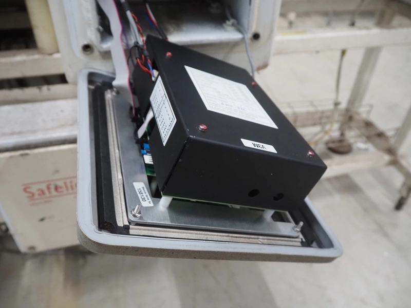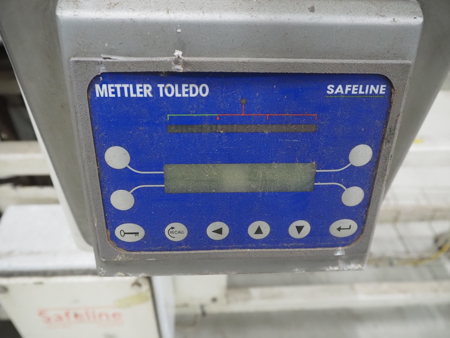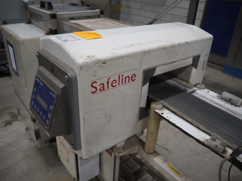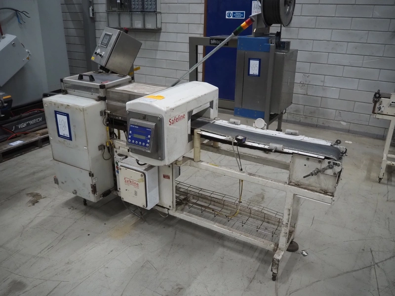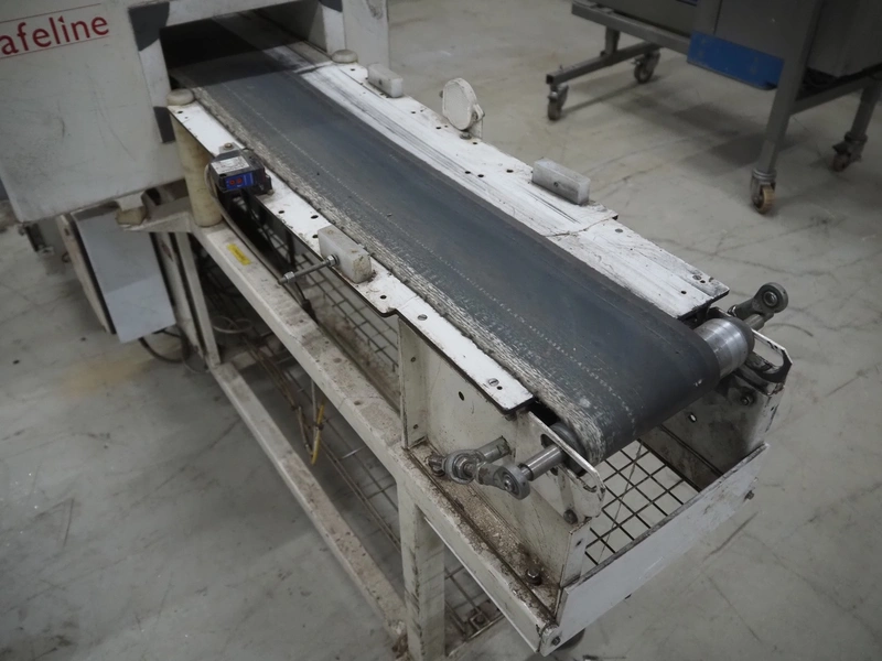 Mettler Toledo Safeline metal detector, plastic belt, belt width: 160 mm, clearance: 250 mm x 85 mm, total dimensions: 2100 mm x 1000 mm x 1450 mm.