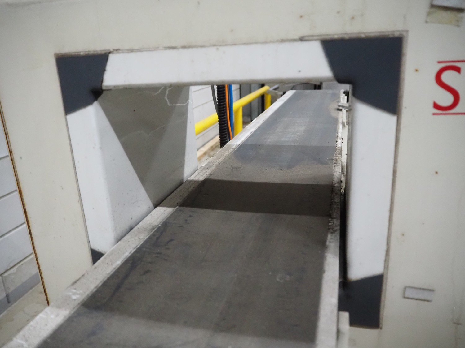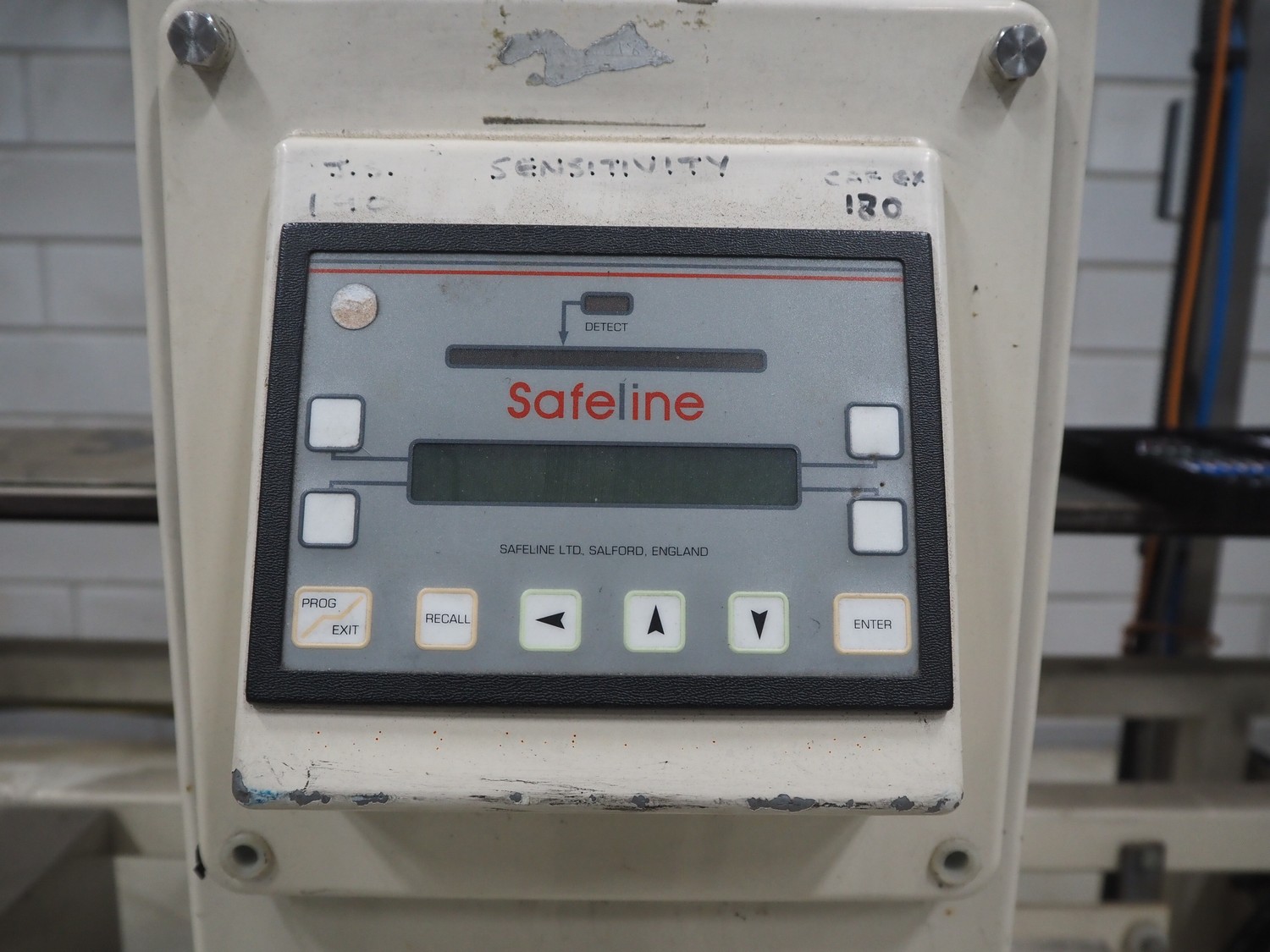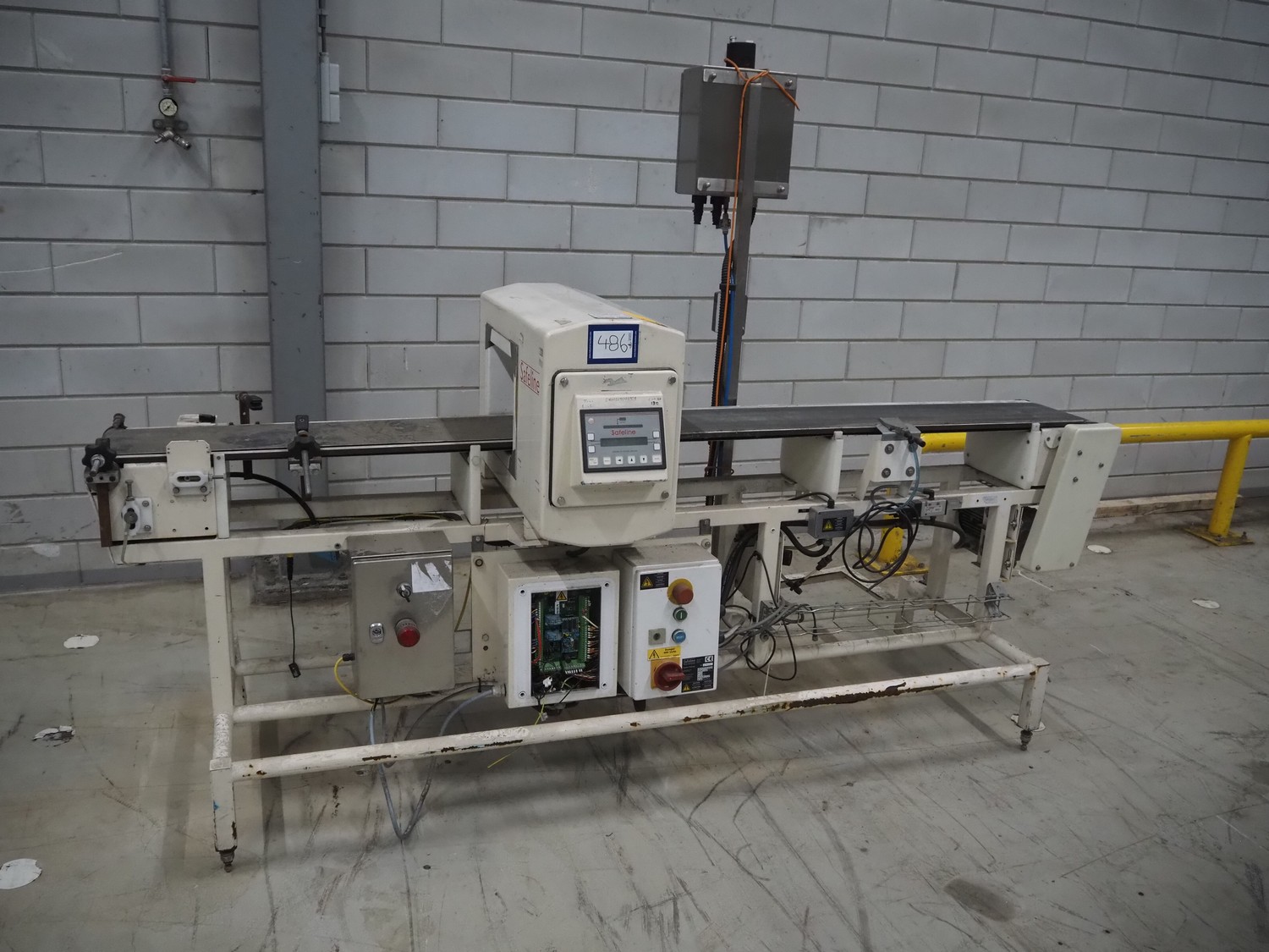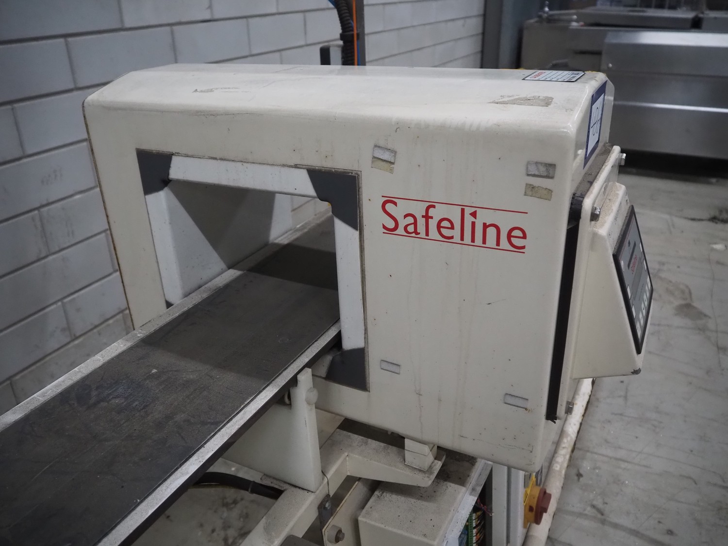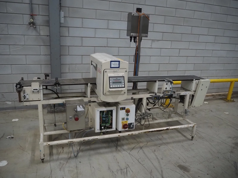 SNB Systems / Mettler Toledo Safeline metal detector, serial number: 57231, plastic belt, belt width: 200 mm, clearance: 255 mm x 170 mm, total dimensions: 2500 mm x 800 mm x 1700 mm. Missing cover.