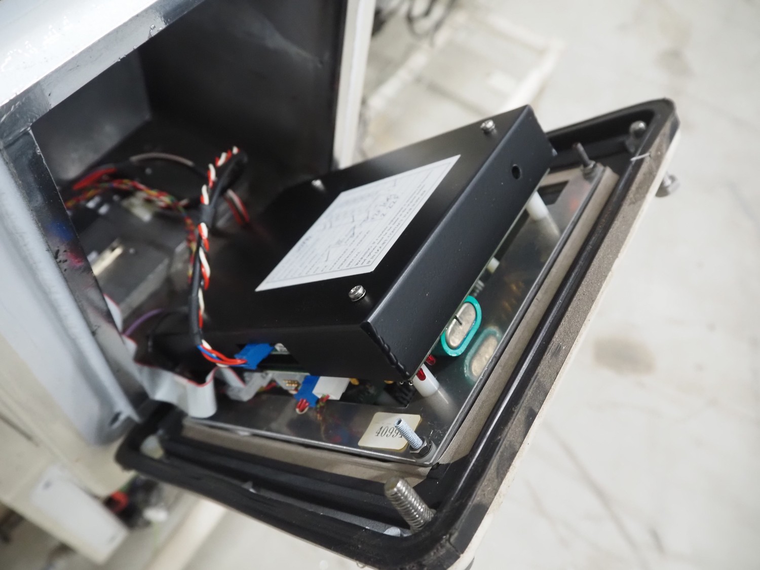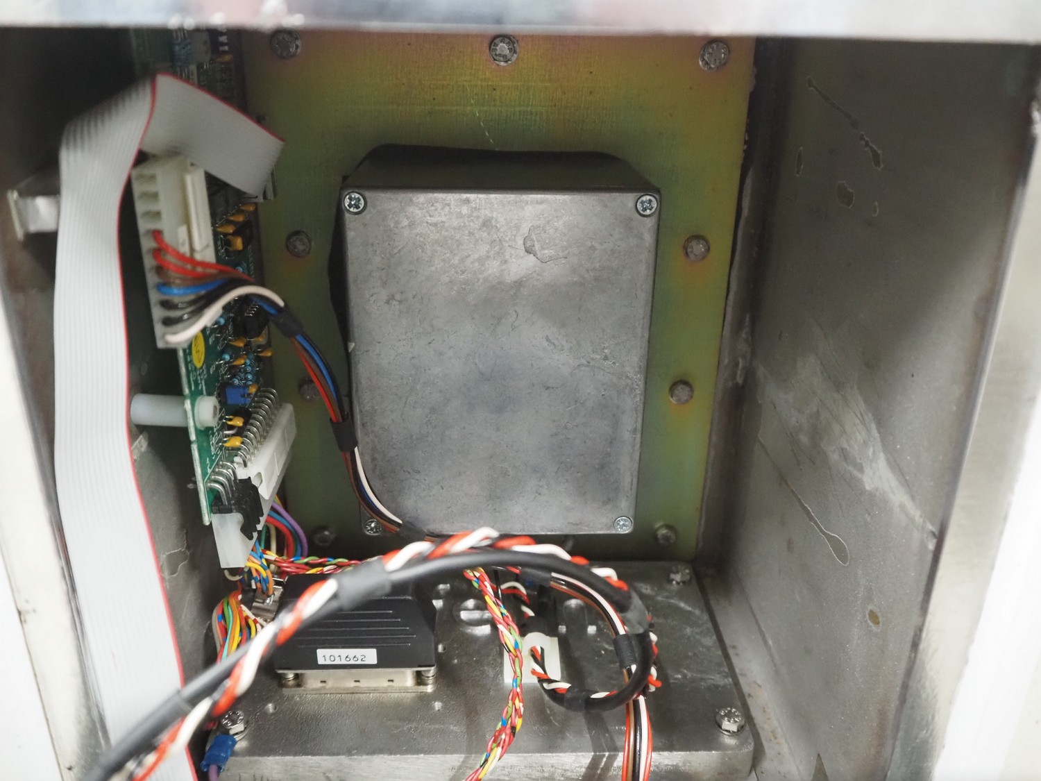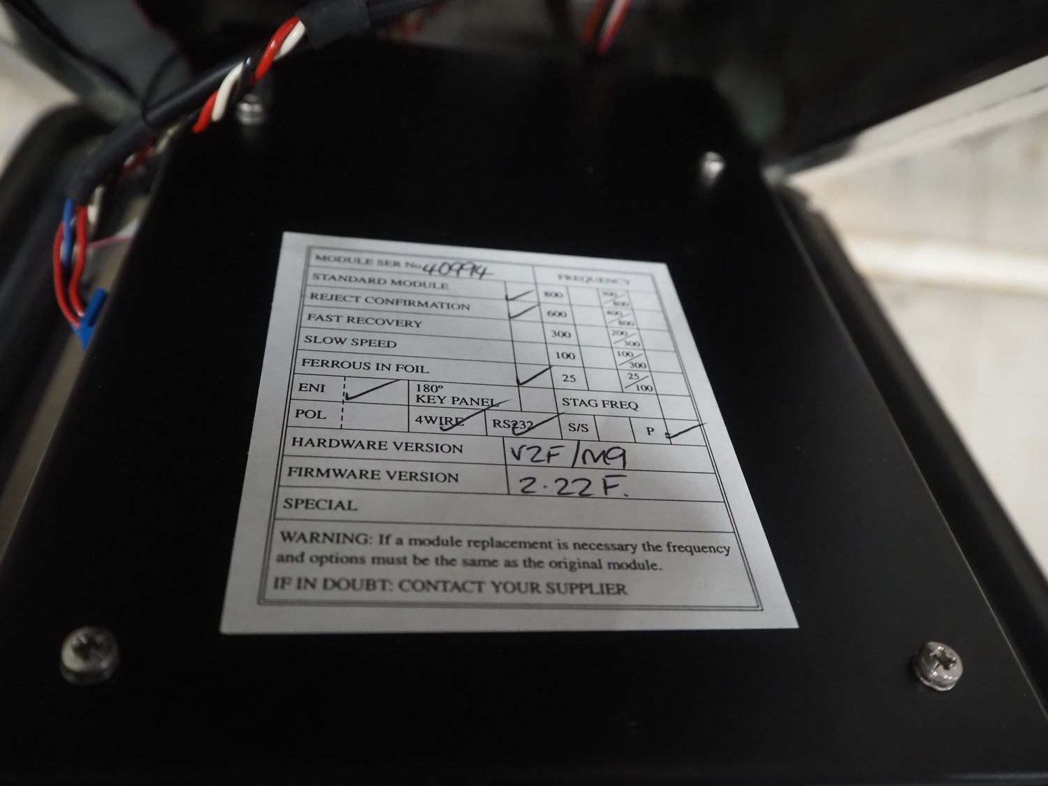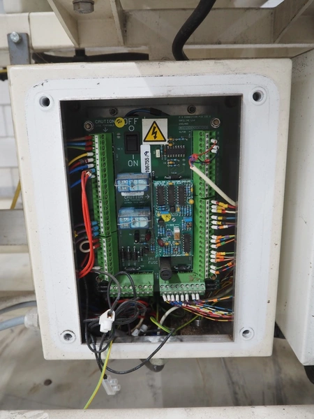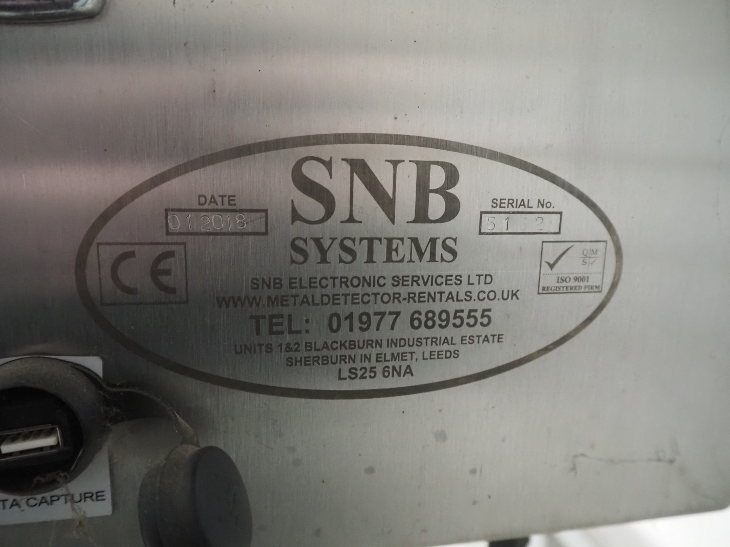 SNB Systems / Mettler Toledo Safeline metal detector, serial number: 57231, plastic belt, belt width: 200 mm, clearance: 255 mm x 170 mm, total dimensions: 2500 mm x 800 mm x 1700 mm. Missing cover.