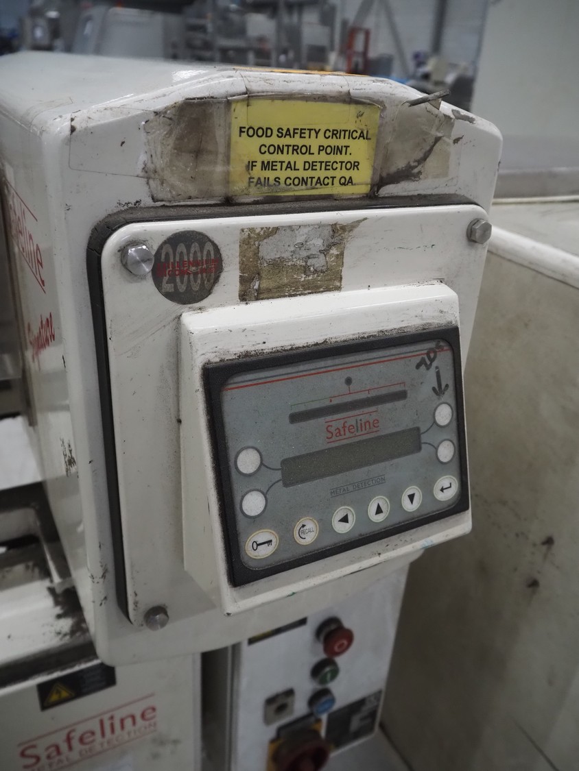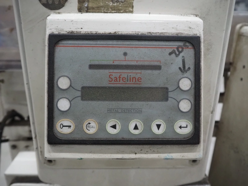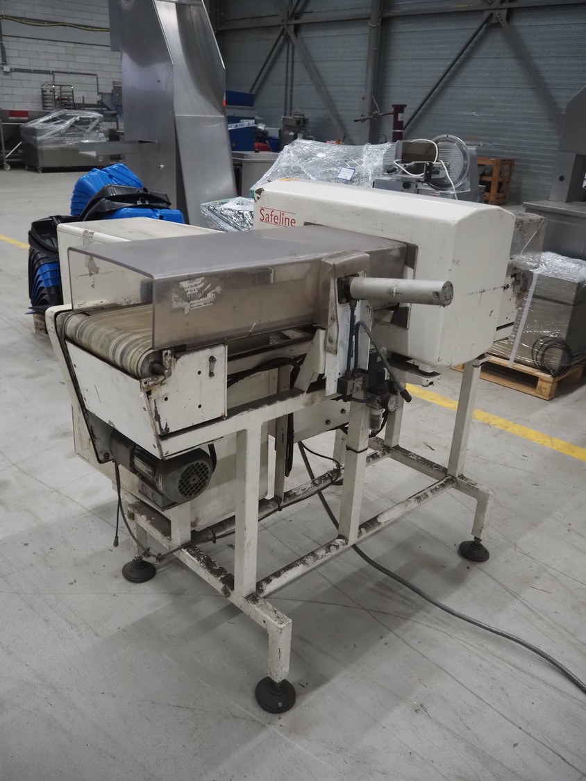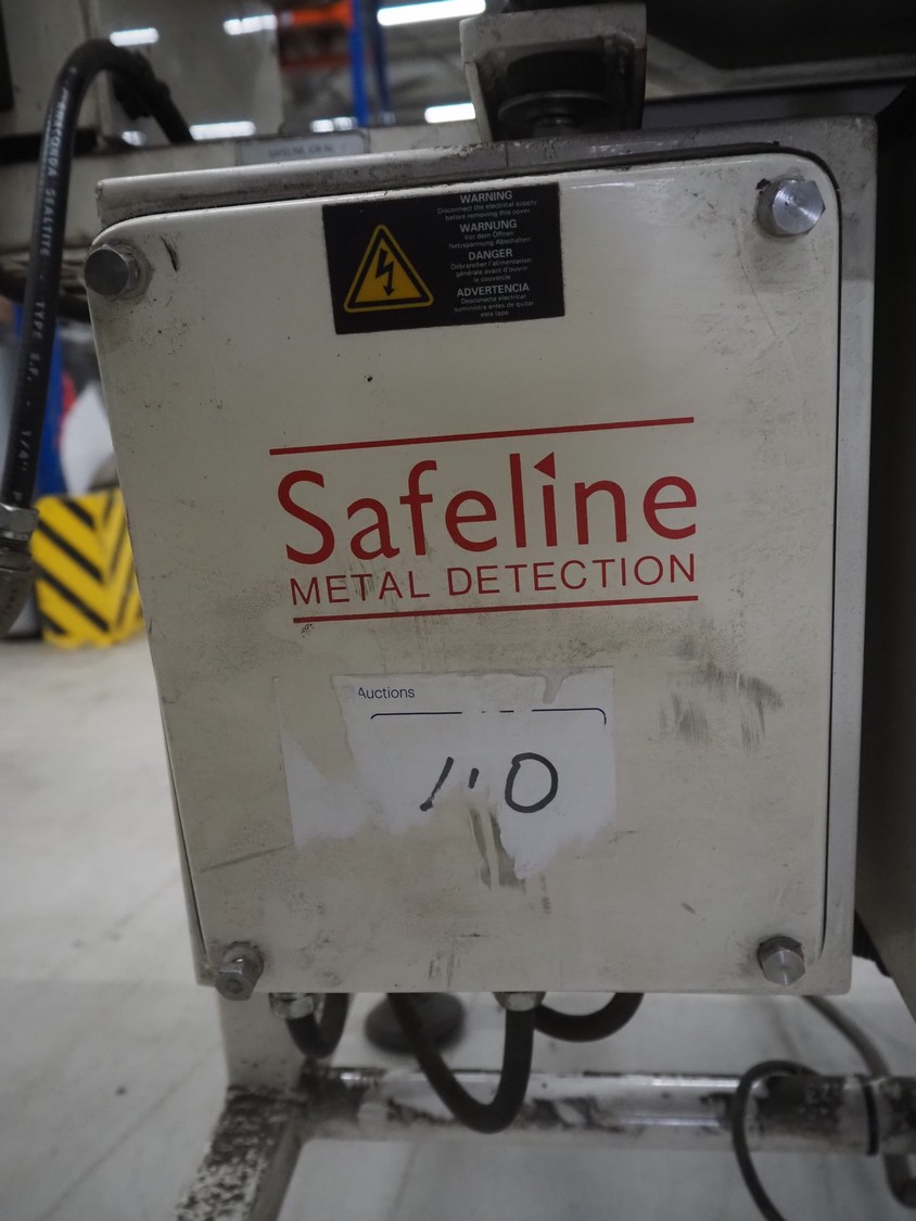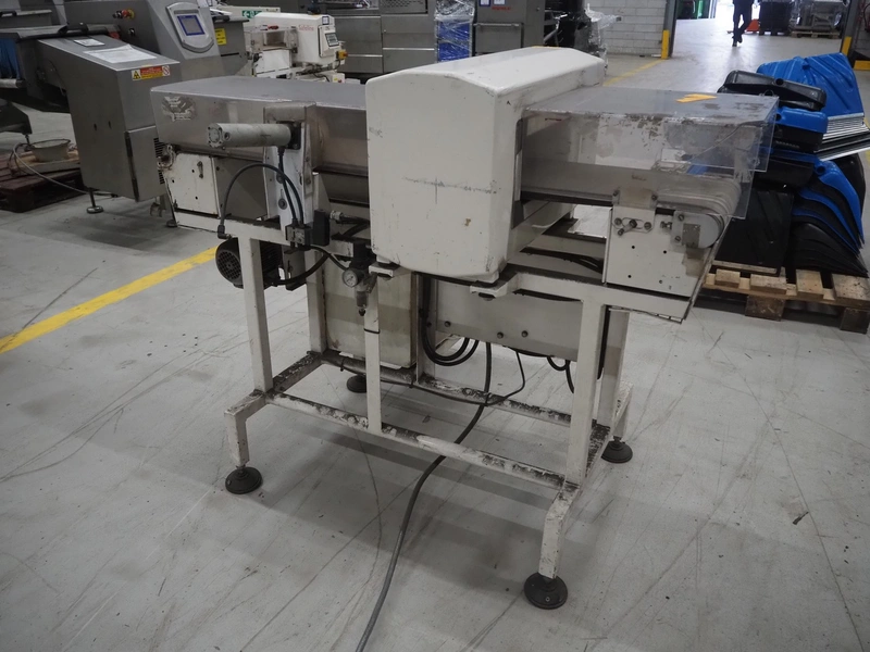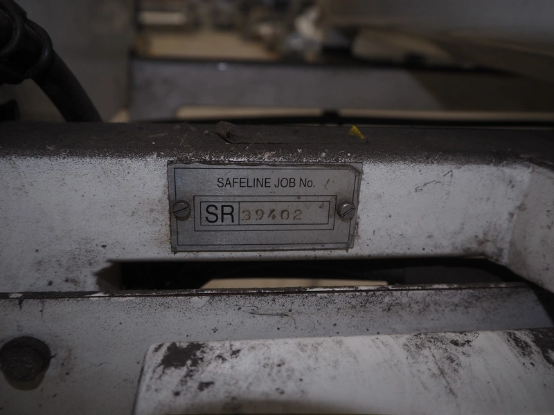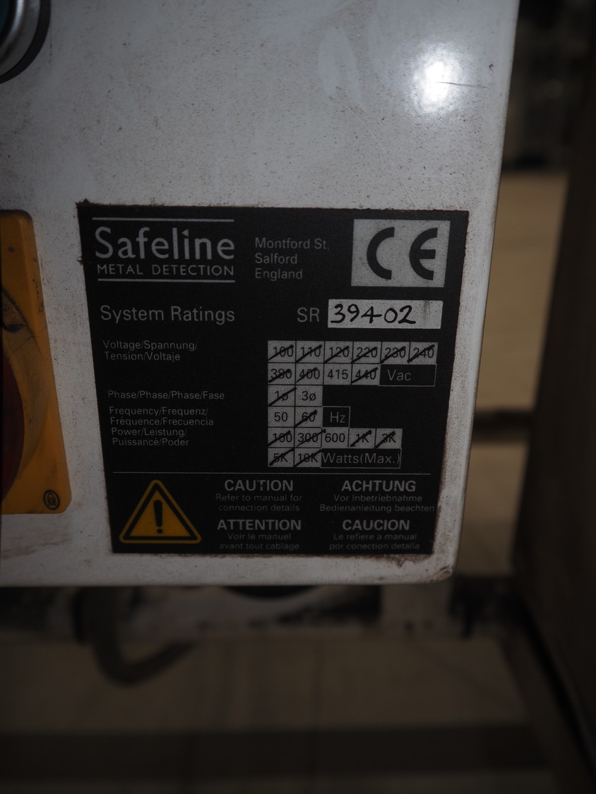 Mettler Toledo Safeline metal detector with rejector, serial number: 39402, plastic belt, belt width: 240 mm, clearance: 310 mm x 100 mm, total dimensions: 1420 mm x 1250 mm x 1150 mm.