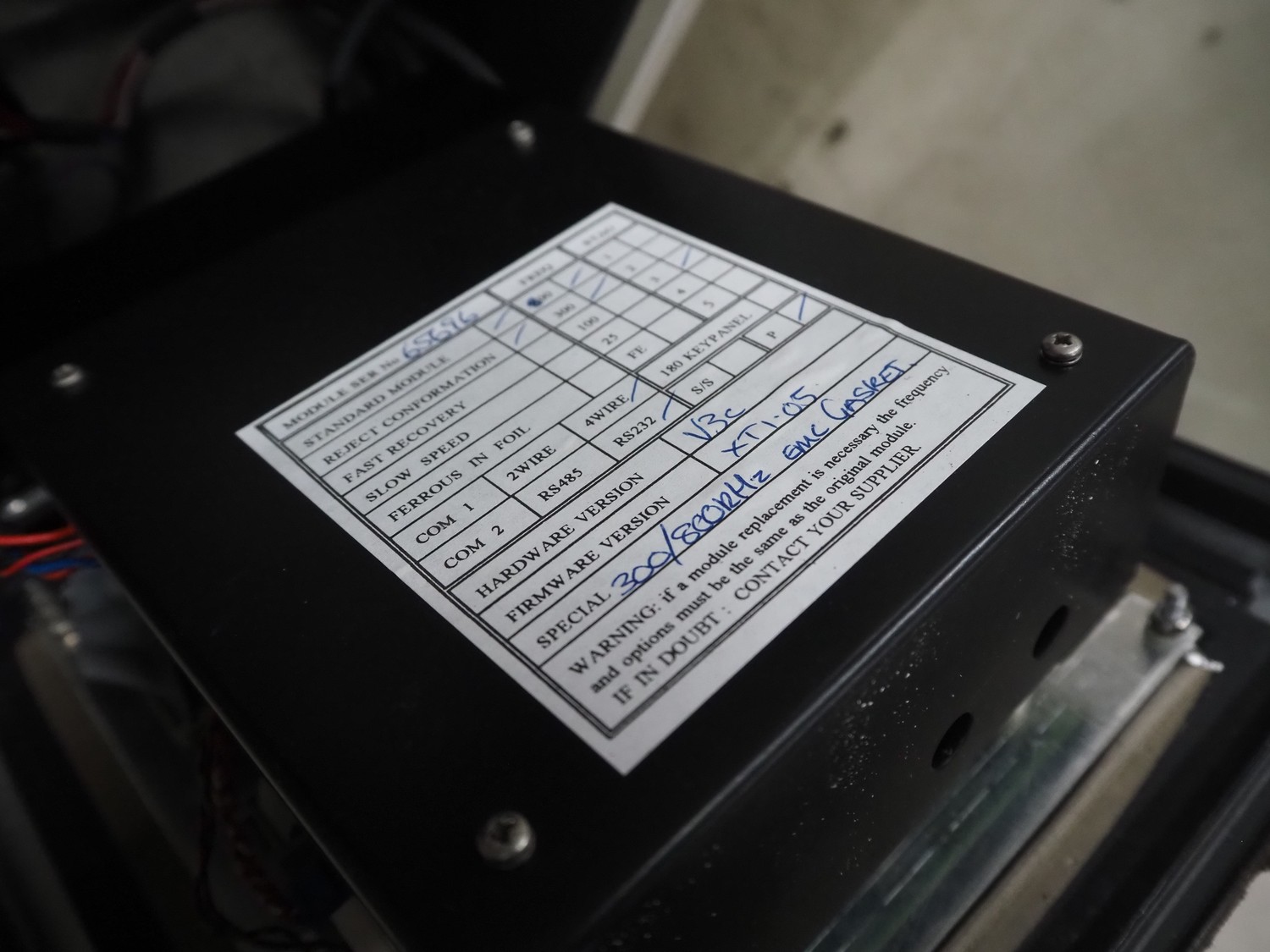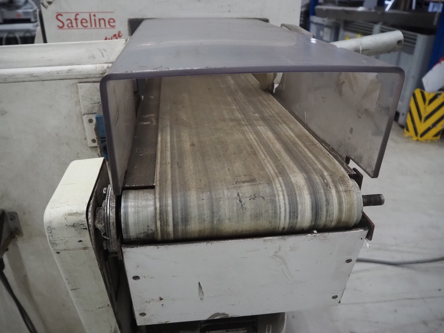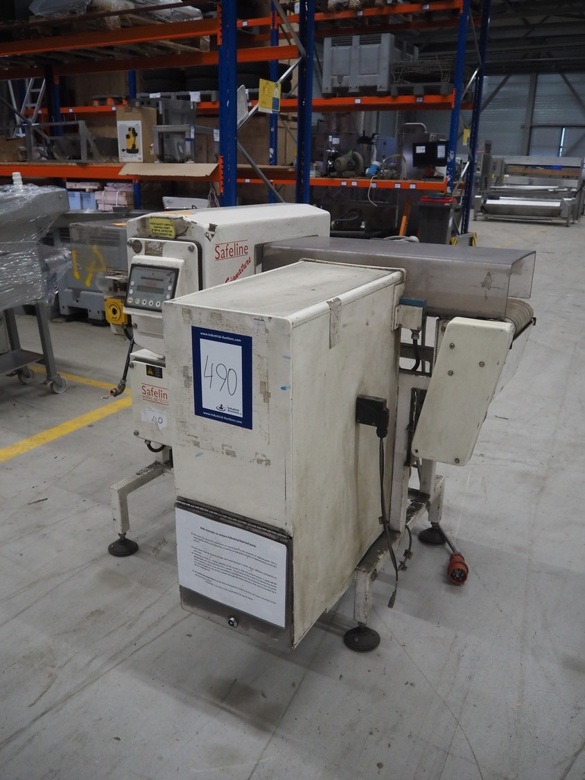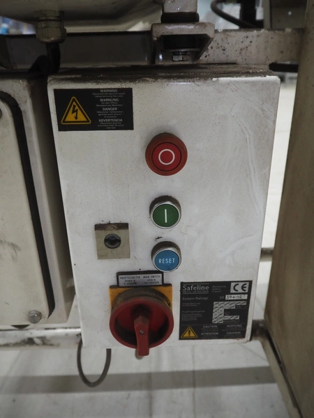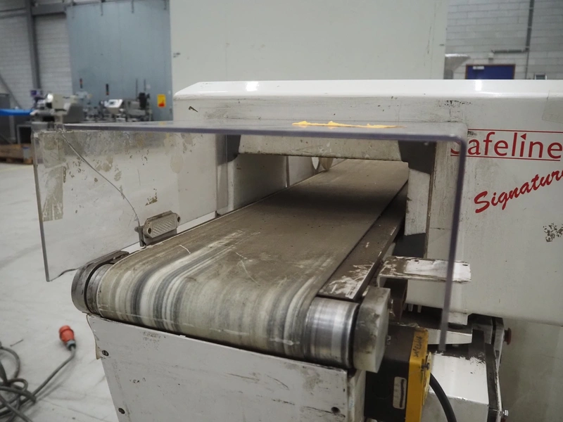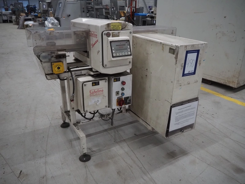 Mettler Toledo Safeline metal detector with rejector, serial number: 39402, plastic belt, belt width: 240 mm, clearance: 310 mm x 100 mm, total dimensions: 1420 mm x 1250 mm x 1150 mm.