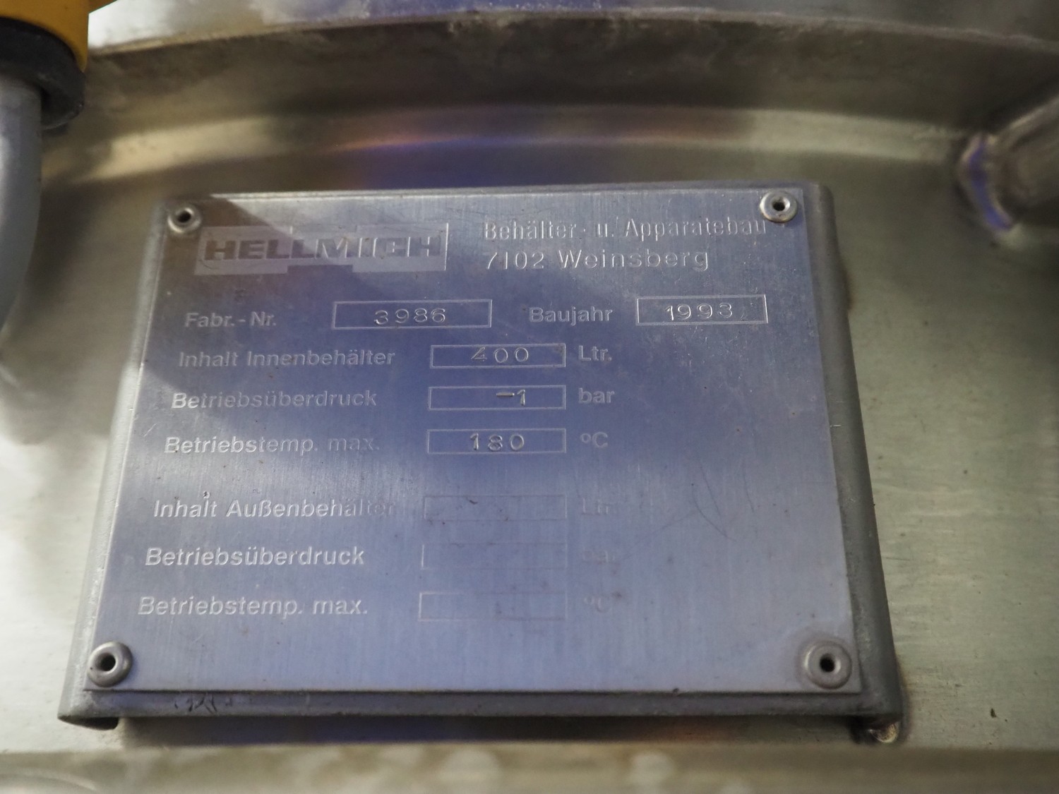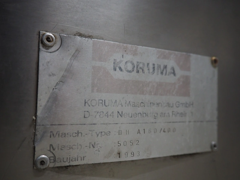 Koruma Maschinenbau GmbH dispersing machine, type: DH A160/400, machine number: 5052, year of construction: 1993, volume: 400 litres, dimensions: 1900 mm x 1300 mm x 2500 mm.