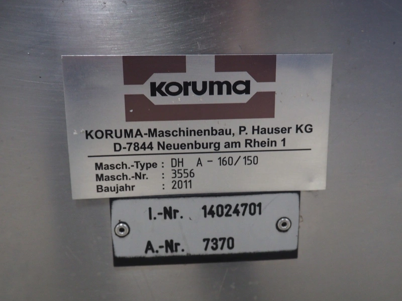 Koruma Maschinenbau GmbH dispersing machine, type: DH A-160/150, machine number: 3556, year of construction: 2011, dimensions: 1300 mm x 720 mm x 1150 mm.