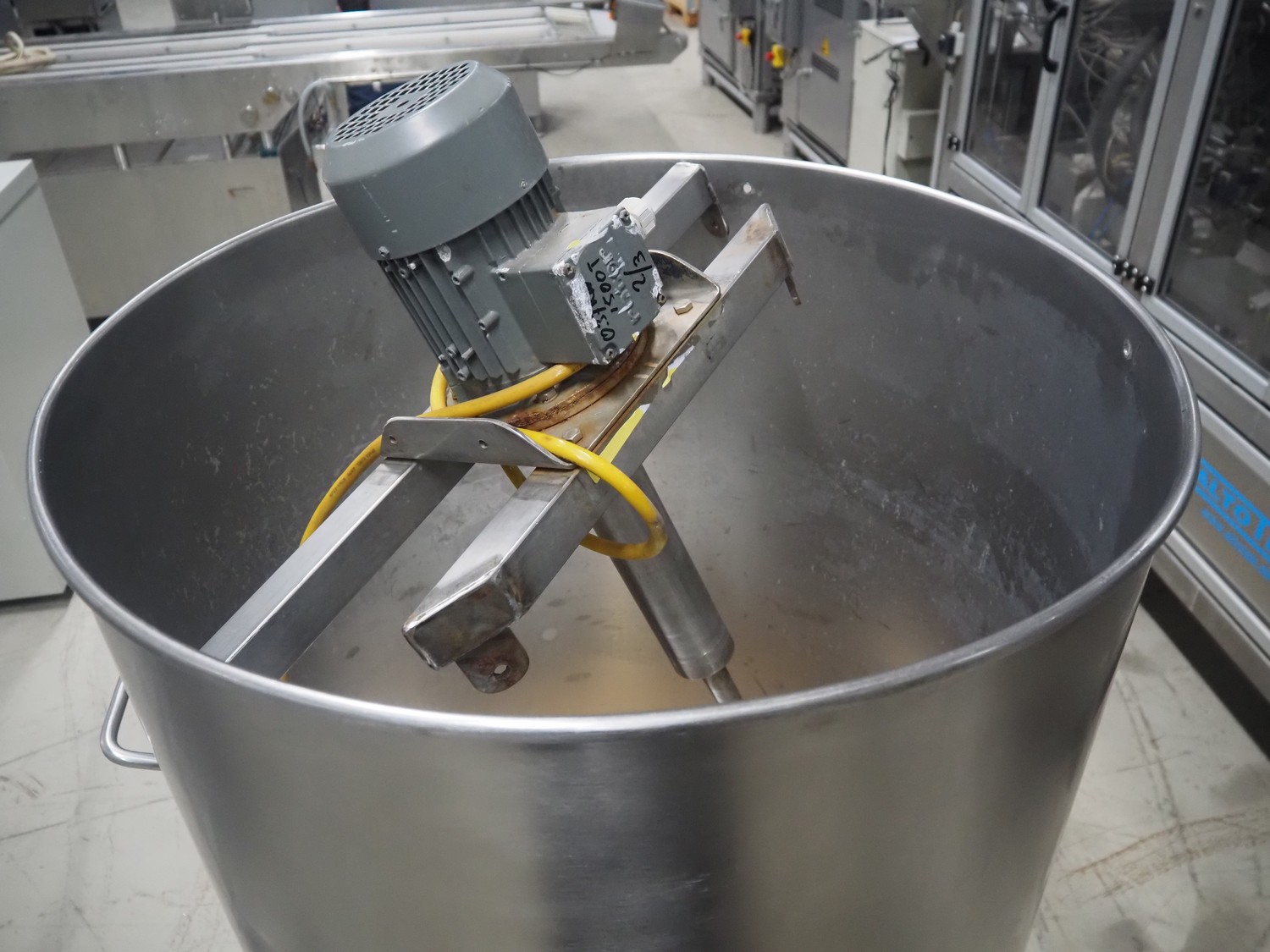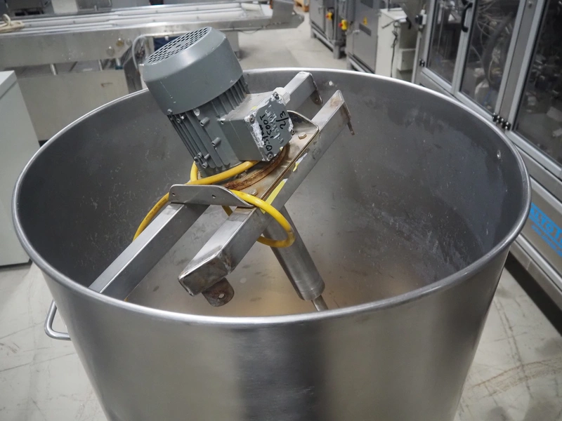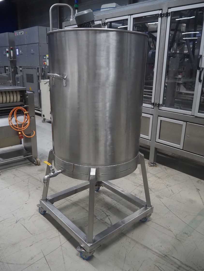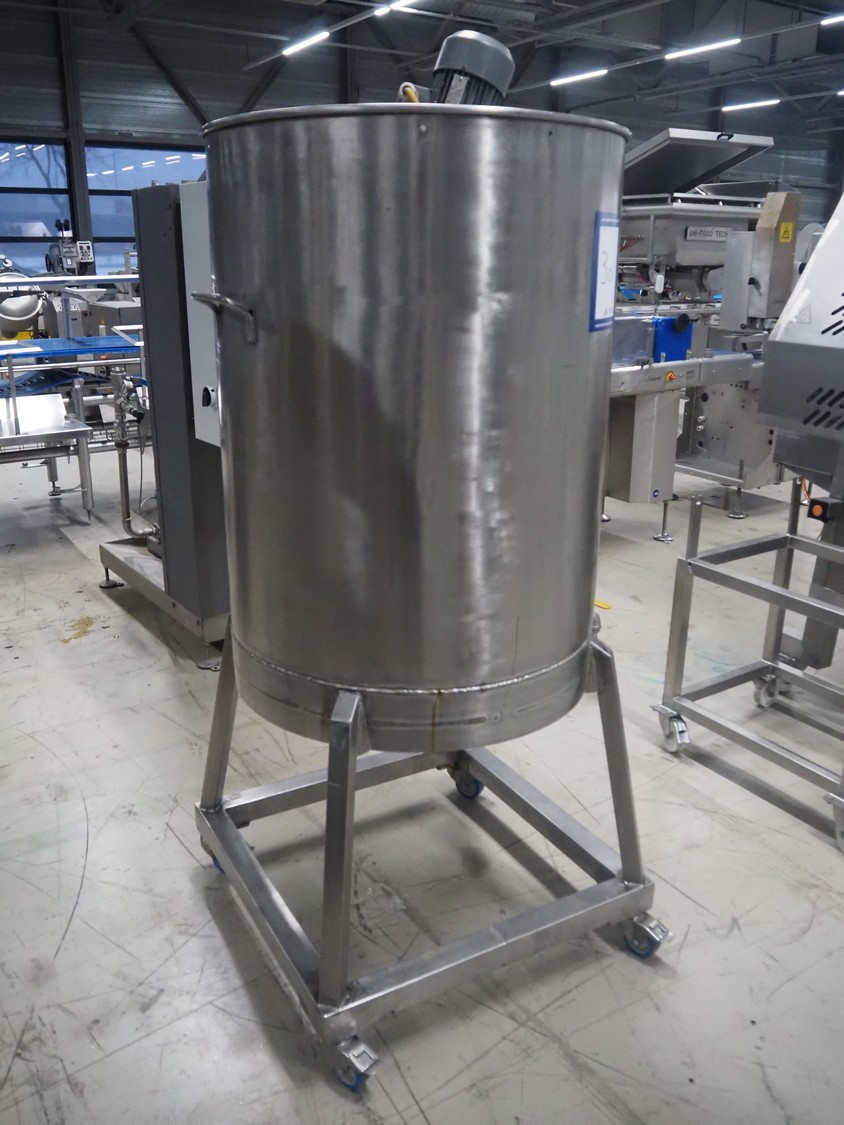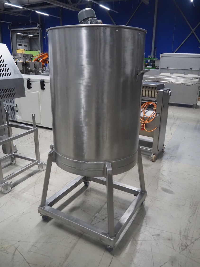 S/s mixer used for egg white, inside dimensions: Ø 750 mm x 990 mm, total dimensions: 790 mm x 950 mm x 1830 mm.