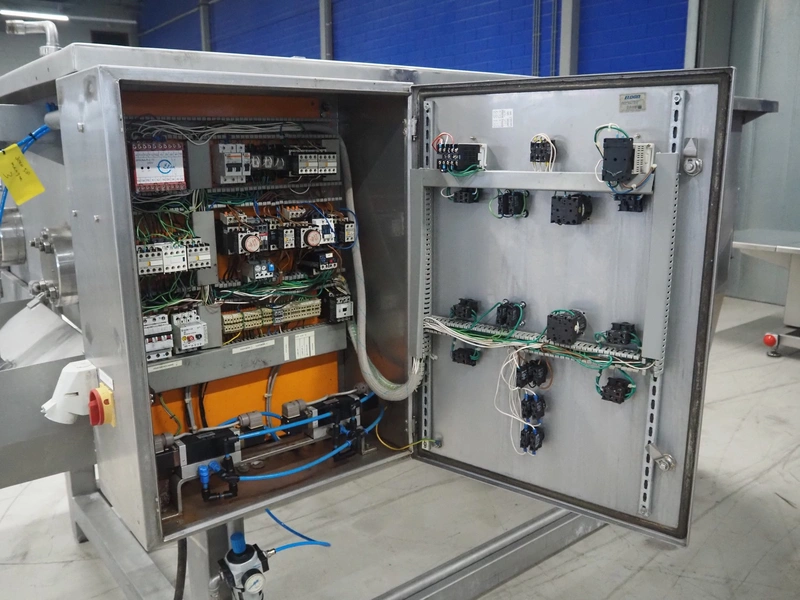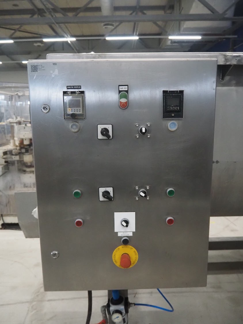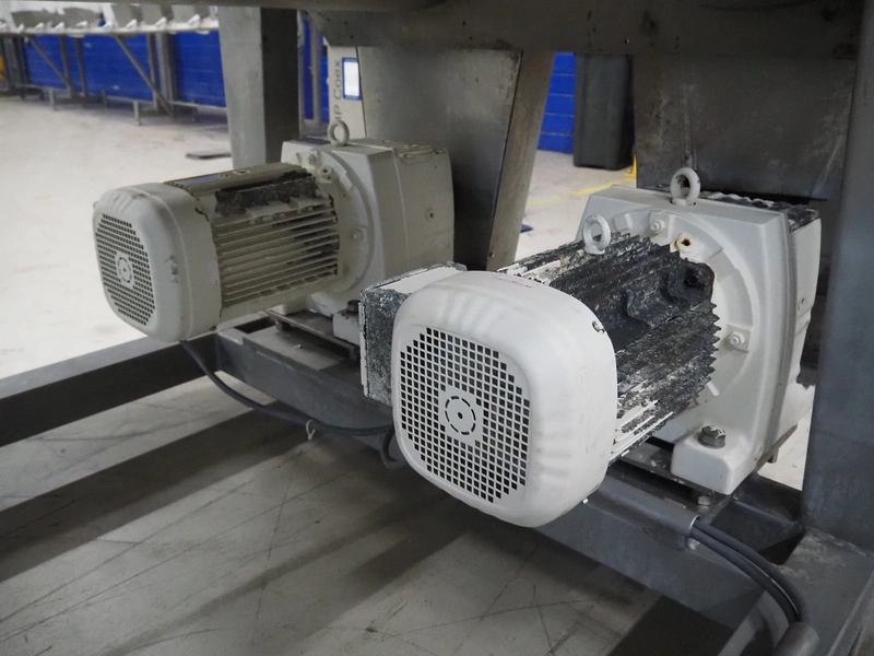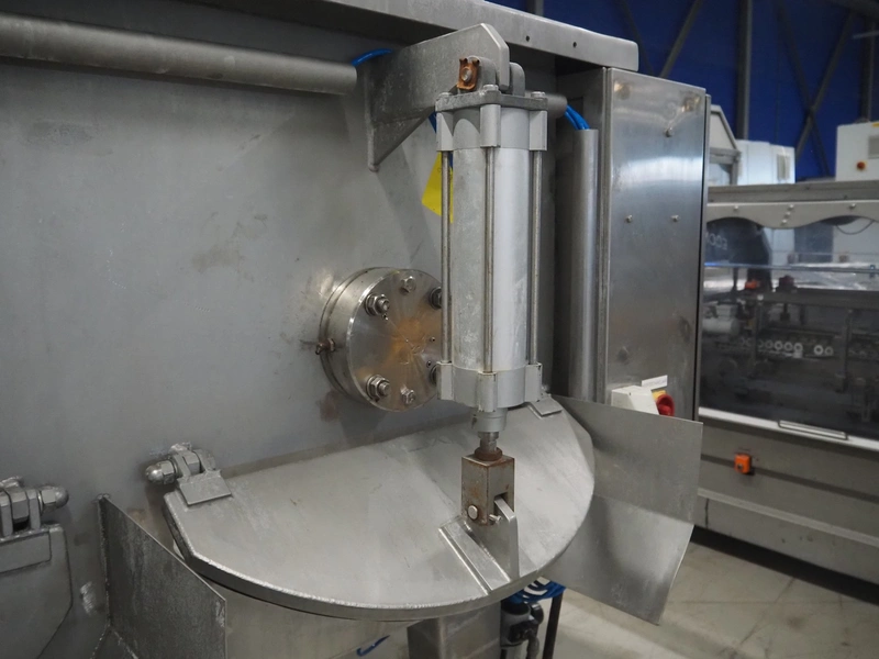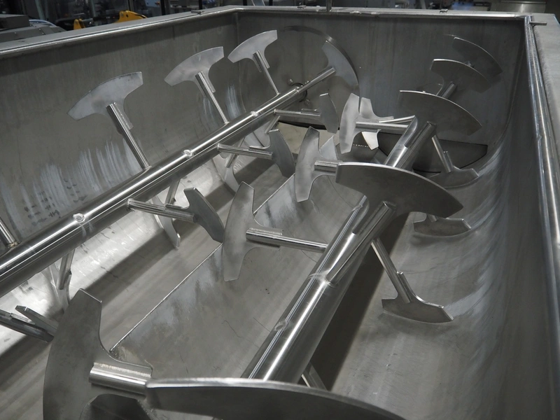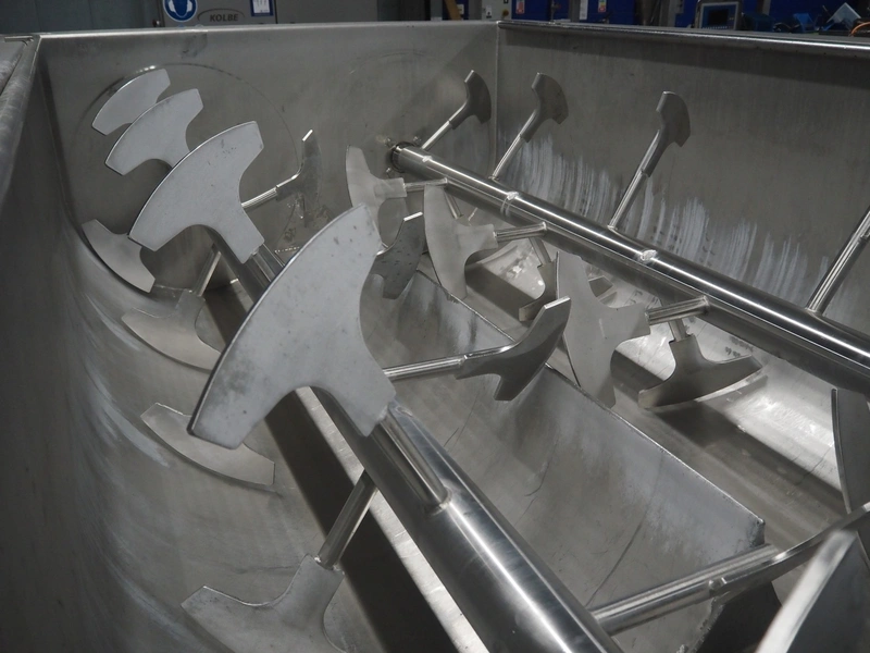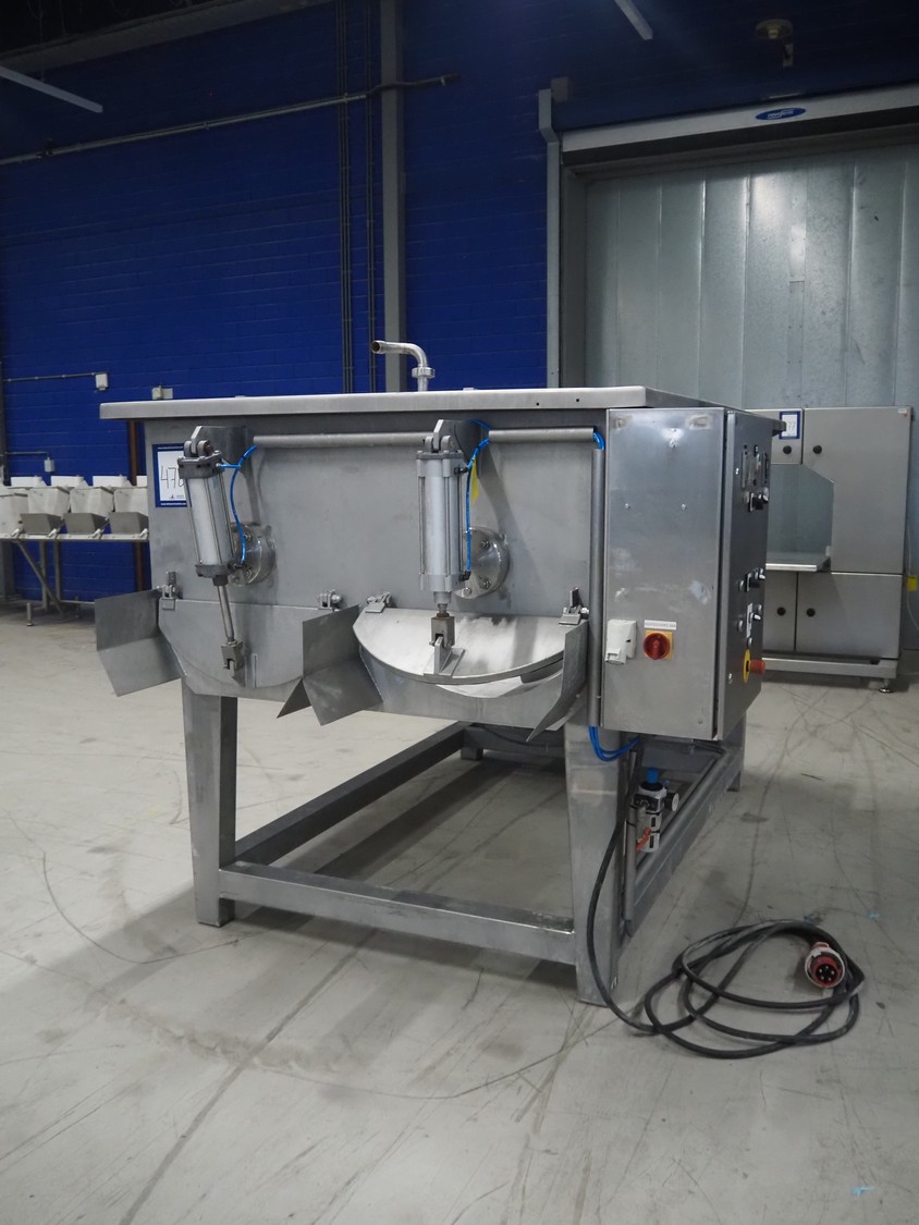Meyn double shaft paddle mixer on weighing cells, machine number: 49433, year of construction: 1992, inside dimensions: 2500 mm x 1500 mm x 700 mm, total dimensions: 3100 mm x 1800 mm x 1850 mm.