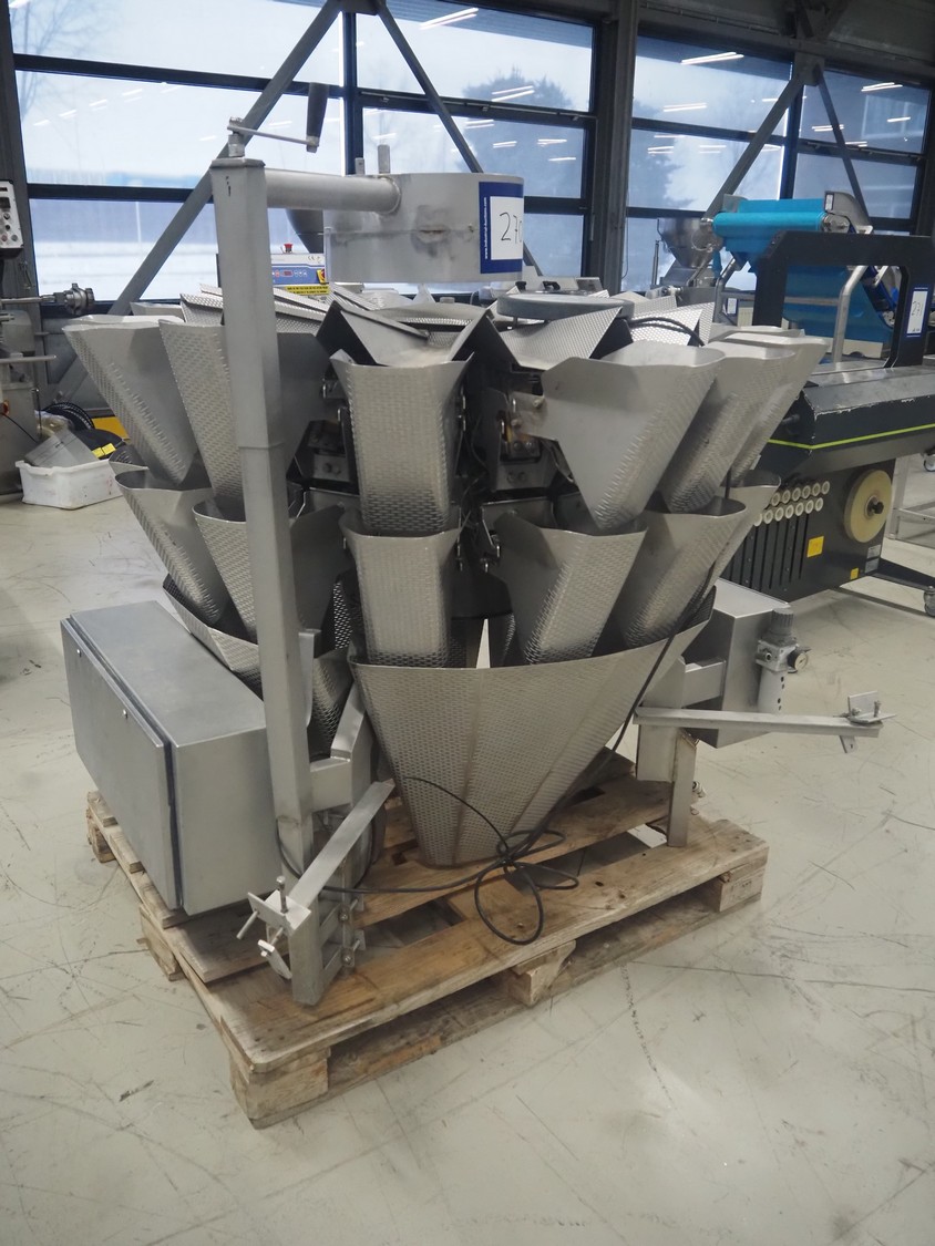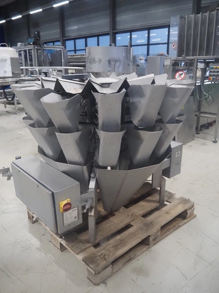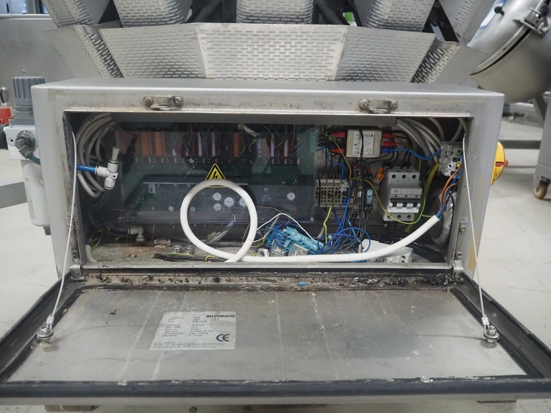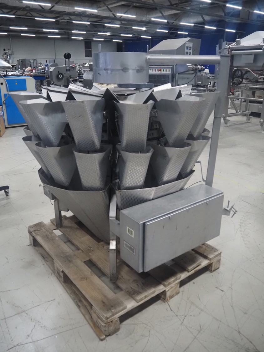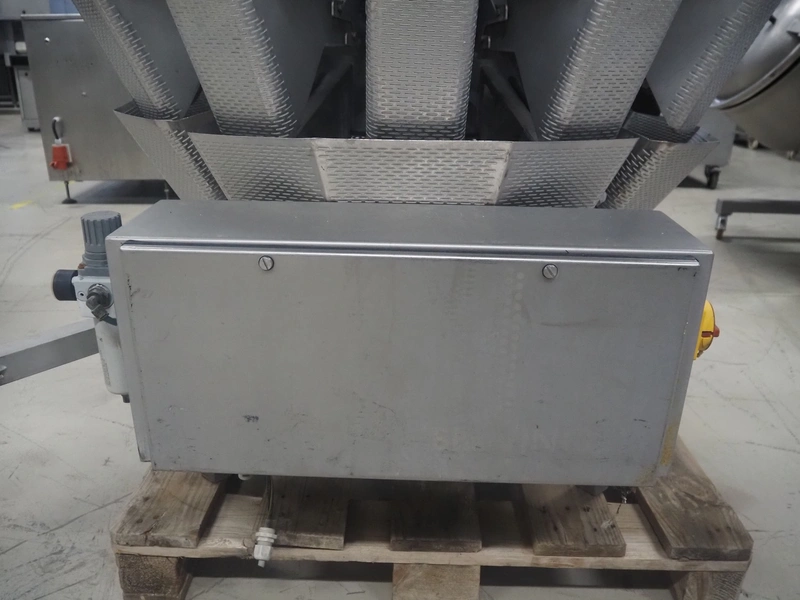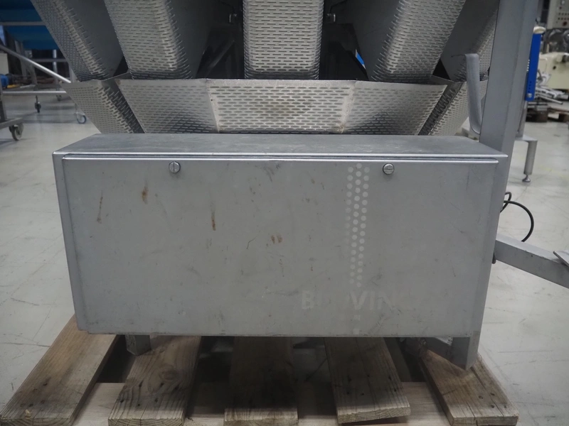 Bilwinco 14-heads multihead weigher, type: BW114-W, number: 5322, year of construction: 2002, 400 V, 3 Ph, 50 Hz, 10 A, dimensions: 1500 mm x 1300 mm x 1400 mm.
