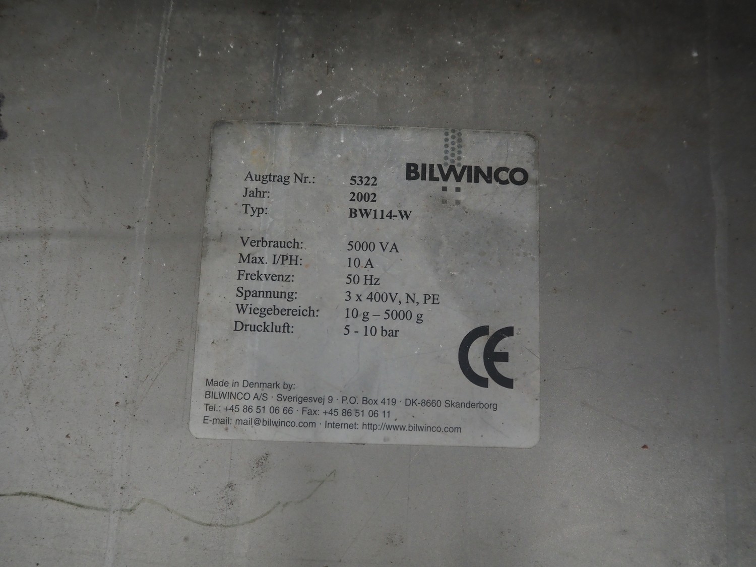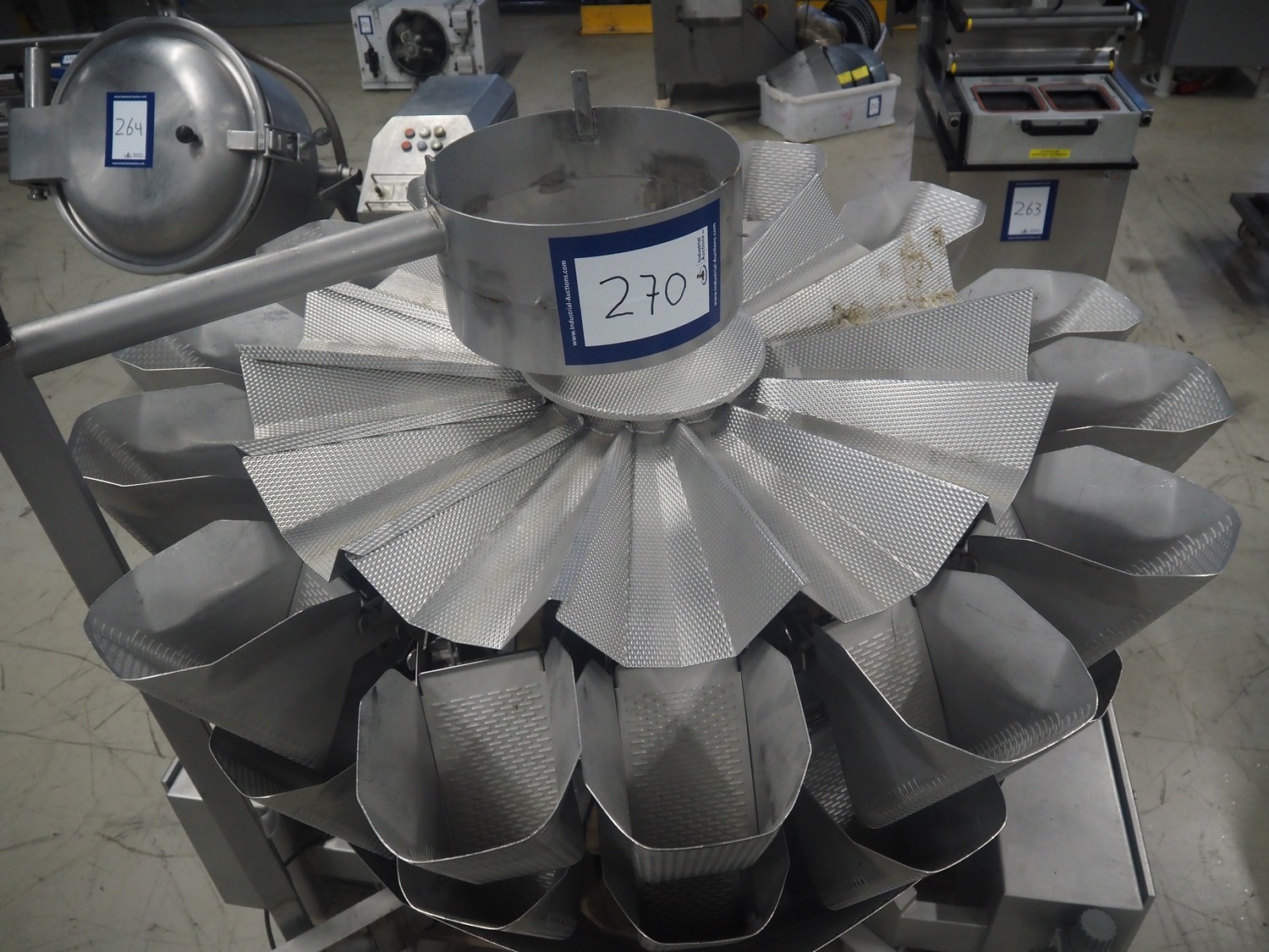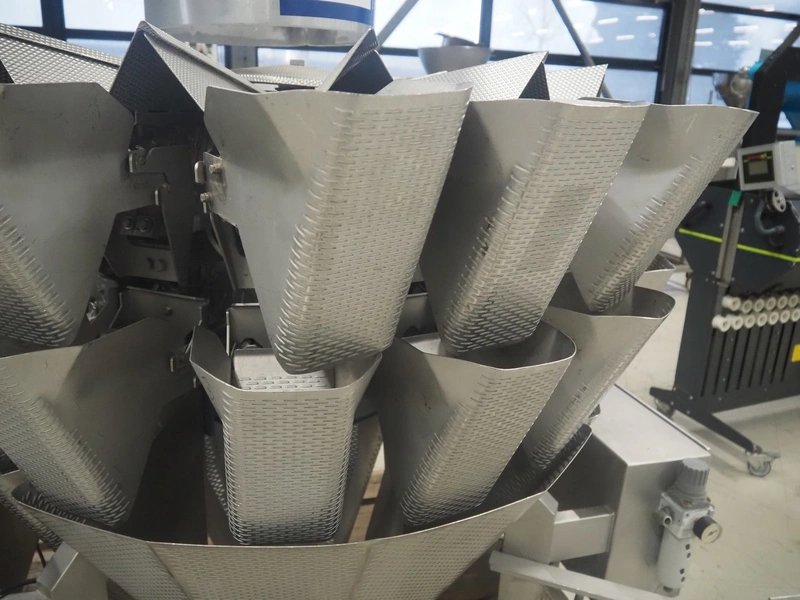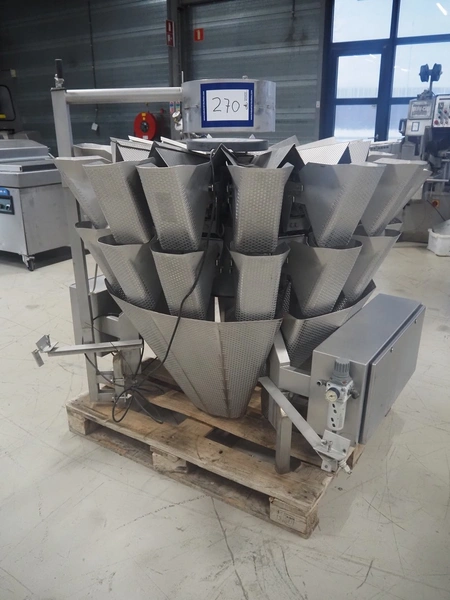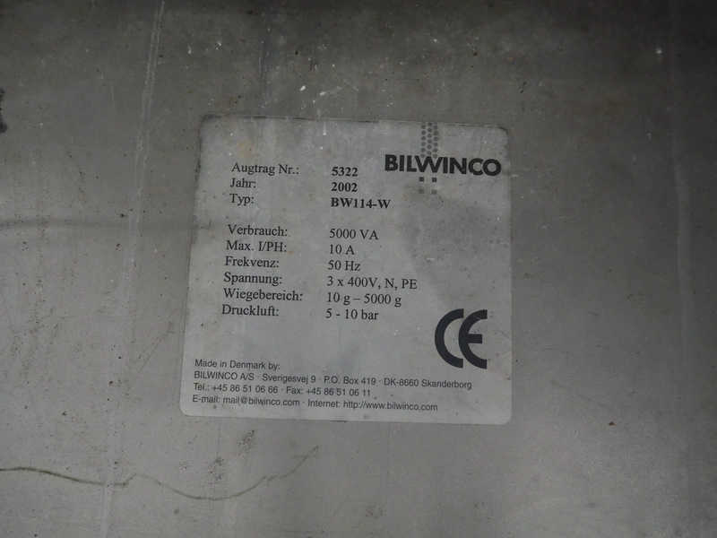 Bilwinco 14-heads multihead weigher, type: BW114-W, number: 5322, year of construction: 2002, 400 V, 3 Ph, 50 Hz, 10 A, dimensions: 1500 mm x 1300 mm x 1400 mm.