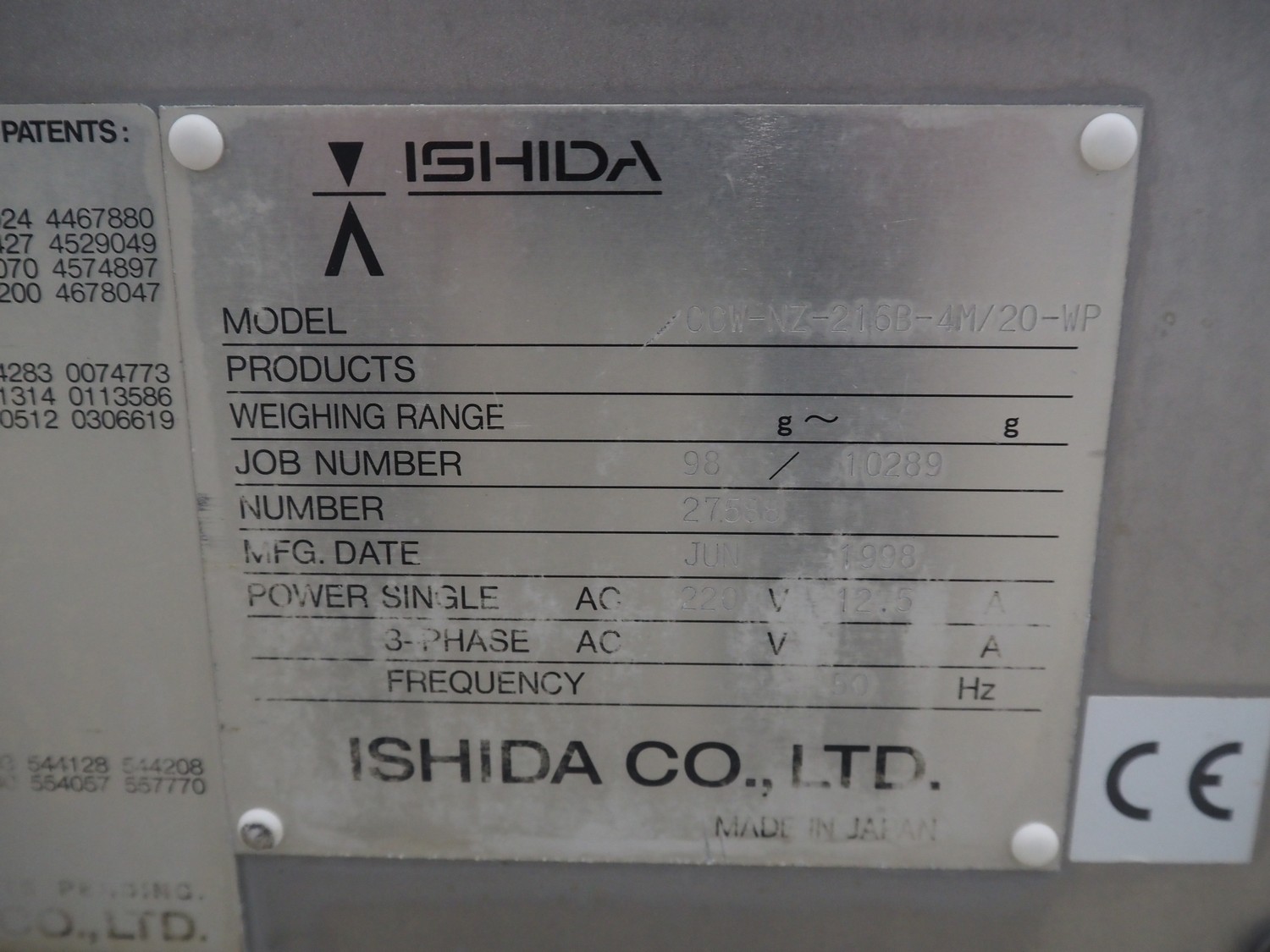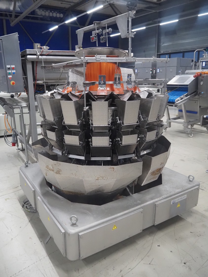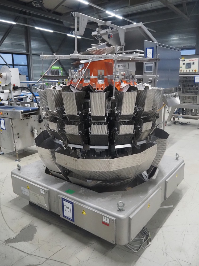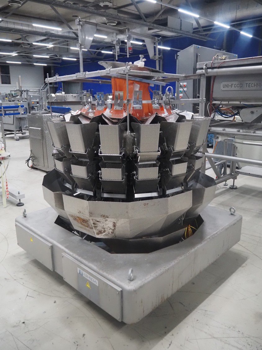 Ishida 16-heads multihead weigher, model: CCW-NZ-216B-4M/20WP, number: 27588, year of construction: June 1998, 220 V, 50 Hz, 12.5 A, dimensions: 1500 mm x 1500 mm x 2000 mm.