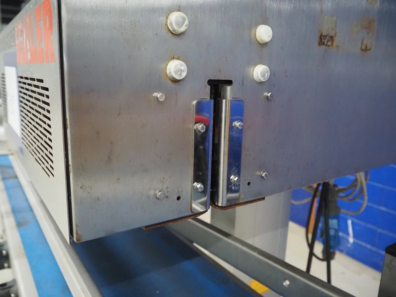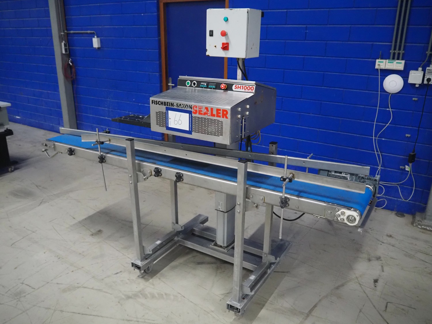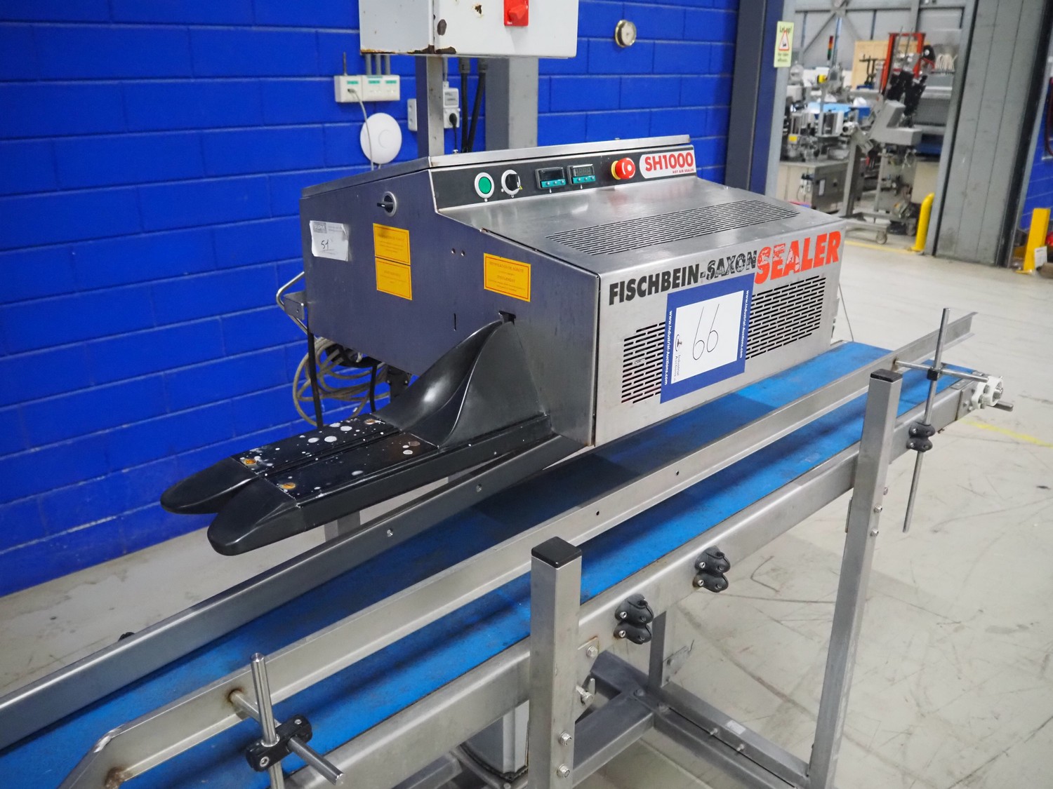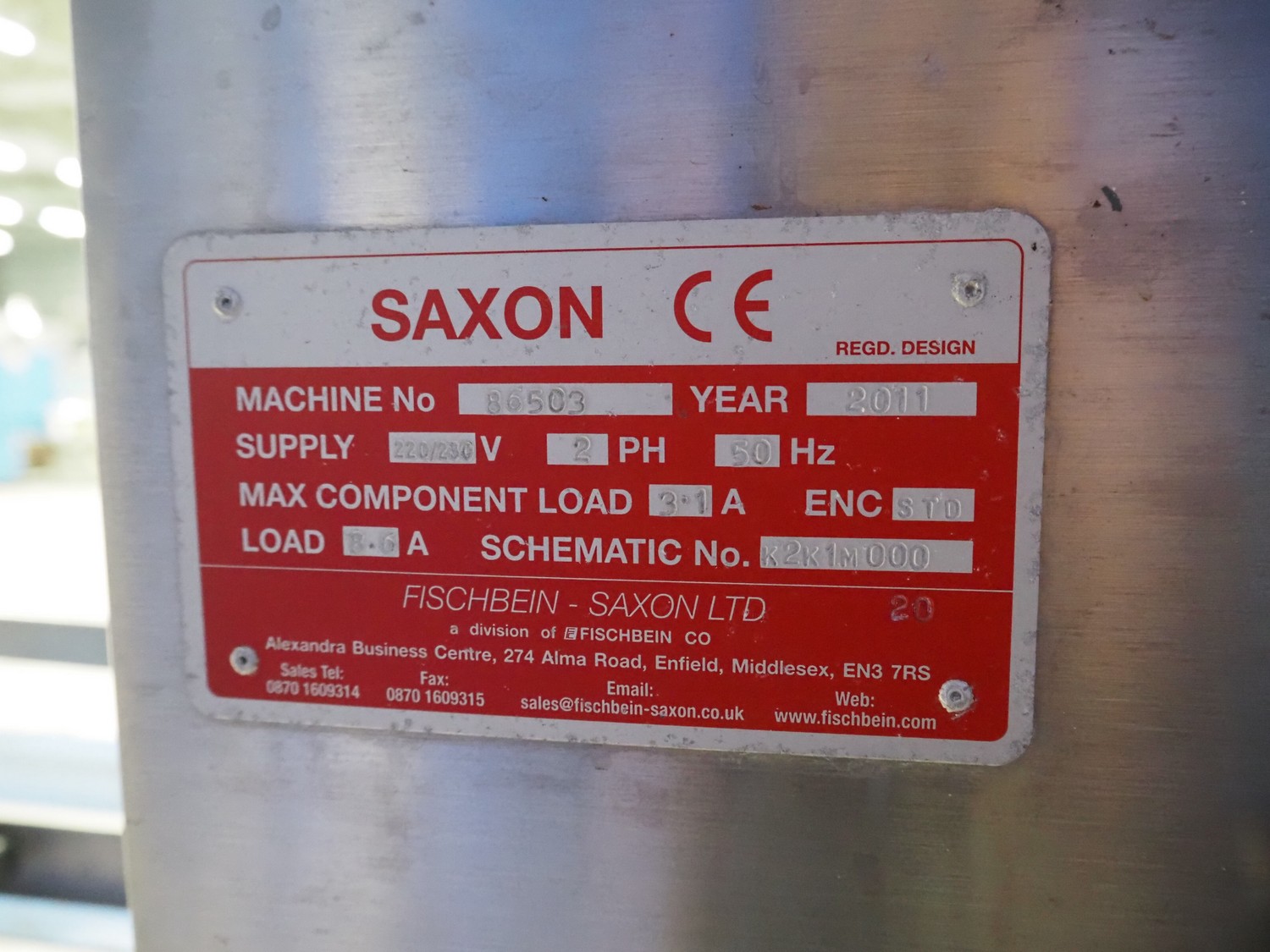 Saxon LTD bag sealing machine, model: SH1000, machine number: 86503, year of construction: 2011, 220/230 V, 2 Ph, 50 Hz, 3.1 A, plastic belt, belt width: 300 mm, total dimensions: 2570 mm x 1000 mm x 1880 mm.