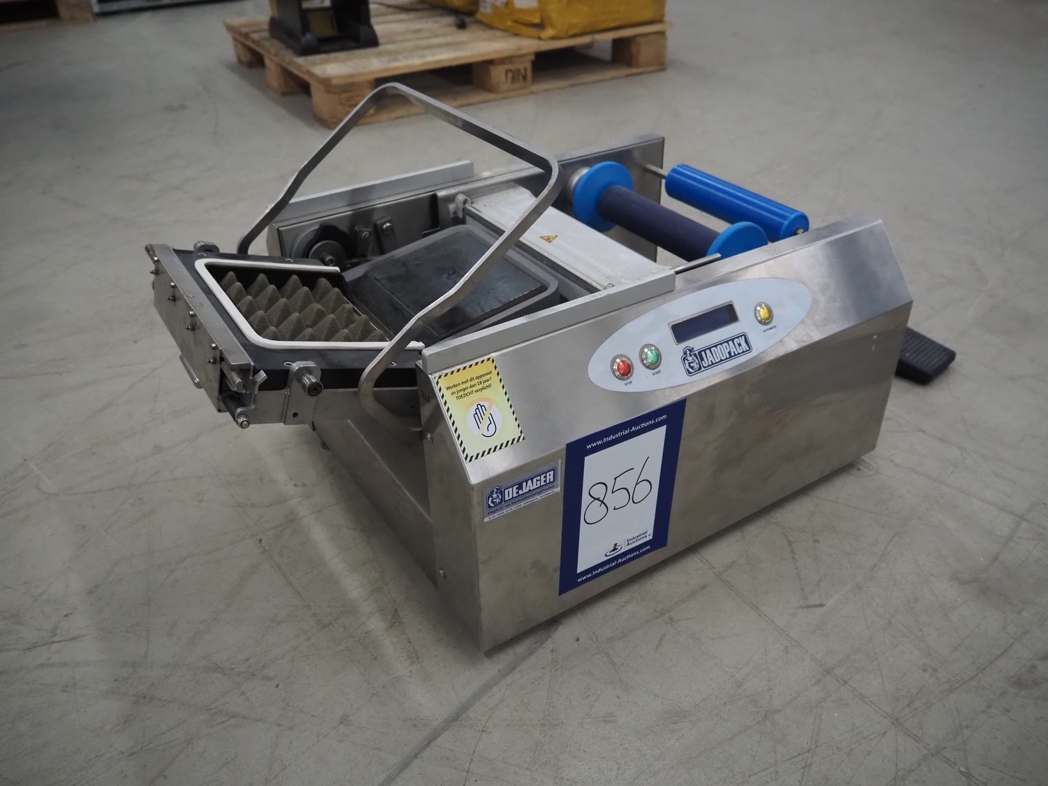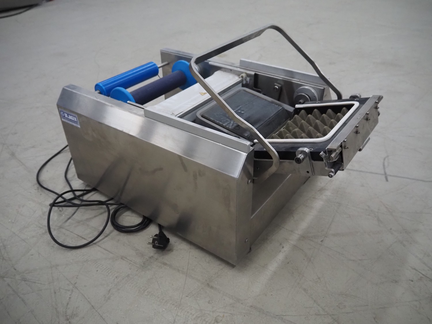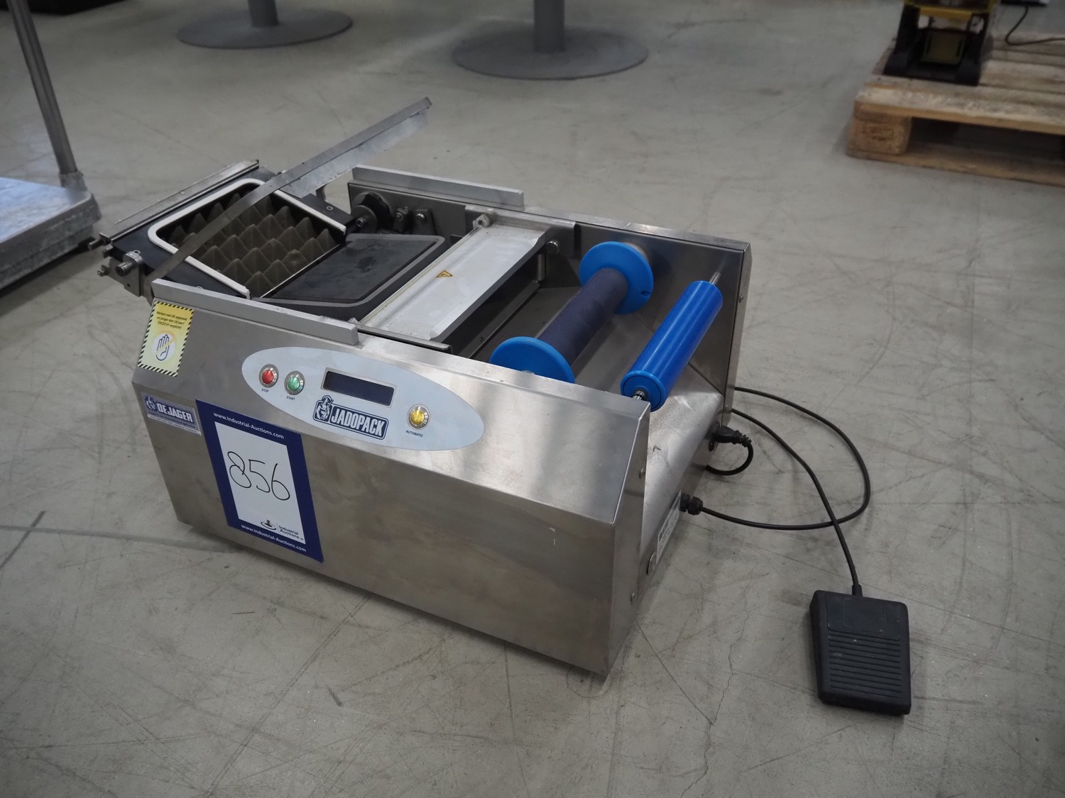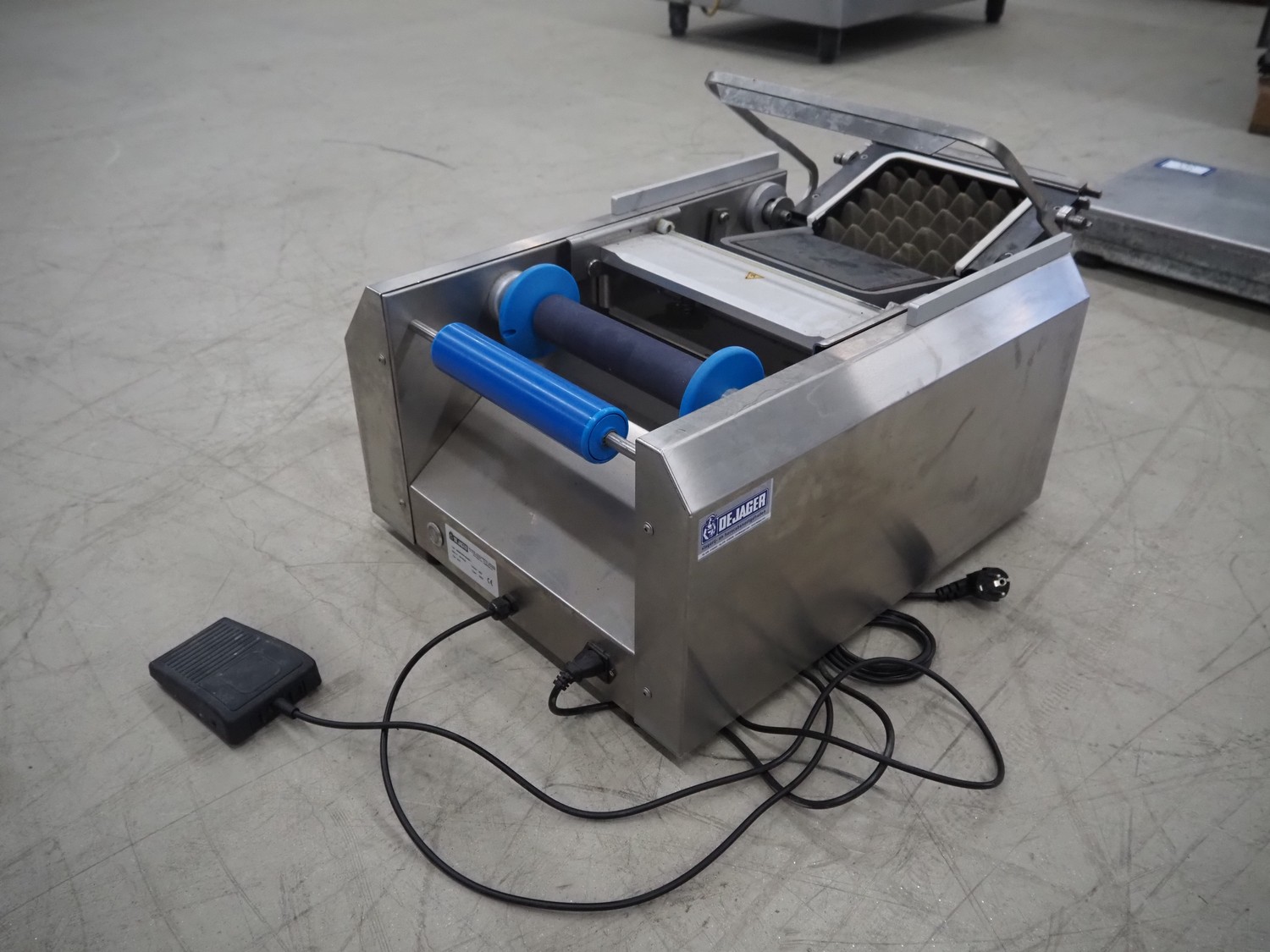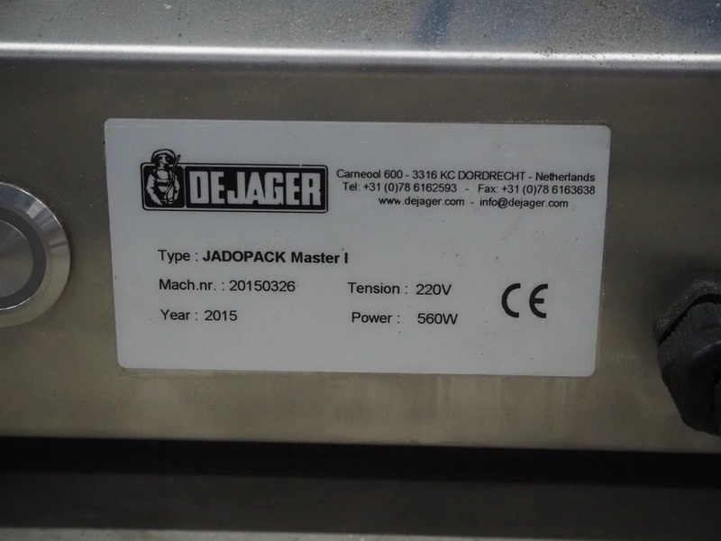 De Jager packaging machine, type: JADOPACK Master I, machine number: 20150326, year of construction: 2015, 220 V, 560 W, film width: 230 mm, seal: 220 mm x 170 mm, total dimensions: 730 mm x 520 mm x 450 mm.