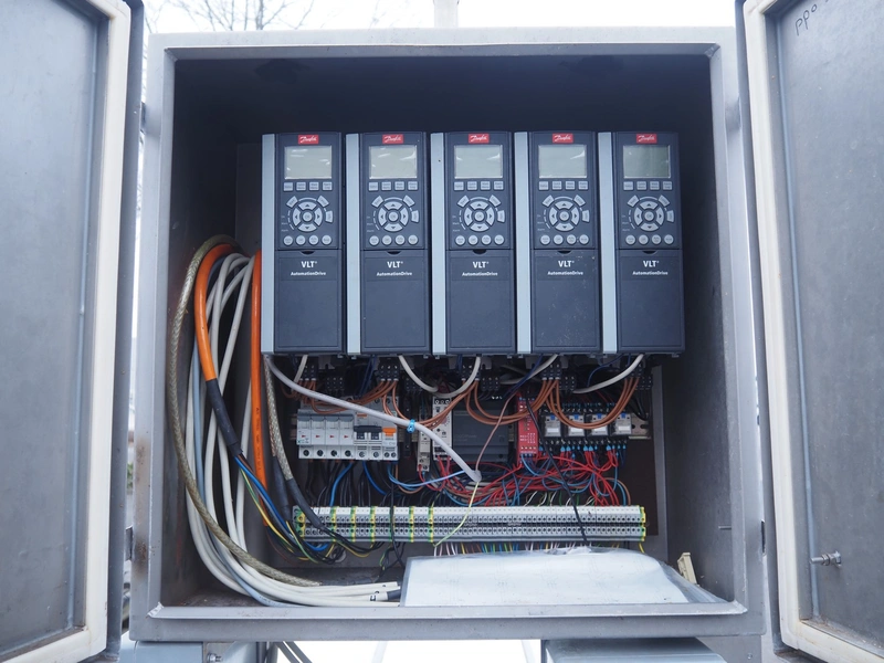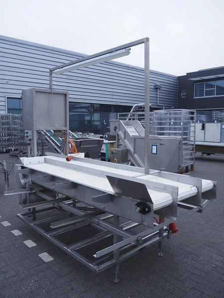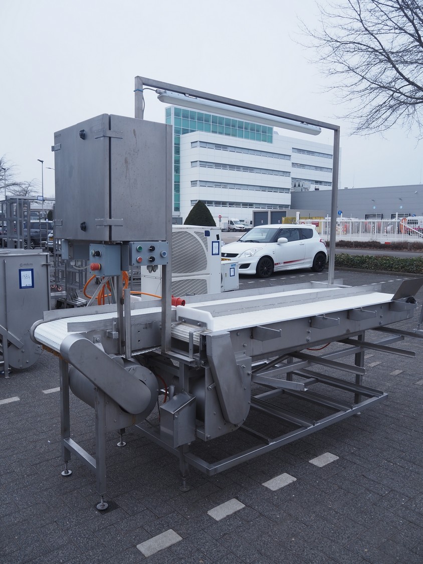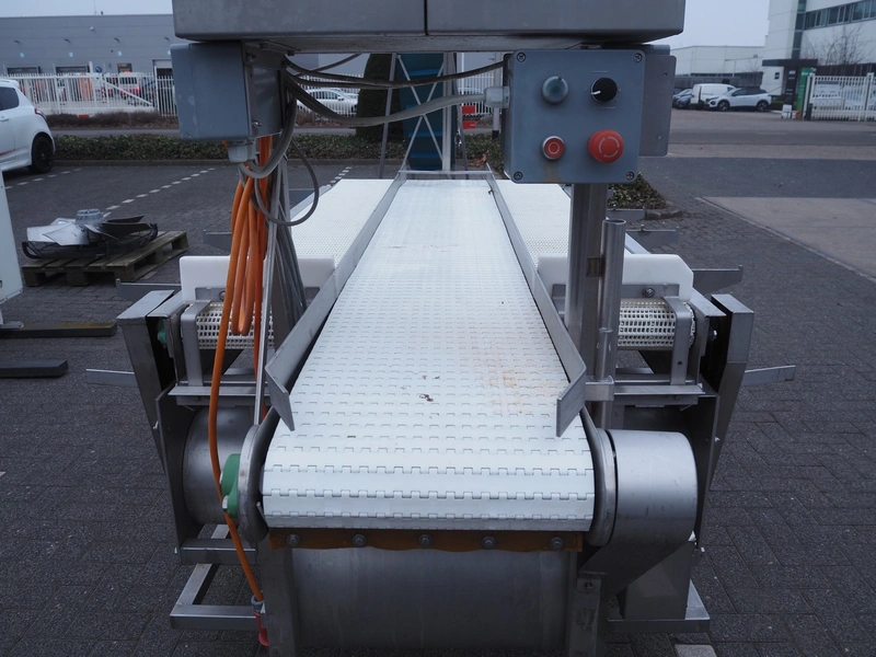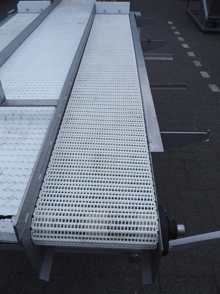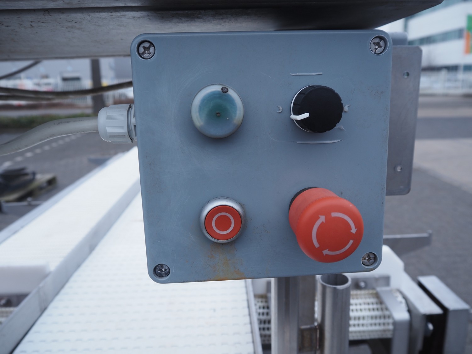 Packaging table, plastic belt, belt width: 300 mm, 2 plastic mesh belts, belt width: (2x) 380 mm, total dimensions: 2900 mm x 1700 mm x 2300 mm.