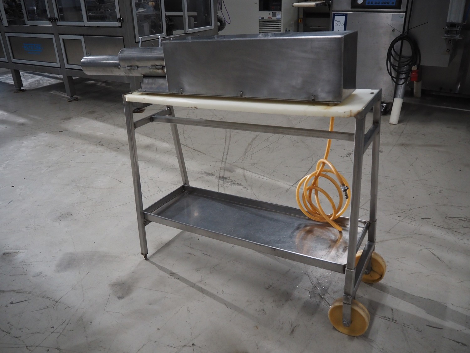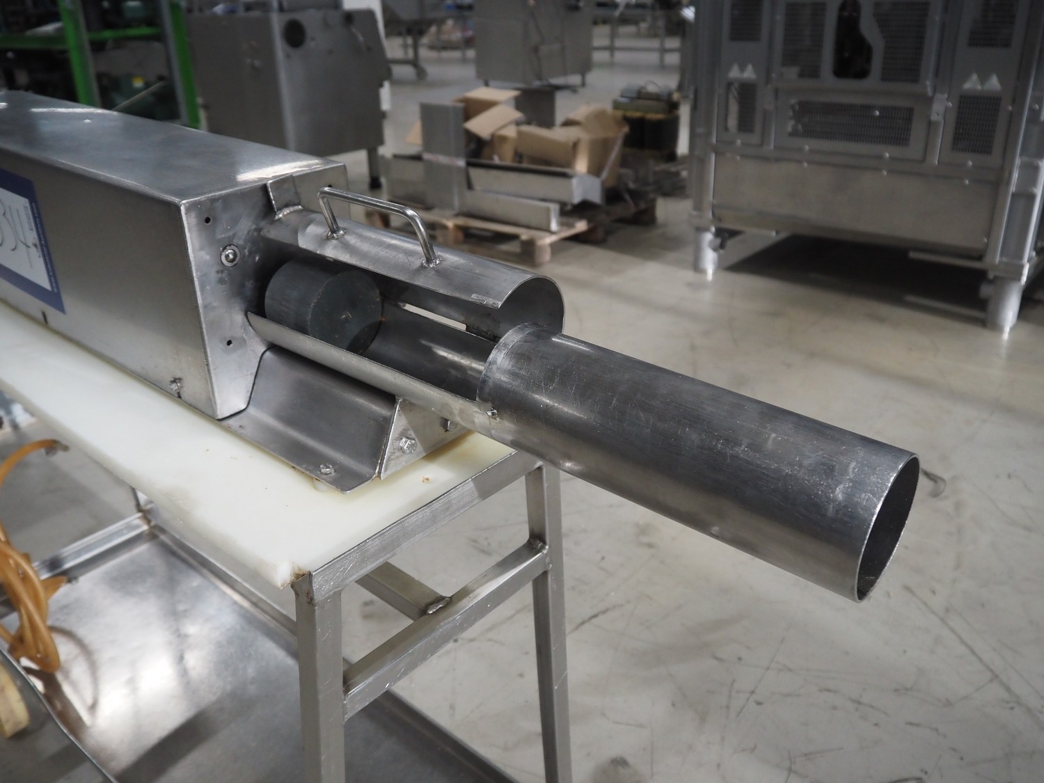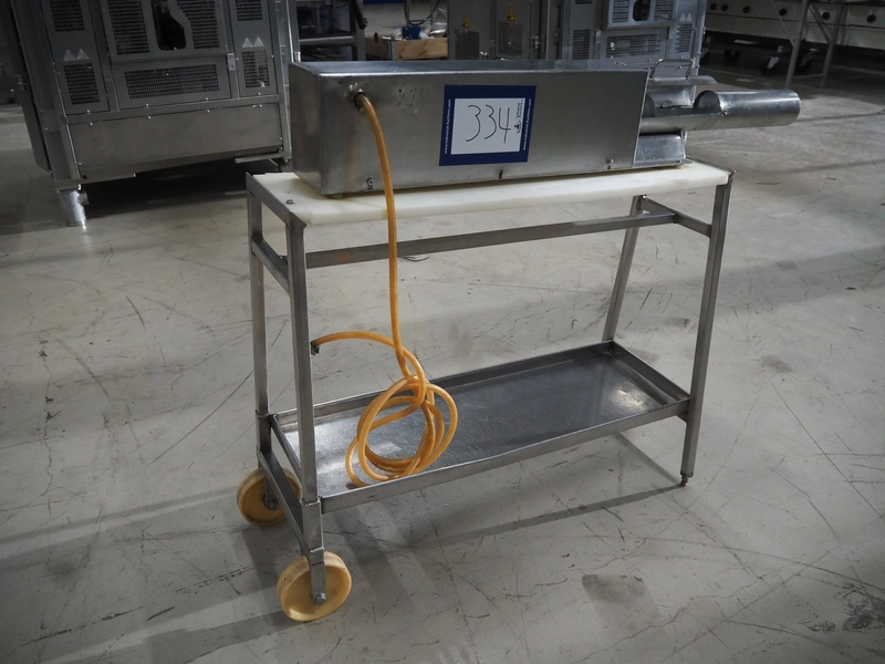 Mobile ham press, diameter pipe: 90 mm, total dimensions: 1350 mm x 350 mm x 1100 mm.